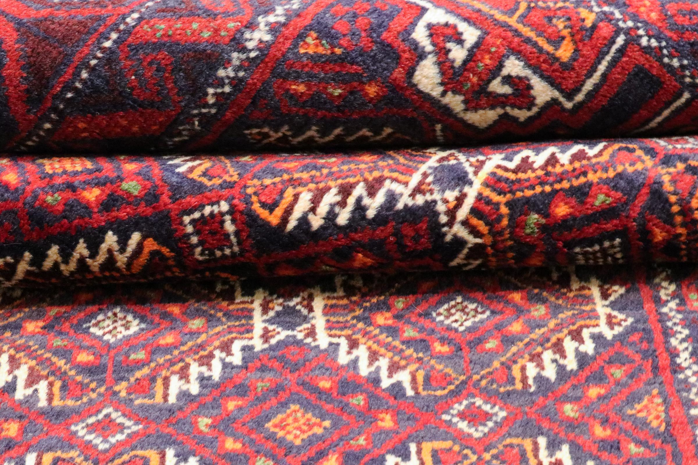 Este tapete Balúchi é um exemplo maravilhoso de arte nómada genuína. Fabricado na região fronteiriça entre o Irão e o Afeganistão, este tapete persa sabe como impressionar graças à sua trama densa e assimétrica. Os padrões vivos fazem dele um verdadeiro banquete para os olhos. Os tons escuros são típicos, espalhando um calor agradável. O seu belo fio natural transmite qualidade e torna-o extremamente durável. Típicos deste tapete são os padrões rectos que fazem dele um tapete nómada distinto.