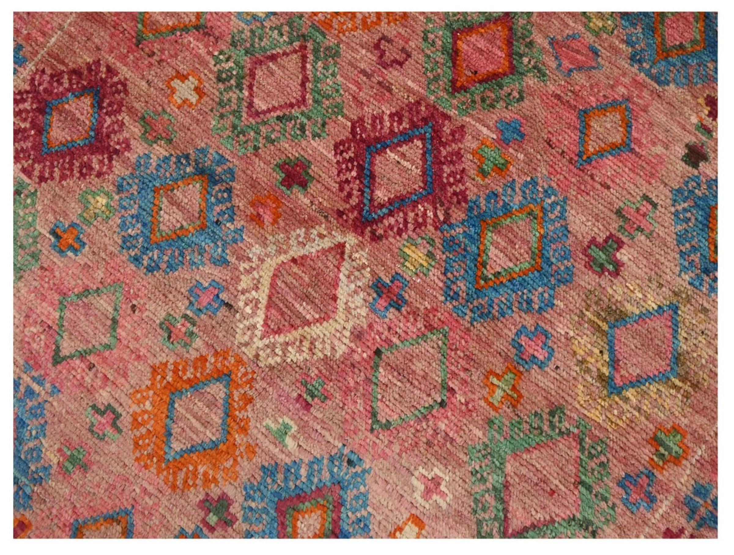 Este tapete berbere Ghashghai caracteriza-se pela sua lã de alta qualidade e uma trama densa e particularmente precisa. É, portanto, excepcionalmente durável e tem uma pilha consistentemente firme, mas maravilhosamente macia. Seu design inspira cores e padrões simbólicos todos os dias.