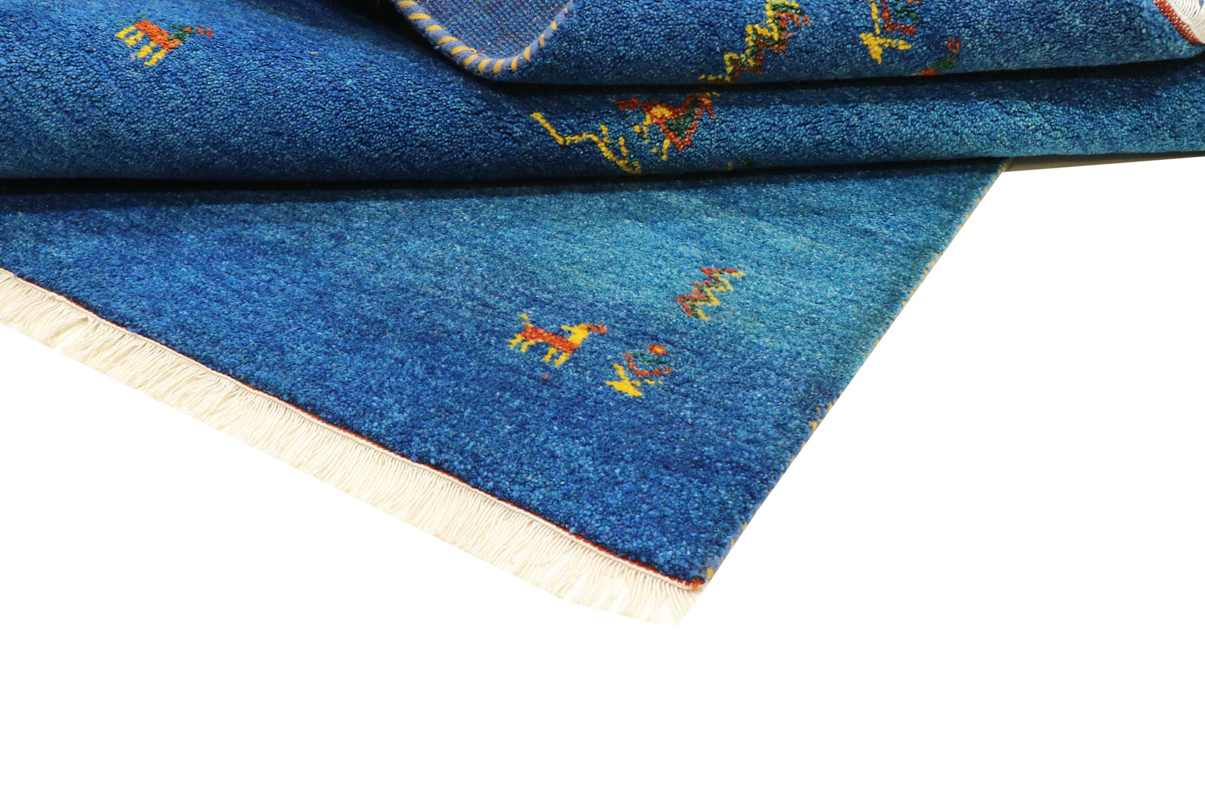 Este belo tapete Gabbeh foi atado à mão na Índia. Os tapetes indianos Gabbeh são feitos de lã de ovelha macia, são confortáveis nos pés e têm propriedades isolantes térmicas. Na sua maioria, os seus designs são simples e modernos e intemporais. Foram inspirados por povos nómadas, que deixaram fluir para os tapetes motivos muito simples do seu ambiente. Os tapetes Gabbeh indianos não se aproximam muito da qualidade de um Gabbeh persa, mas têm uma relação preço-desempenho muito boa. Por isso, são perfeitamente adequados como tapetes para principiantes.