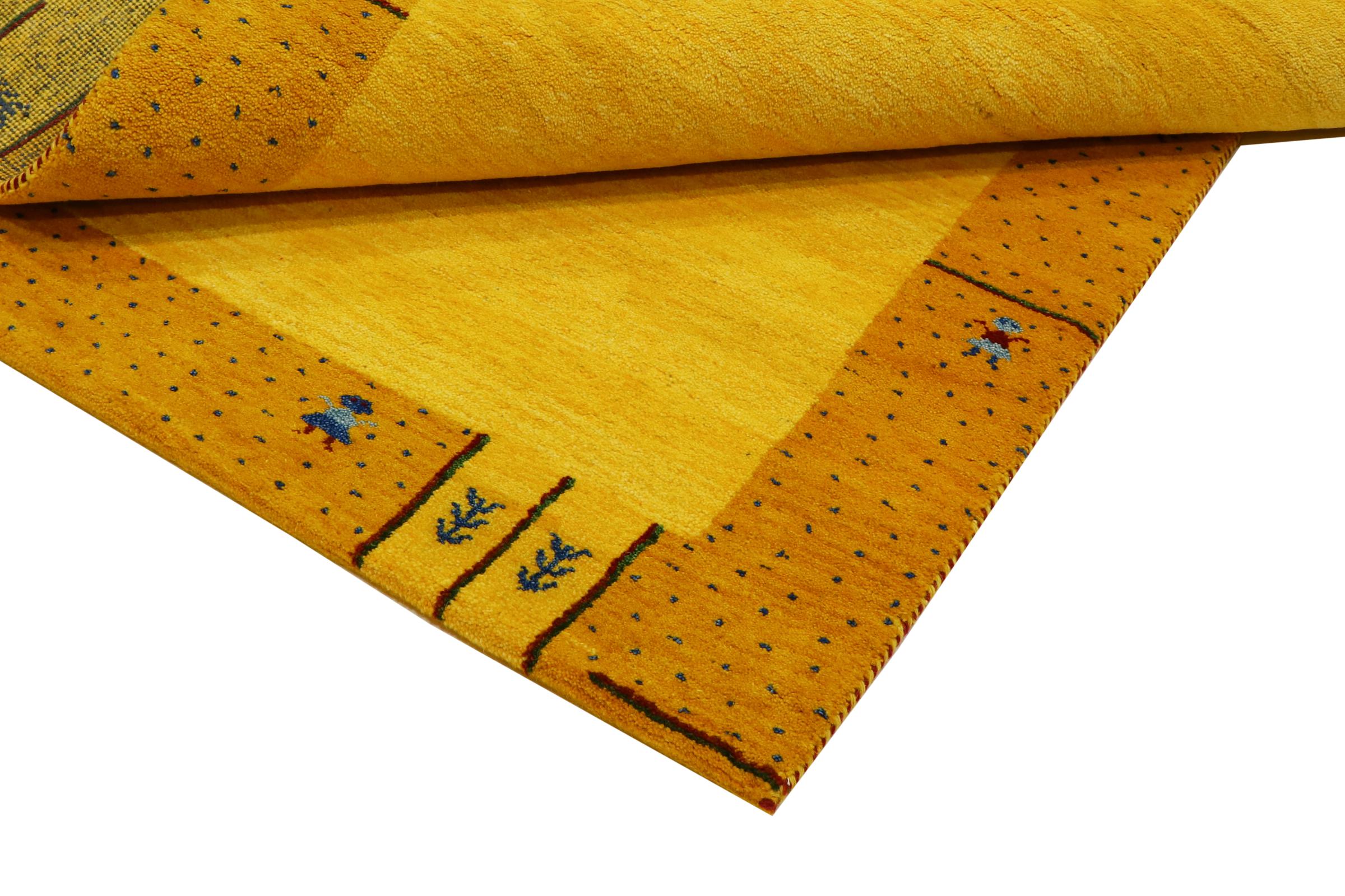 Este belo tapete Gabbeh foi atado à mão na Índia. Os tapetes indianos Gabbeh são feitos de lã de ovelha macia, são confortáveis nos pés e têm propriedades isolantes térmicas. Na sua maioria, os seus designs são simples e modernos e intemporais. Foram inspirados por povos nómadas, que deixaram fluir para os tapetes motivos muito simples do seu ambiente. Os tapetes Gabbeh indianos não se aproximam muito da qualidade de um Gabbeh persa, mas têm uma relação preço-desempenho muito boa. Por isso, são perfeitamente adequados como tapetes para principiantes.