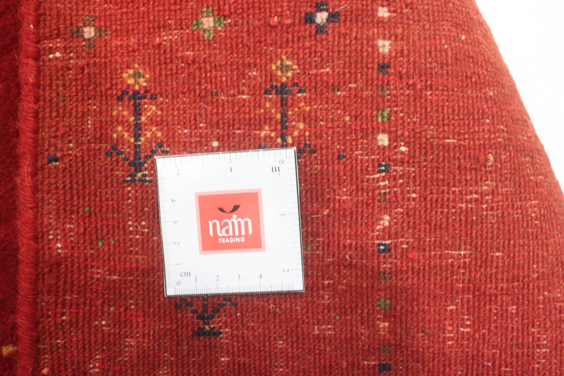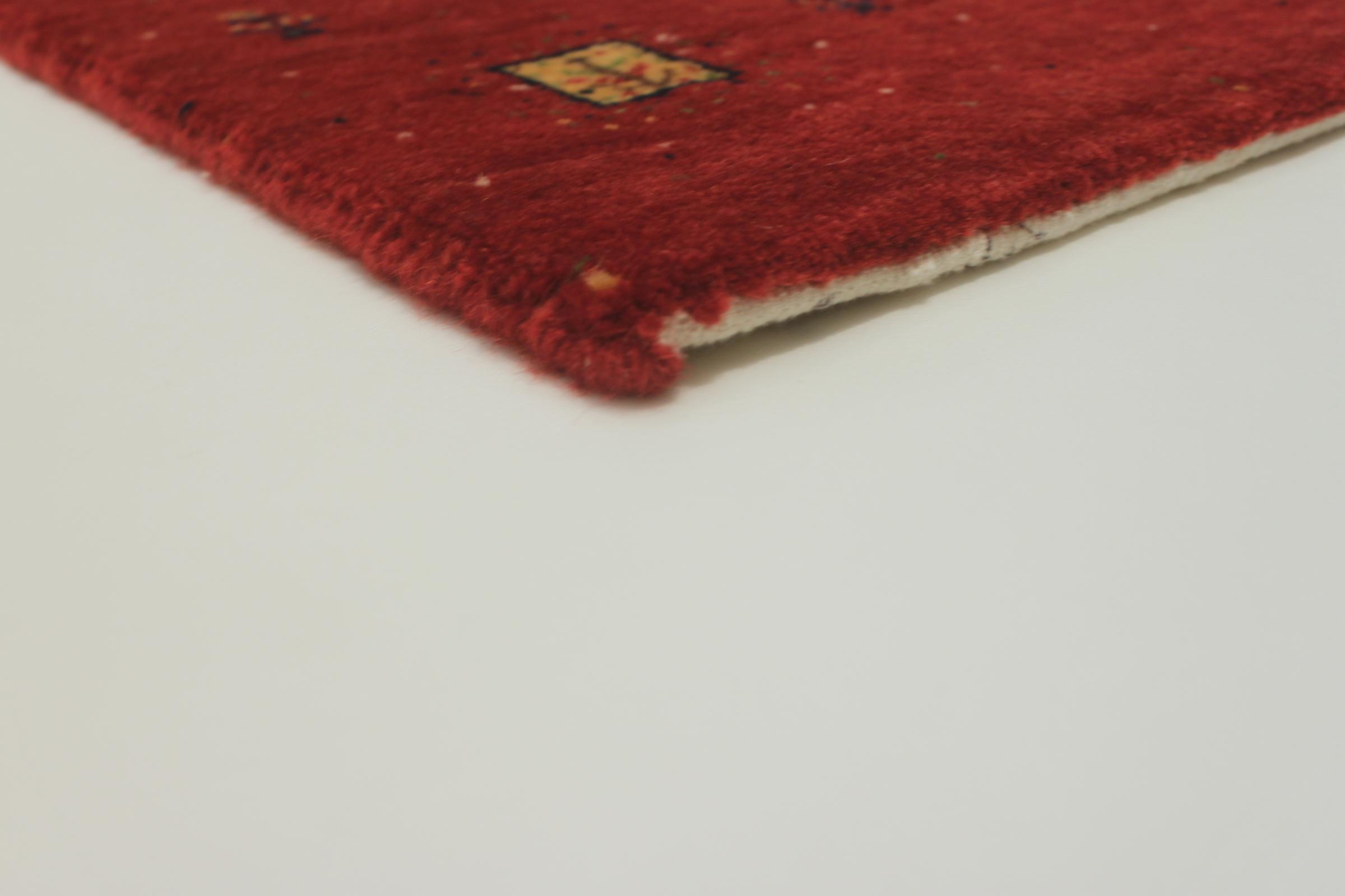 Este belo tapete Gabbeh foi atado à mão na Índia. Os tapetes indianos Gabbeh são feitos de lã de ovelha macia, são confortáveis nos pés e têm propriedades isolantes térmicas. Na sua maioria, os seus designs são simples e modernos e intemporais. Foram inspirados por povos nómadas, que deixaram fluir para os tapetes motivos muito simples do seu ambiente. Os tapetes Gabbeh indianos não se aproximam muito da qualidade de um Gabbeh persa, mas têm uma relação preço-desempenho muito boa. Por isso, são perfeitamente adequados como tapetes para principiantes.