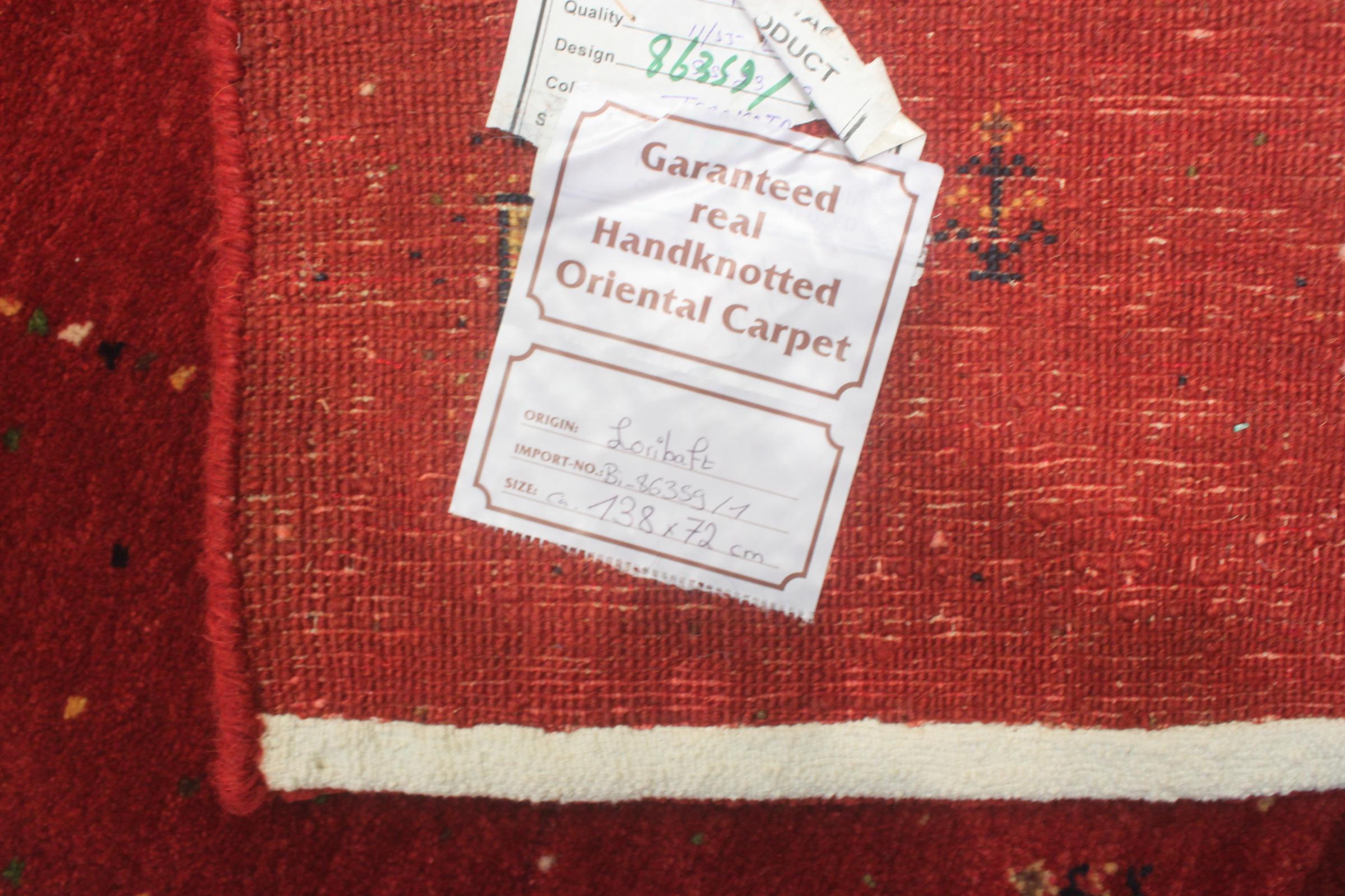 Este Lorifbaft Indo Gabbeh com nós à mão é sinónimo de alta qualidade. Fabricado na Índia, não se limita a imitar o original persa, mas forma a sua própria classe. Lã de ovelha fina, uma trama robusta e cores duradouras. Um belo tapete moderno pode mudar divisões inteiras. Este é certamente o caso. Só um tapete persa Gabbeh pode superá-lo.