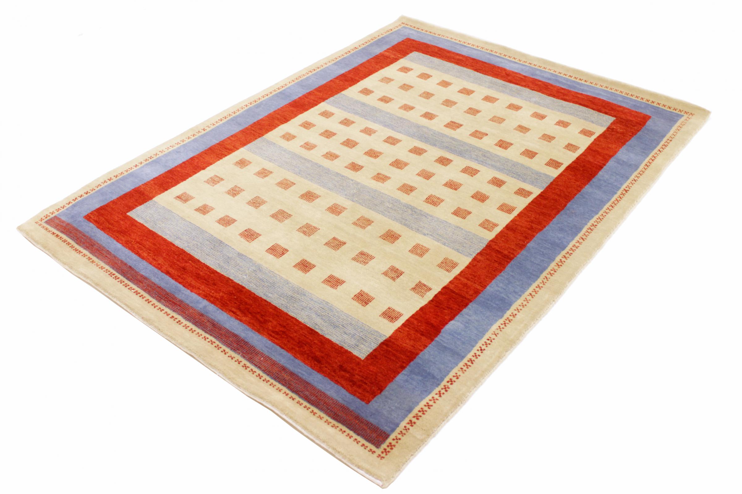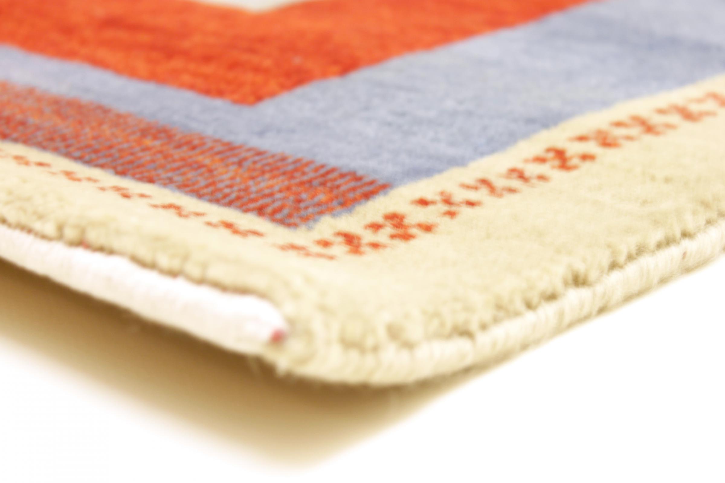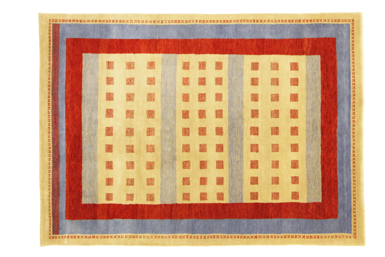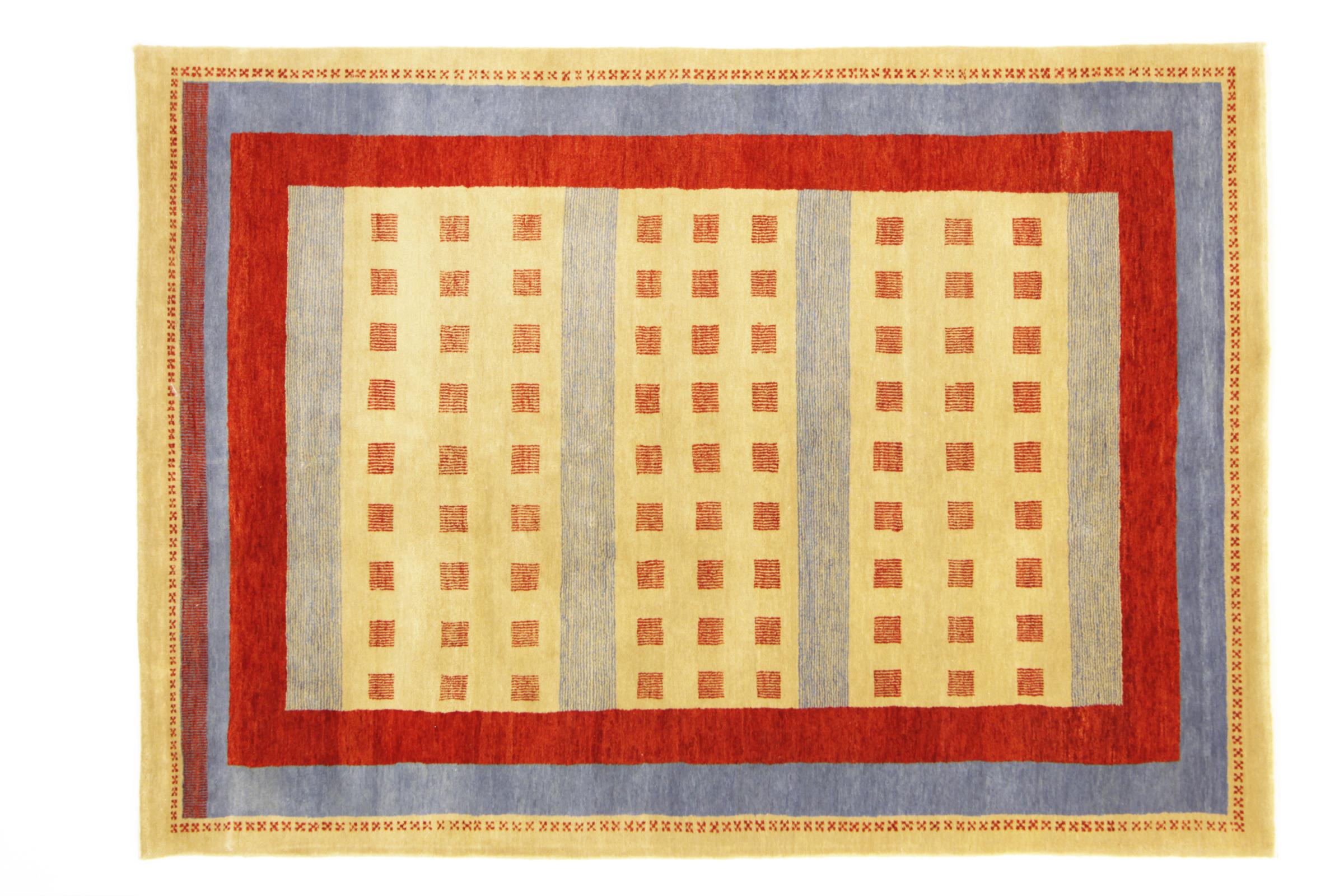 Este belo tapete Gabbeh foi atado à mão na Índia. Os tapetes indianos Gabbeh são feitos de lã de ovelha macia, são confortáveis nos pés e têm propriedades isolantes térmicas. Na sua maioria, os seus designs são simples e modernos e intemporais. Foram inspirados por povos nómadas, que deixaram fluir para os tapetes motivos muito simples do seu ambiente. Os tapetes Gabbeh indianos não se aproximam muito da qualidade de um Gabbeh persa, mas têm uma relação preço-desempenho muito boa. Por isso, são perfeitamente adequados como tapetes para principiantes.