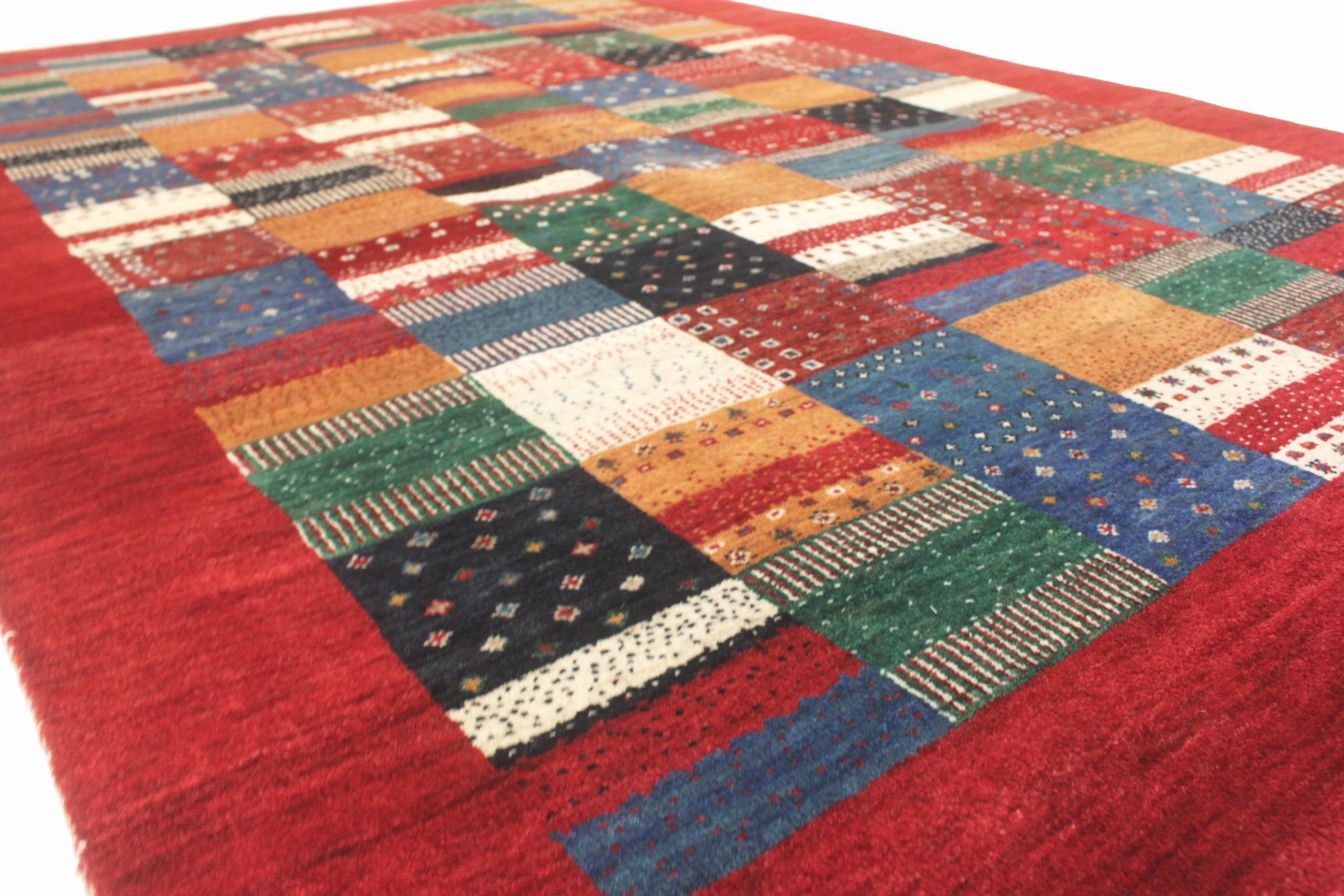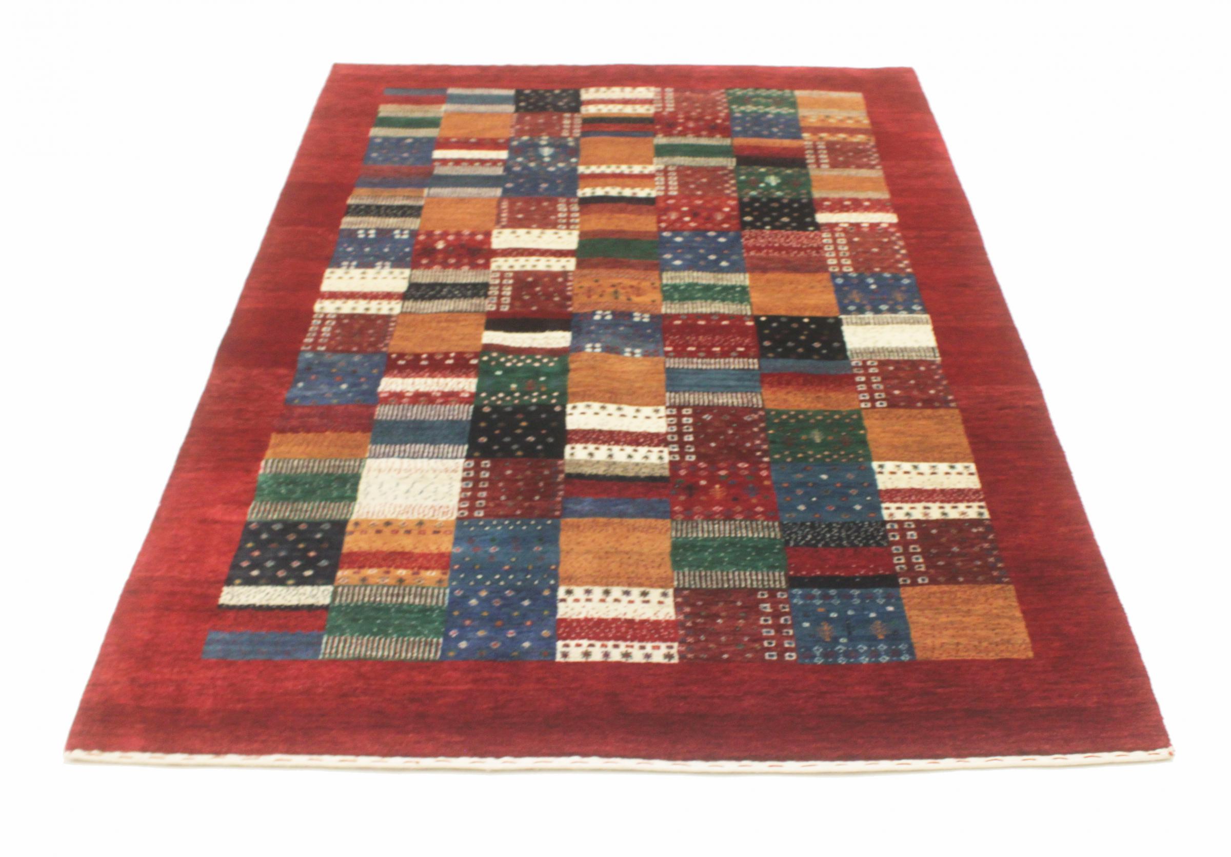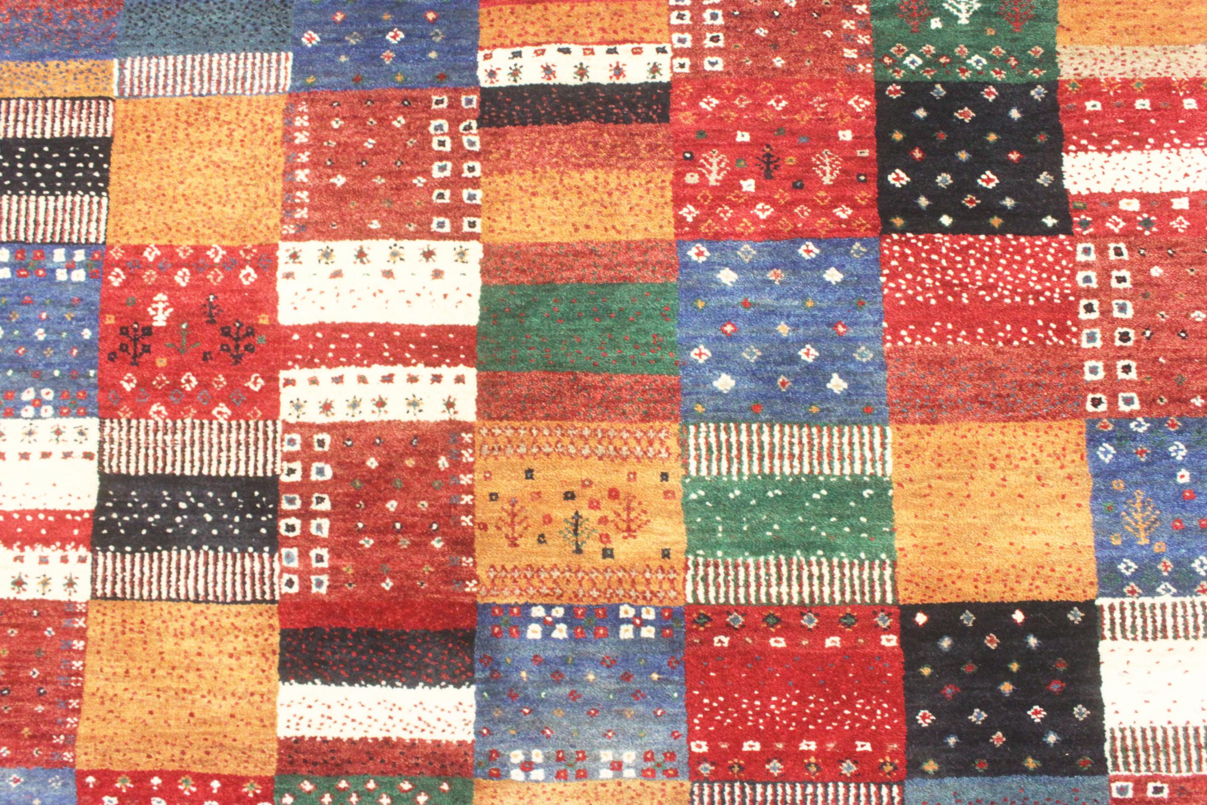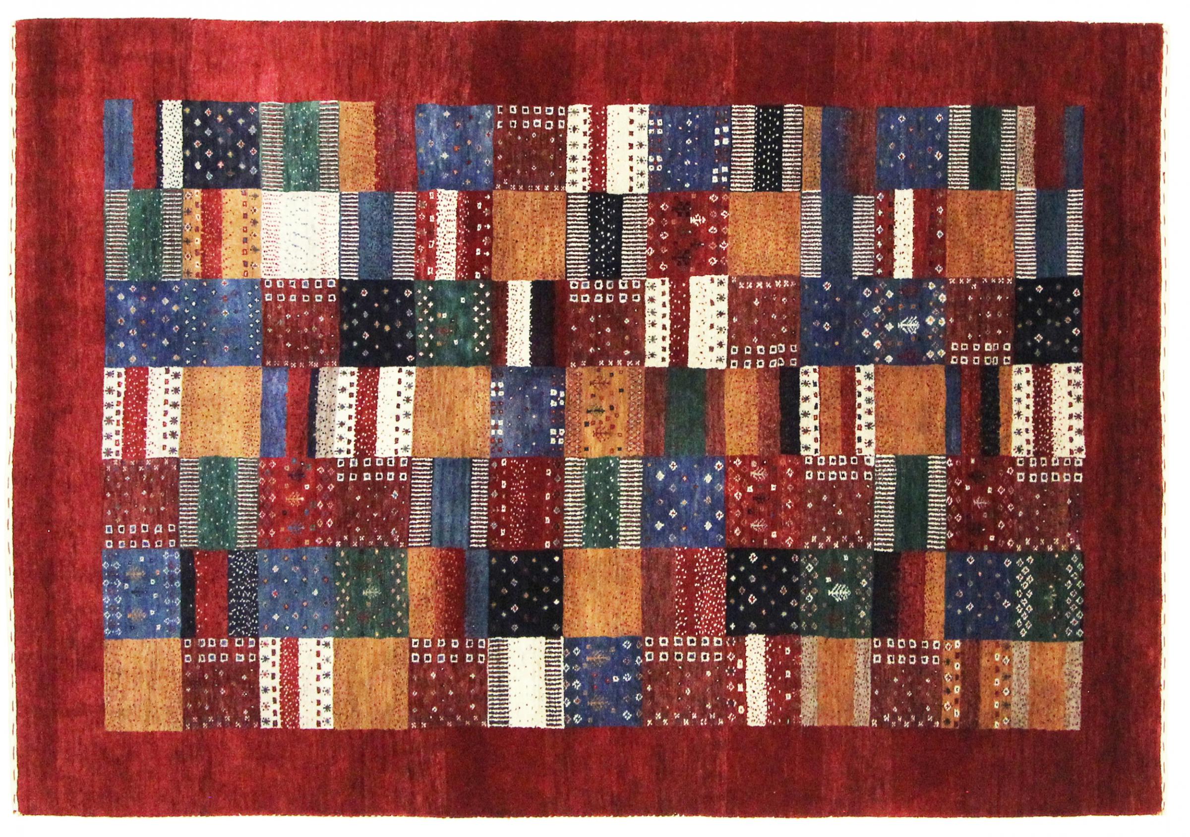 Este belo tapete Gabbeh foi atado à mão na Índia. Os tapetes indianos Gabbeh são feitos de lã de ovelha macia, são confortáveis nos pés e têm propriedades isolantes térmicas. Na sua maioria, os seus designs são simples e modernos e intemporais. Foram inspirados por povos nómadas, que deixaram fluir para os tapetes motivos muito simples do seu ambiente. Os tapetes Gabbeh indianos não se aproximam muito da qualidade de um Gabbeh persa, mas têm uma relação preço-desempenho muito boa. Por isso, são perfeitamente adequados como tapetes para principiantes.