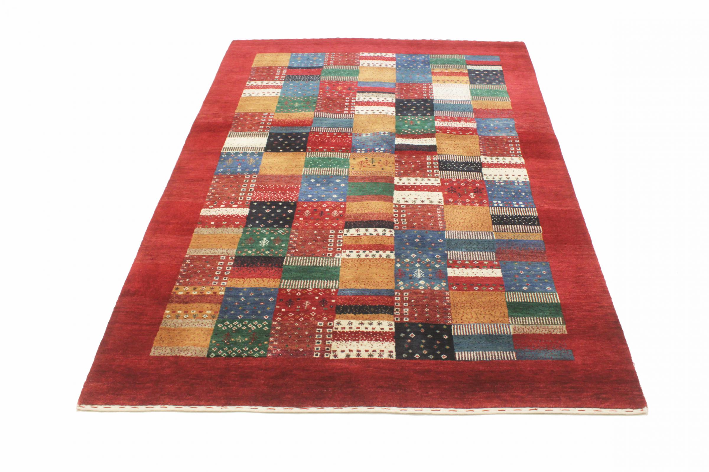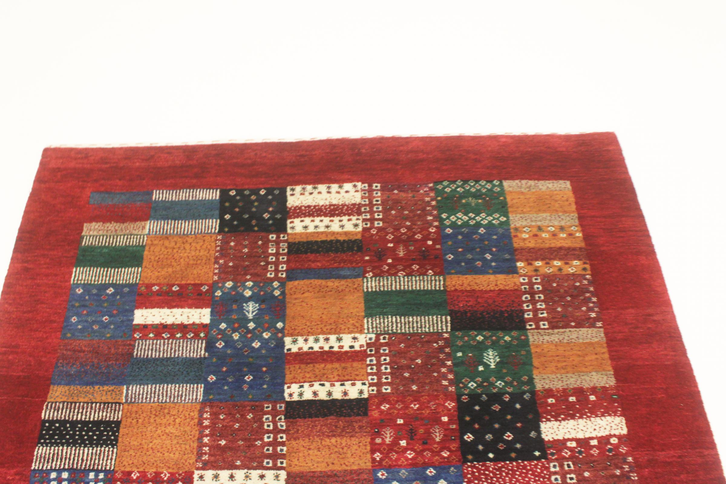 Este Lorifbaft Indo Gabbeh com nós à mão é sinónimo de alta qualidade. Fabricado na Índia, não se limita a imitar o original persa, mas forma a sua própria classe. Lã de ovelha fina, uma trama robusta e cores duradouras. Um belo tapete moderno pode mudar divisões inteiras. Este é certamente o caso. Só um tapete persa Gabbeh pode superá-lo.