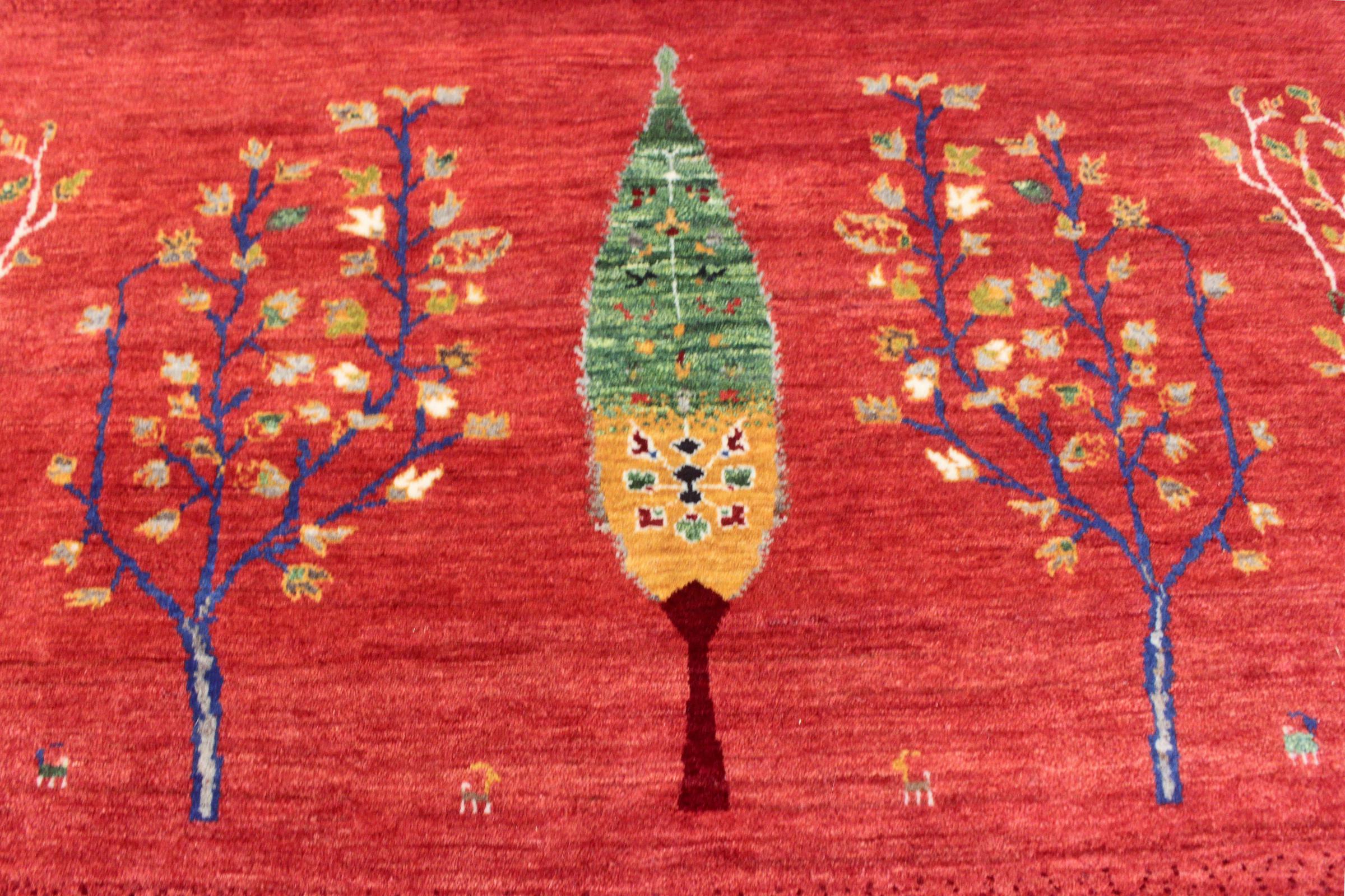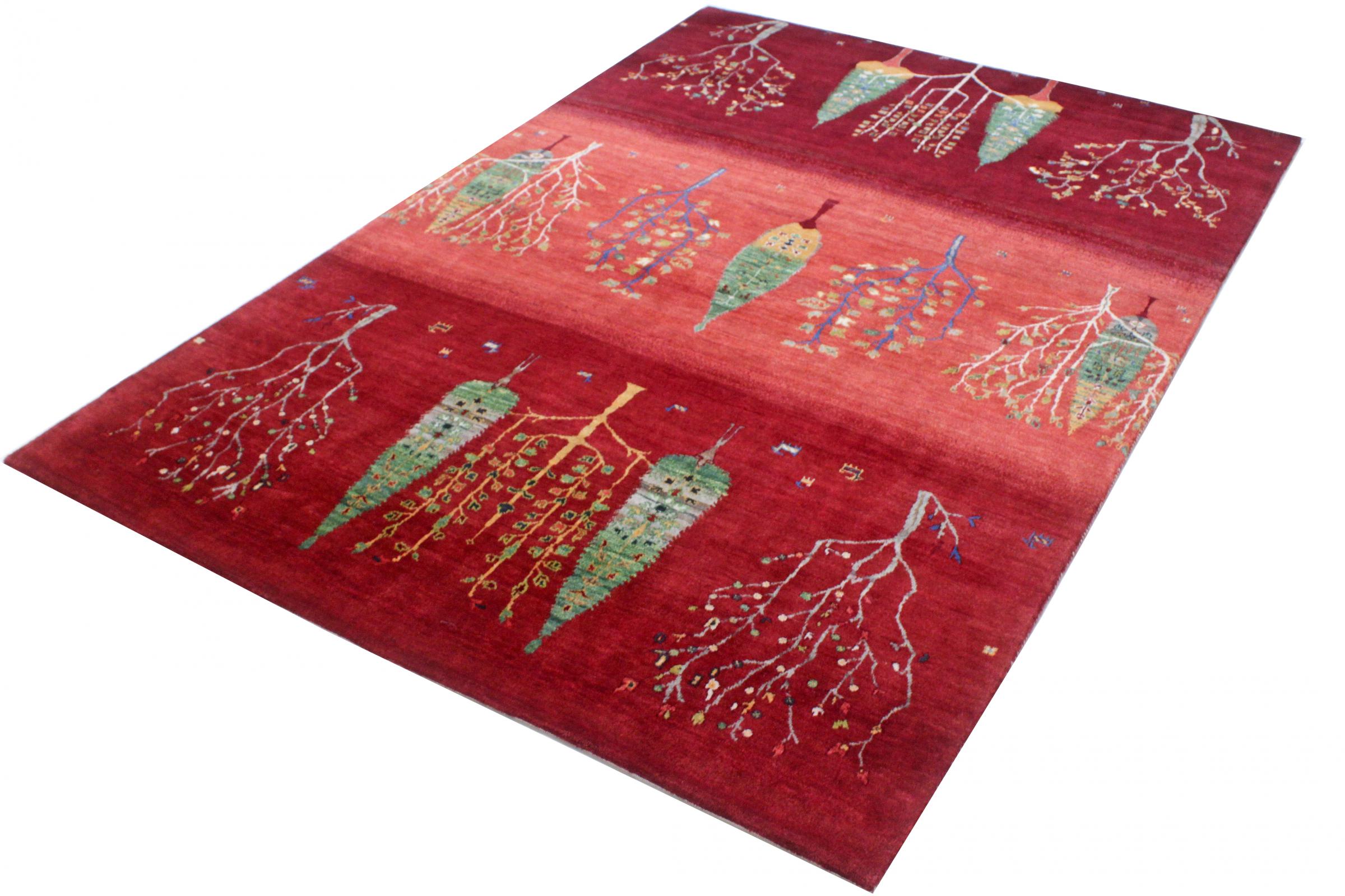 Este belo tapete Gabbeh foi atado à mão na Índia. Os tapetes indianos Gabbeh são feitos de lã de ovelha macia, são confortáveis nos pés e têm propriedades isolantes térmicas. Na sua maioria, os seus designs são simples e modernos e intemporais. Foram inspirados por povos nómadas, que deixaram fluir para os tapetes motivos muito simples do seu ambiente. Os tapetes Gabbeh indianos não se aproximam muito da qualidade de um Gabbeh persa, mas têm uma relação preço-desempenho muito boa. Por isso, são perfeitamente adequados como tapetes para principiantes.