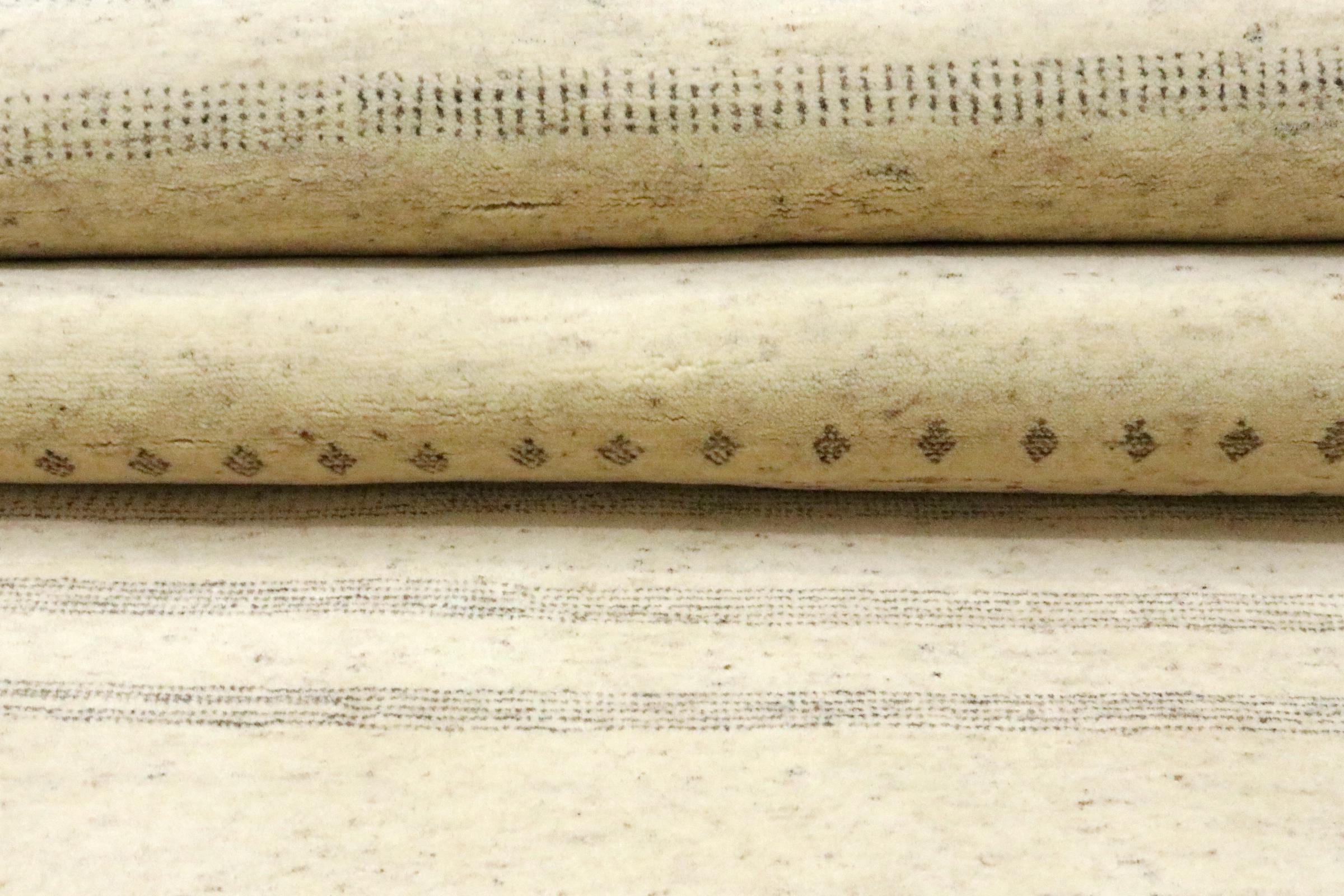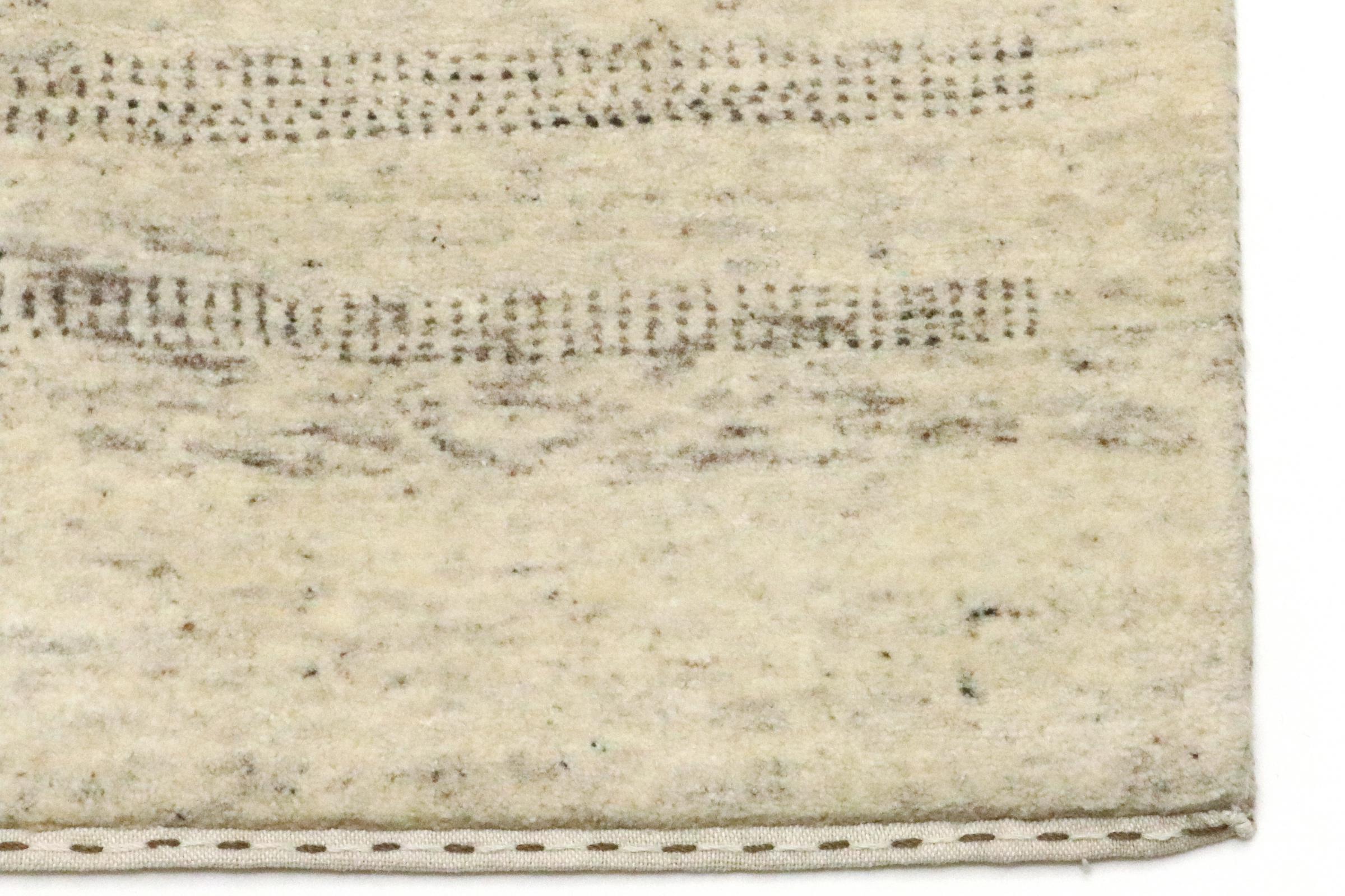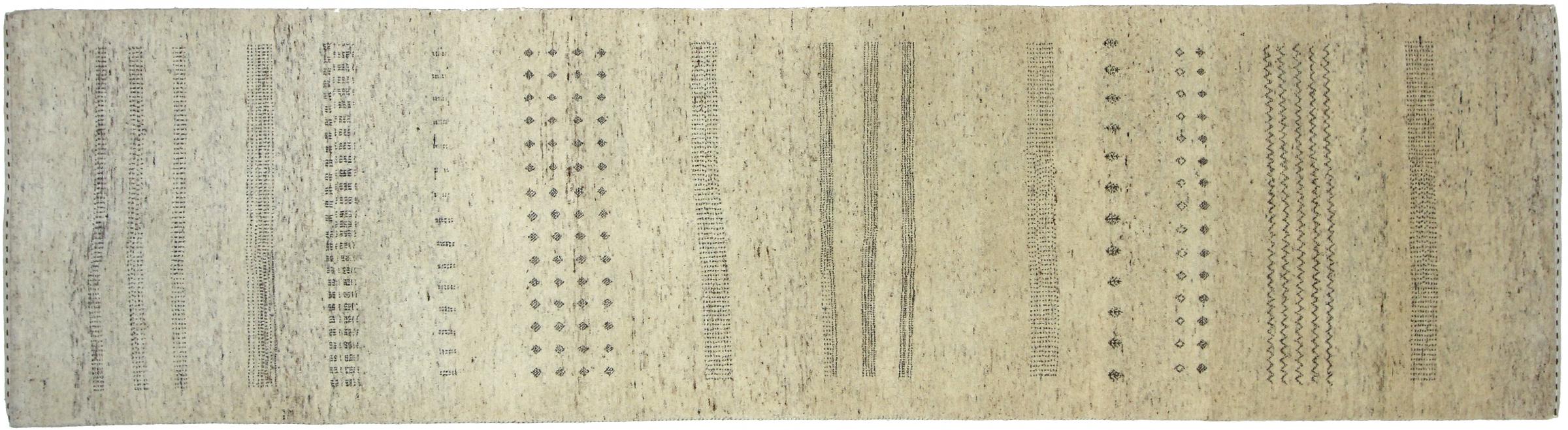 Este belo tapete Gabbeh foi atado à mão na Índia. Os tapetes indianos Gabbeh são feitos de lã de ovelha macia, são confortáveis nos pés e têm propriedades isolantes térmicas. Na sua maioria, os seus designs são simples e modernos e intemporais. Foram inspirados por povos nómadas, que deixaram fluir para os tapetes motivos muito simples do seu ambiente. Os tapetes Gabbeh indianos não se aproximam muito da qualidade de um Gabbeh persa, mas têm uma relação preço-desempenho muito boa. Por isso, são perfeitamente adequados como tapetes para principiantes.