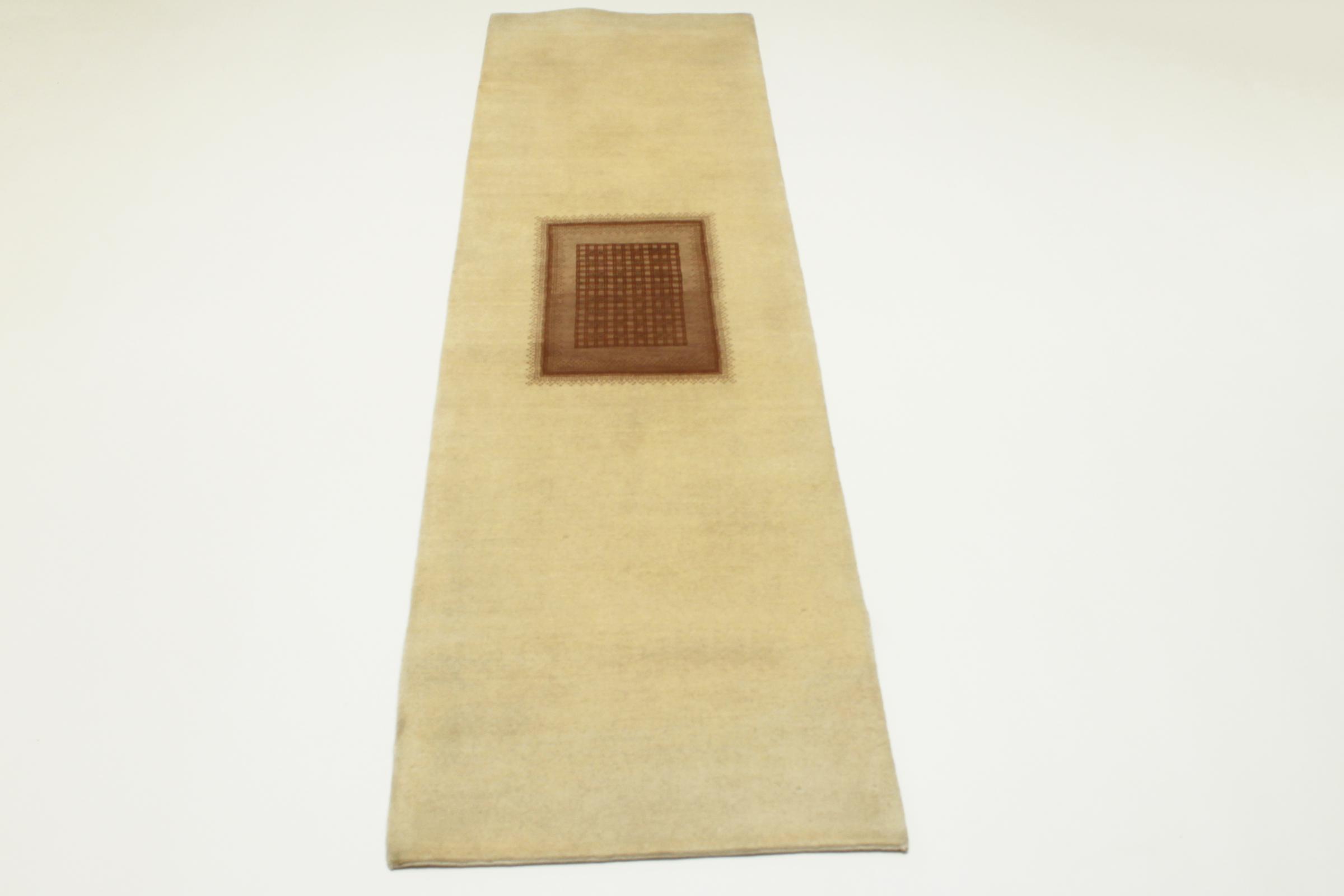 Este belo tapete Gabbeh foi atado à mão na Índia. Os tapetes indianos Gabbeh são feitos de lã de ovelha macia, são confortáveis nos pés e têm propriedades isolantes térmicas. Na sua maioria, os seus designs são simples e modernos e intemporais. Foram inspirados por povos nómadas, que deixaram fluir para os tapetes motivos muito simples do seu ambiente. Os tapetes Gabbeh indianos não se aproximam muito da qualidade de um Gabbeh persa, mas têm uma relação preço-desempenho muito boa. Por isso, são perfeitamente adequados como tapetes para principiantes.