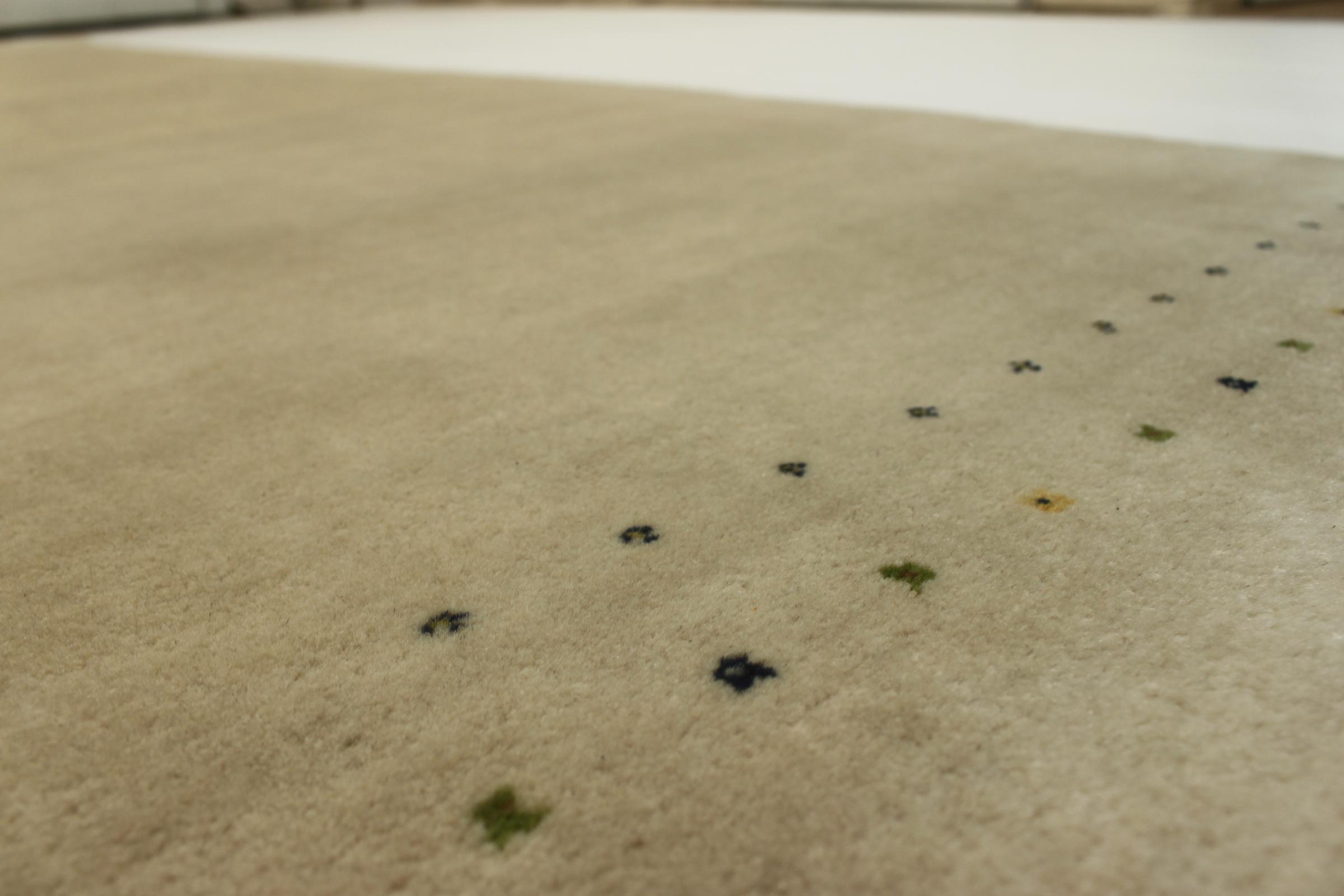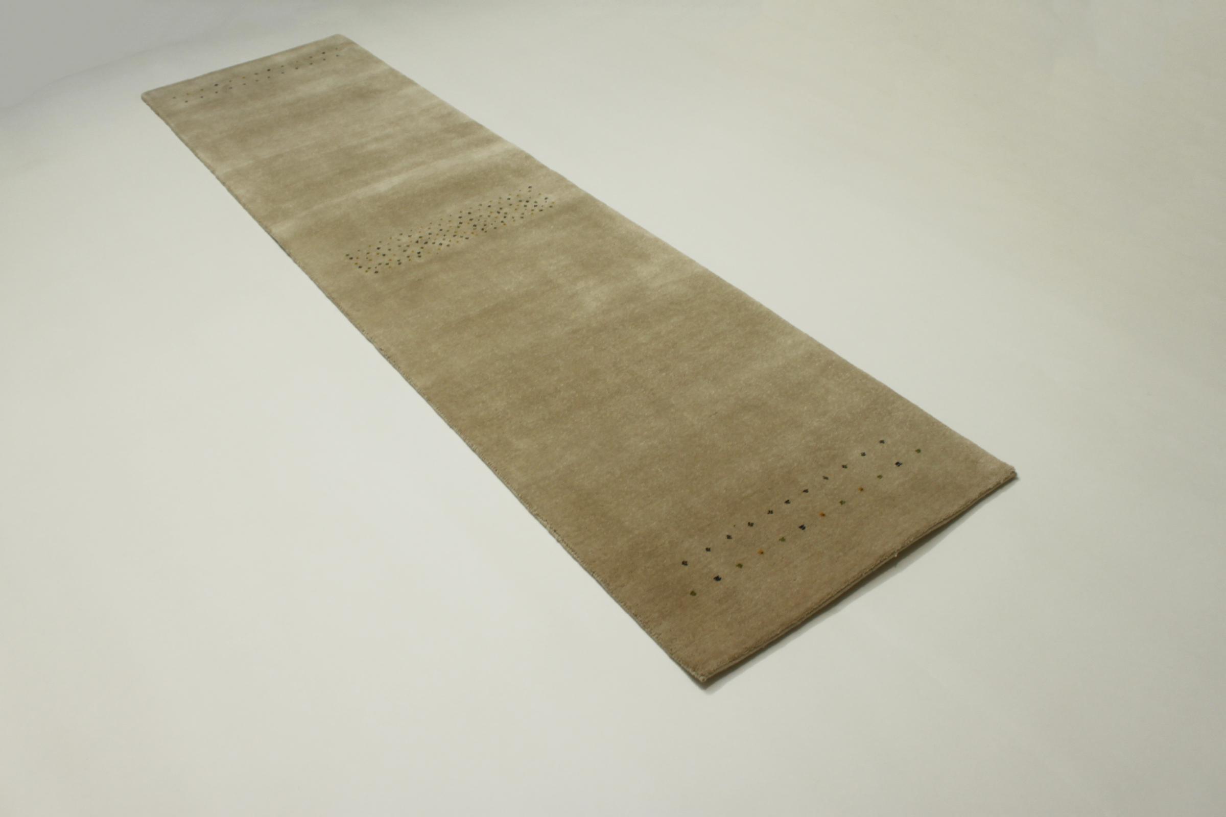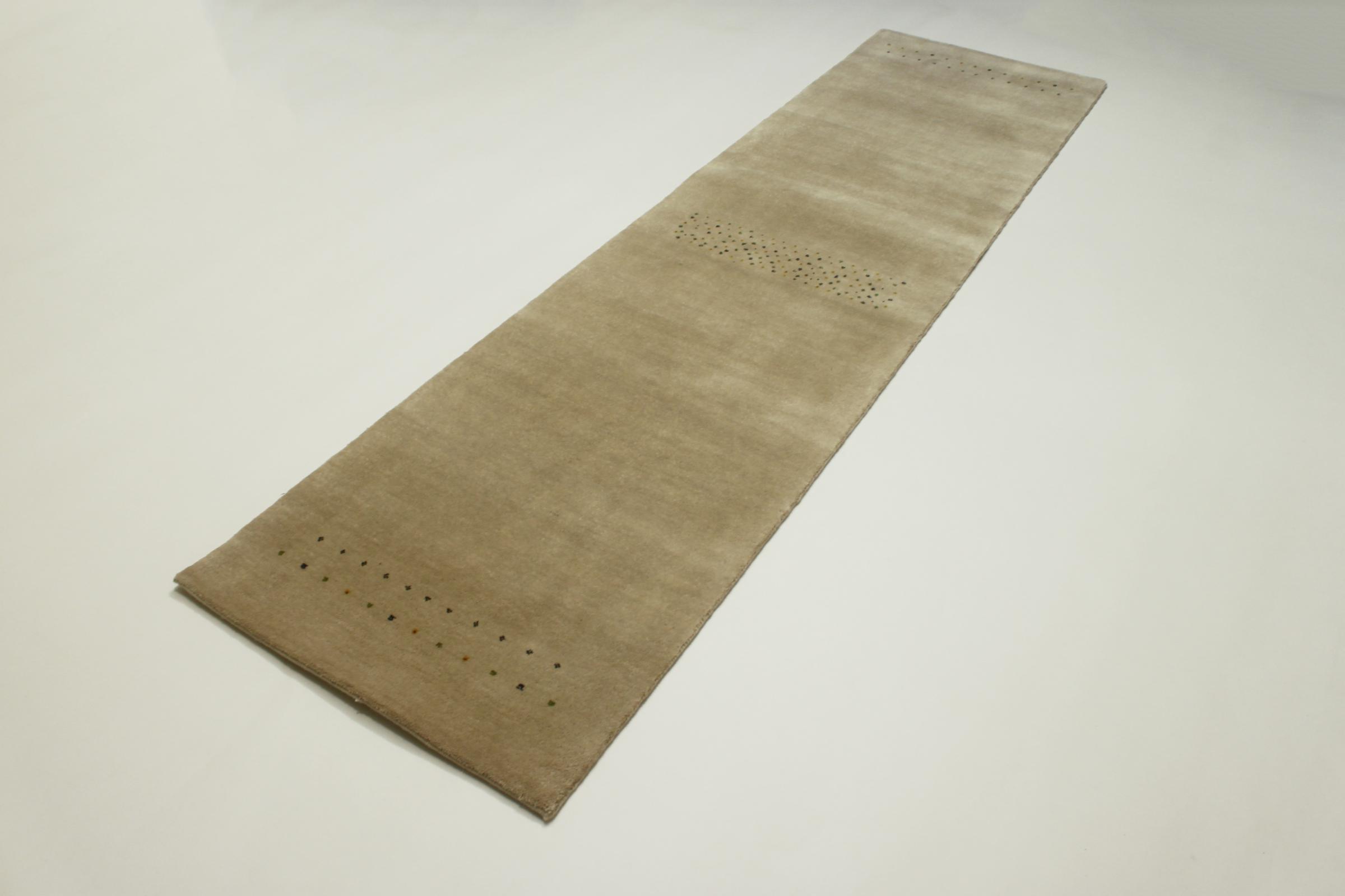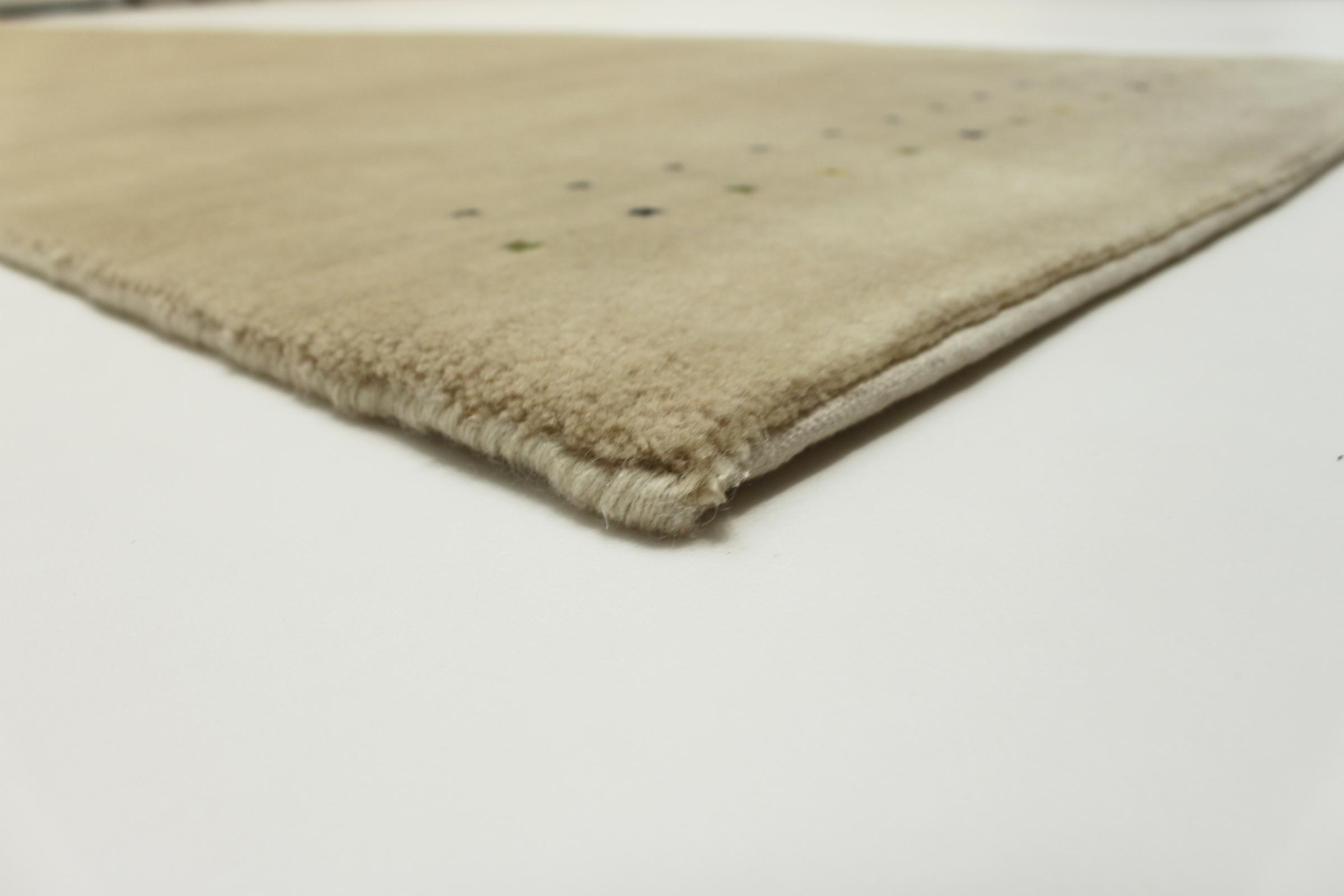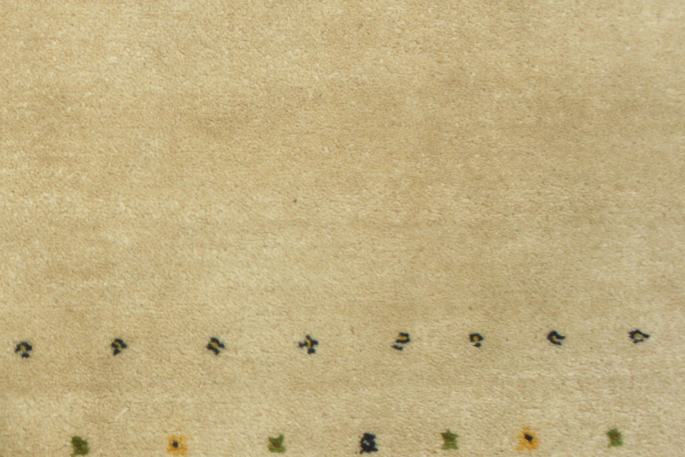 Este belo tapete Gabbeh foi atado à mão na Índia. Os tapetes indianos Gabbeh são feitos de lã de ovelha macia, são confortáveis nos pés e têm propriedades isolantes térmicas. Na sua maioria, os seus designs são simples e modernos e intemporais. Foram inspirados por povos nómadas, que deixaram fluir para os tapetes motivos muito simples do seu ambiente. Os tapetes Gabbeh indianos não se aproximam muito da qualidade de um Gabbeh persa, mas têm uma relação preço-desempenho muito boa. Por isso, são perfeitamente adequados como tapetes para principiantes.