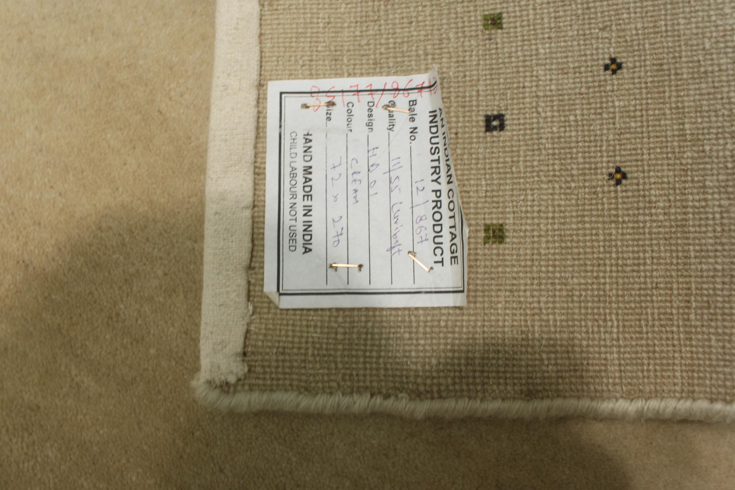 Nº do Tapete: 3510500669214 Tamanho: 271x73 cm Espessura: aproximadamente 10 mm Nós: 160 000 - 200 000 / m² Processamento: Atado à mão Veludo: Lã Natural Urdidura: Algodão Origem: Índia Idade: Novo Peso: aproximadamente 7 kg Em armazém: Único - Apenas 1 em stock