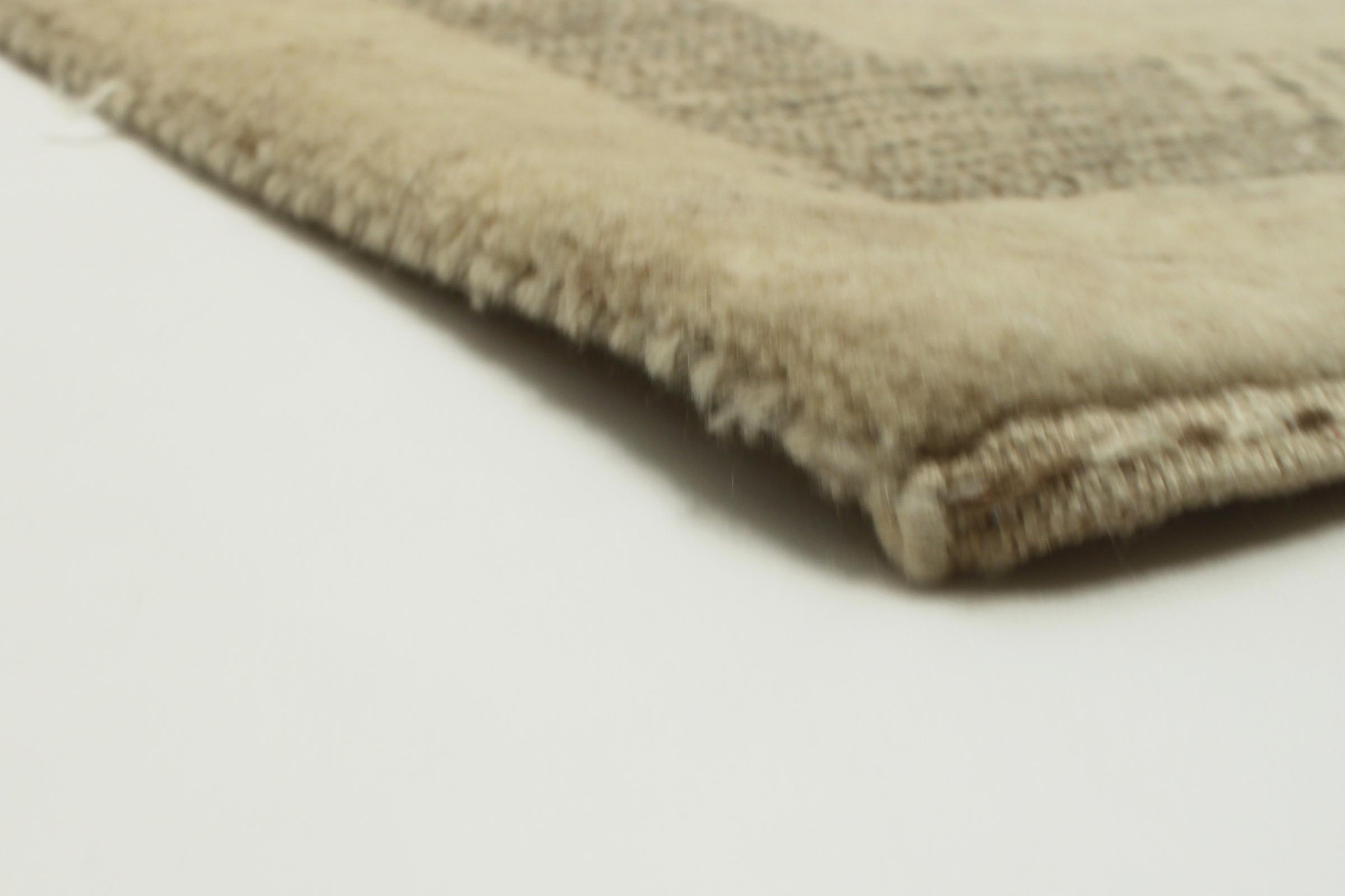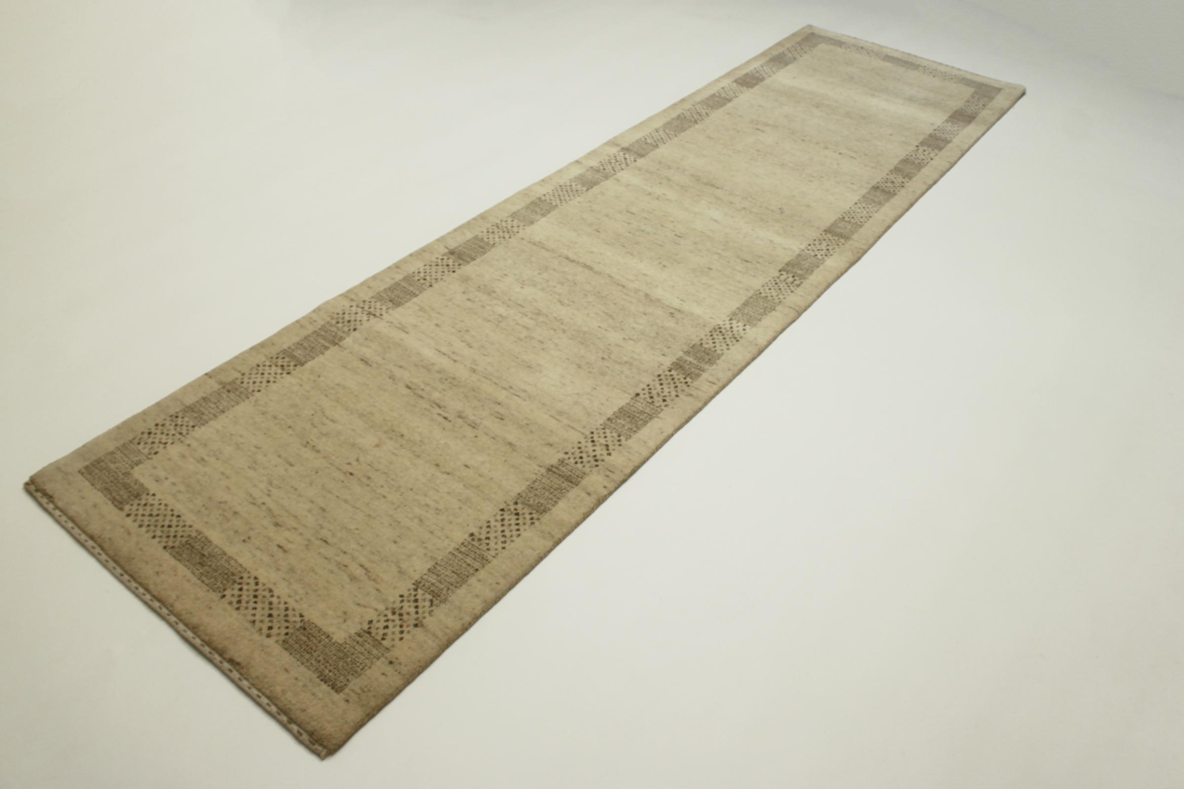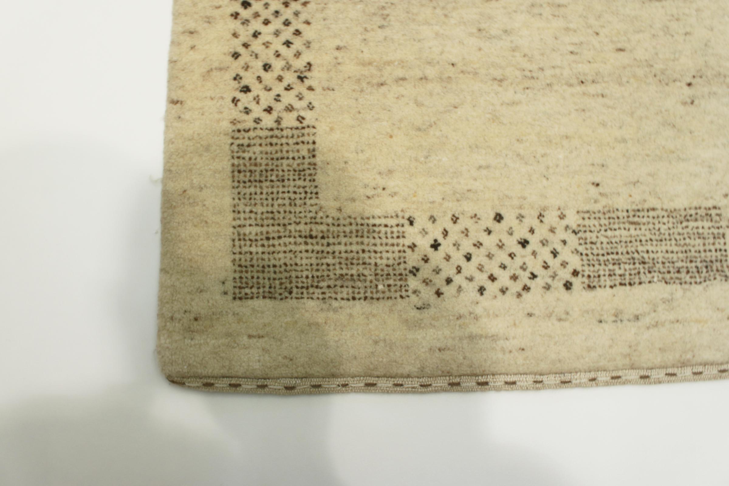 Este belo tapete Gabbeh foi atado à mão na Índia. Os tapetes indianos Gabbeh são feitos de lã de ovelha macia, são confortáveis nos pés e têm propriedades isolantes térmicas. Na sua maioria, os seus designs são simples e modernos e intemporais. Foram inspirados por povos nómadas, que deixaram fluir para os tapetes motivos muito simples do seu ambiente. Os tapetes Gabbeh indianos não se aproximam muito da qualidade de um Gabbeh persa, mas têm uma relação preço-desempenho muito boa. Por isso, são perfeitamente adequados como tapetes para principiantes.