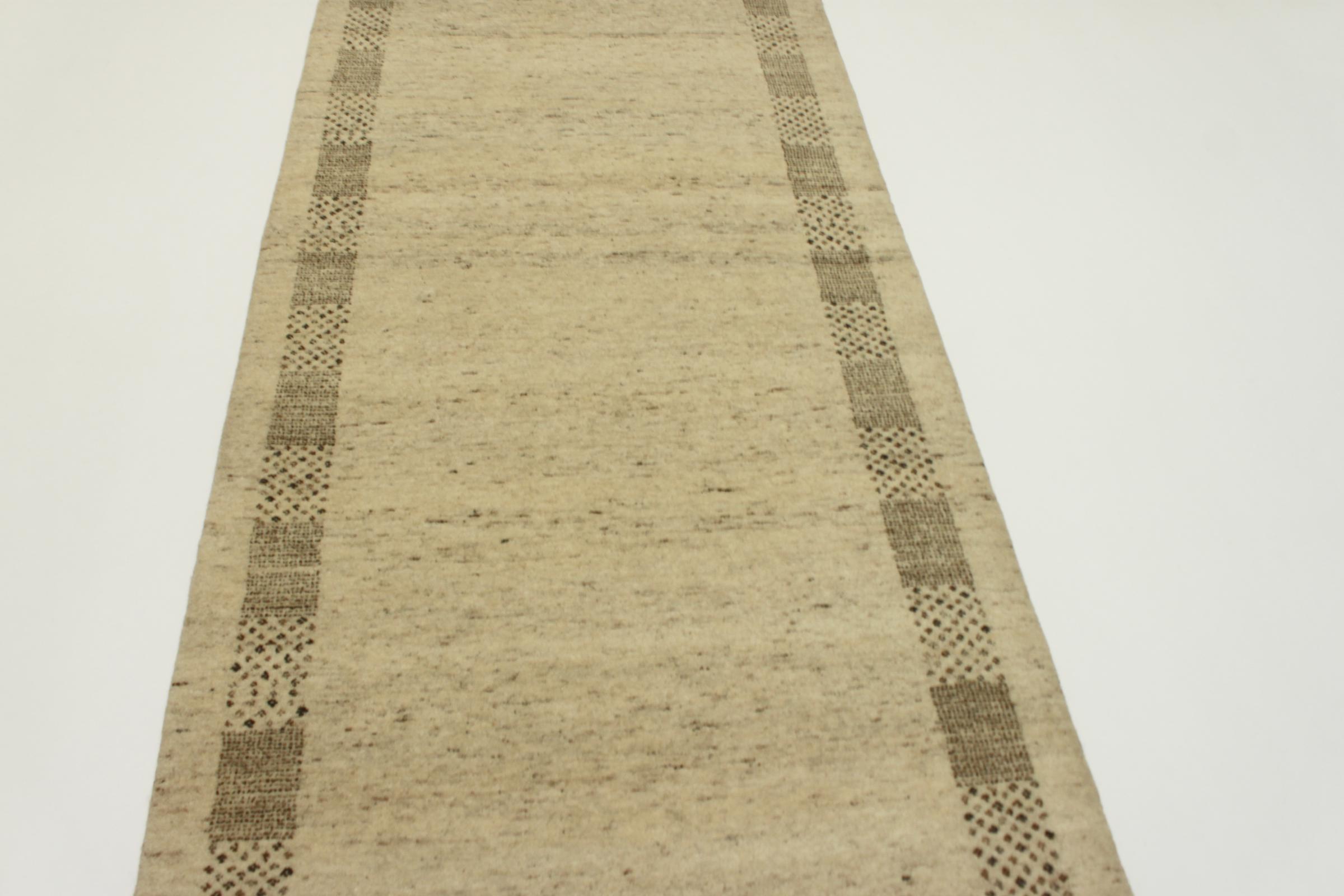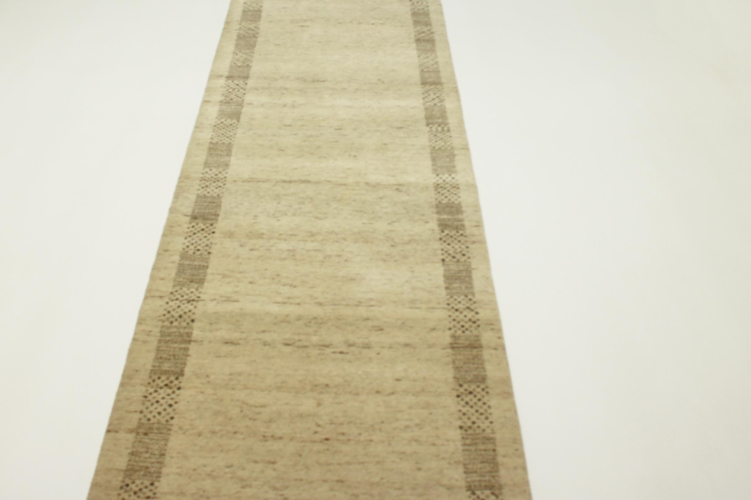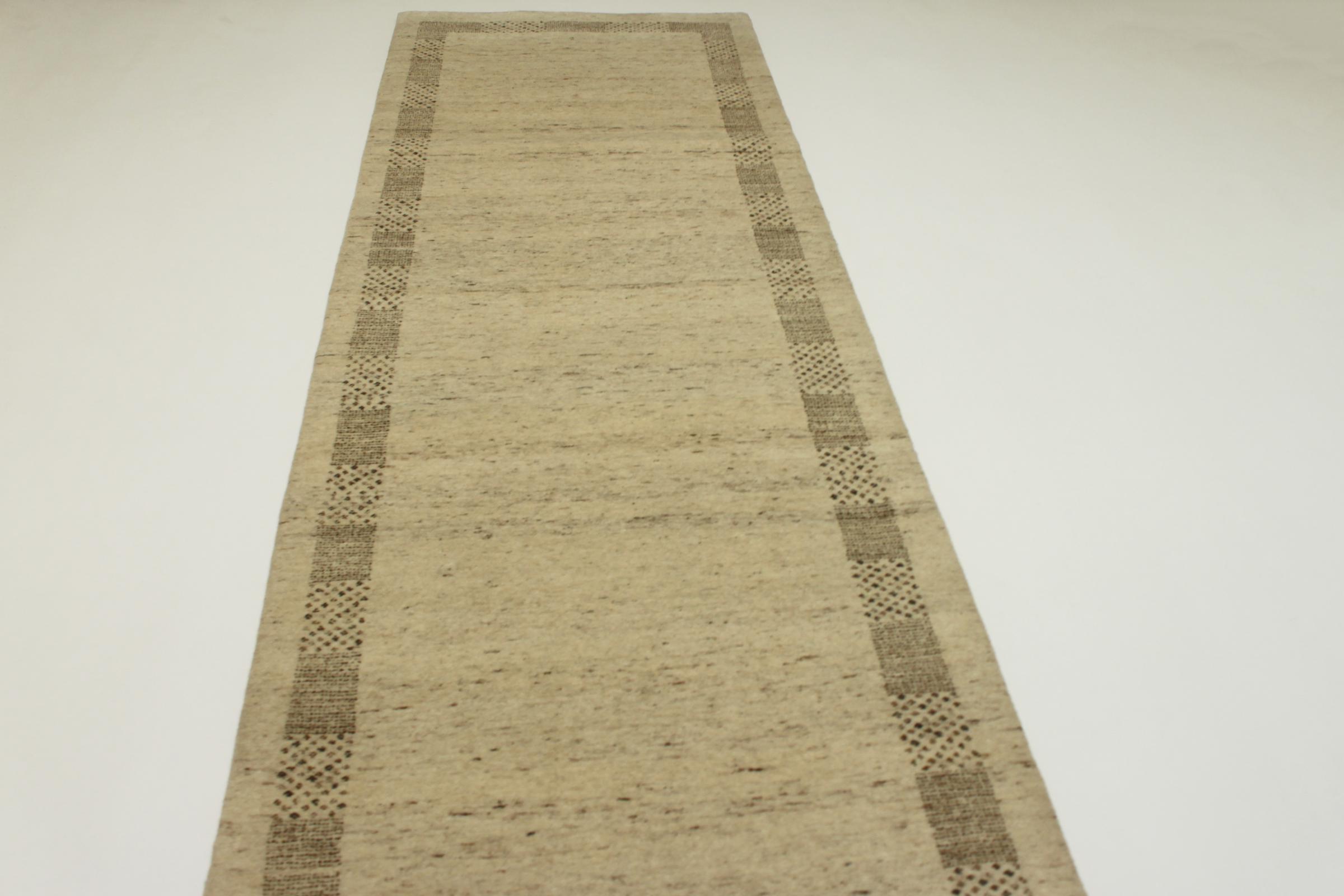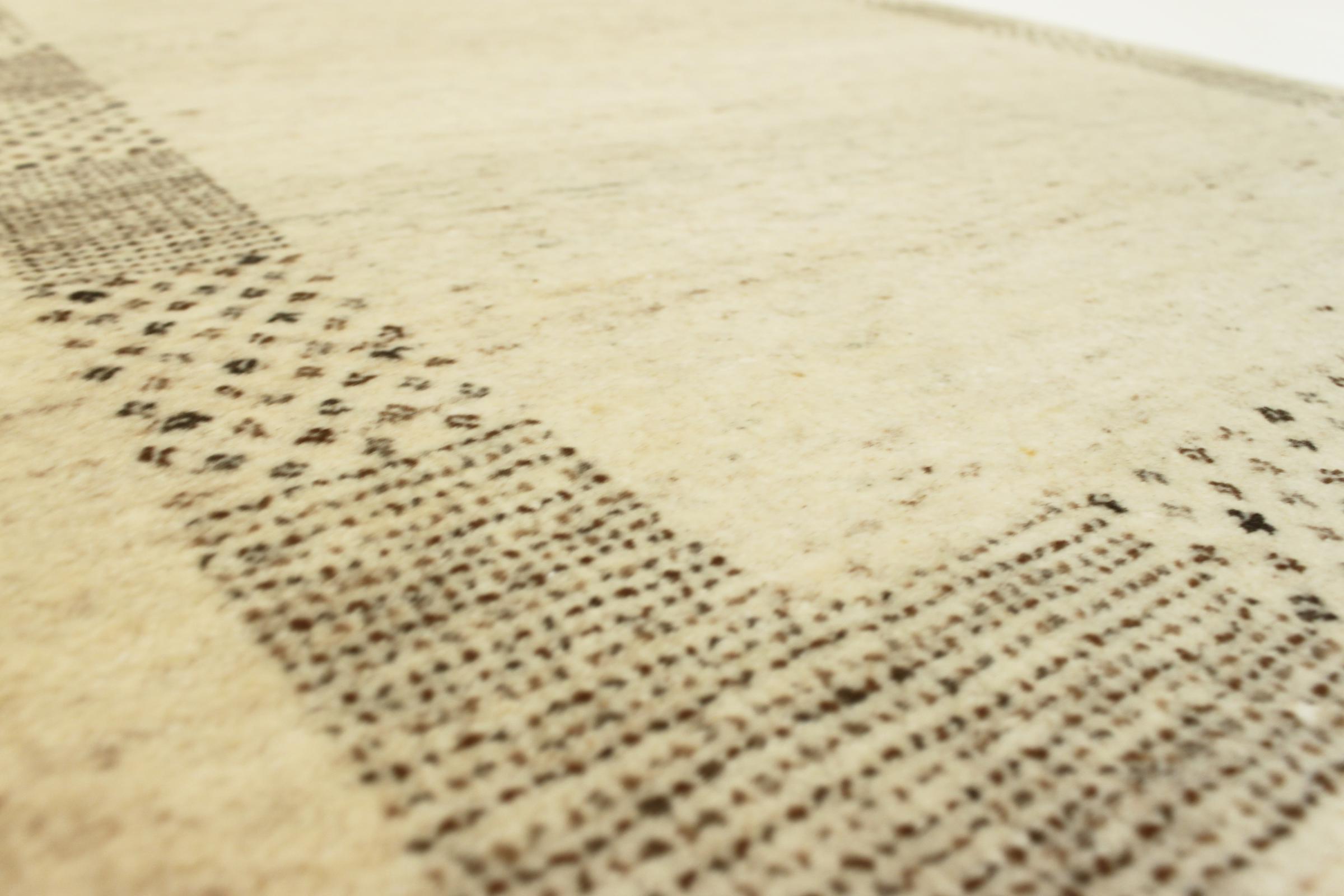 Este belo tapete Gabbeh foi atado à mão na Índia. Os tapetes indianos Gabbeh são feitos de lã de ovelha macia, são confortáveis nos pés e têm propriedades isolantes térmicas. Na sua maioria, os seus designs são simples e modernos e intemporais. Foram inspirados por povos nómadas, que deixaram fluir para os tapetes motivos muito simples do seu ambiente. Os tapetes Gabbeh indianos não se aproximam muito da qualidade de um Gabbeh persa, mas têm uma relação preço-desempenho muito boa. Por isso, são perfeitamente adequados como tapetes para principiantes.