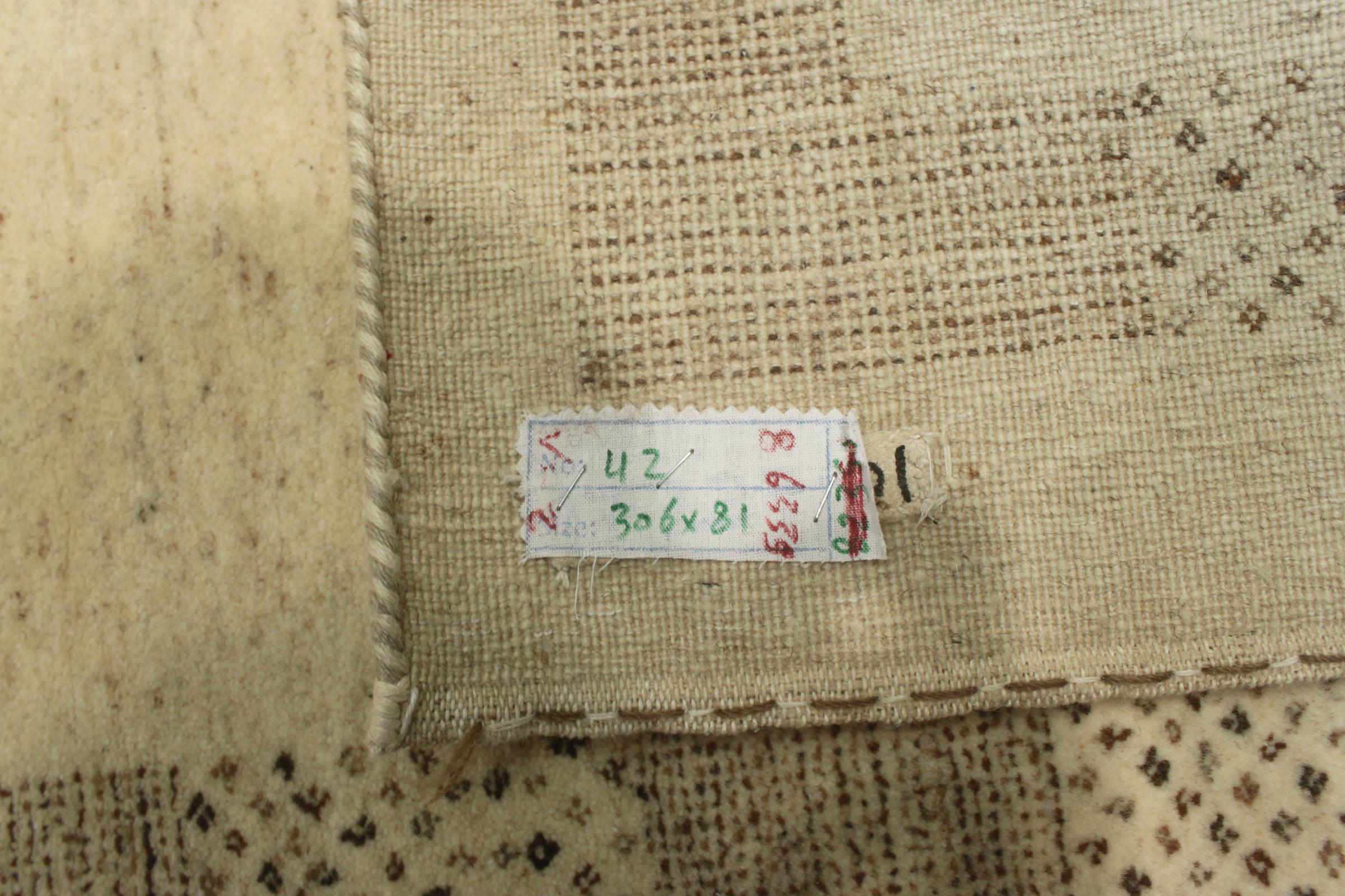 Nº do Tapete: 35114001966020 Tamanho: 307x80 cm Espessura: aproximadamente 10 mm Nós: 160 000 - 200 000 / m² Processamento: Atado à mão Veludo: Lã Natural Urdidura: Algodão Origem: Índia Idade: Novo Peso: aproximadamente 9 kg Em armazém: Único - Apenas 1 em stock