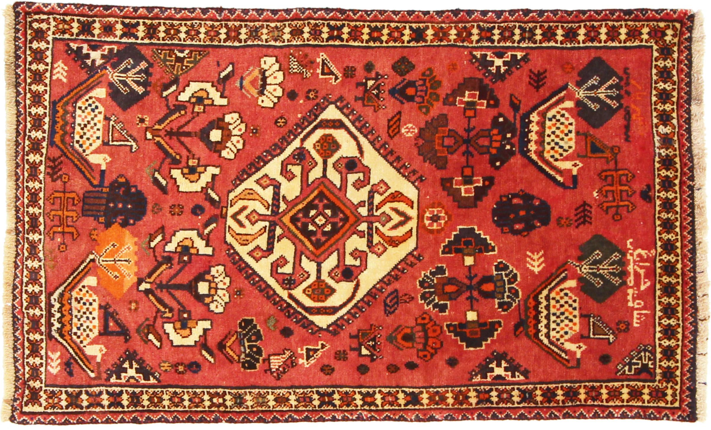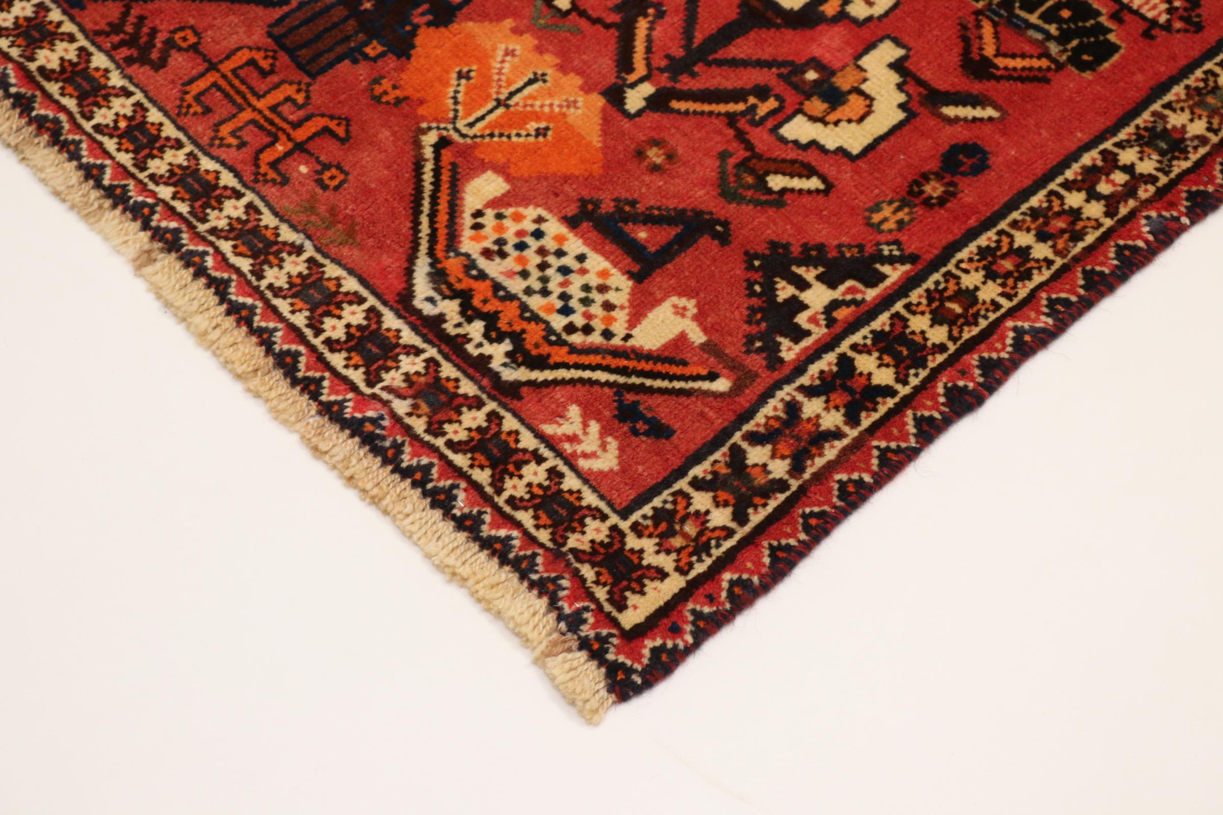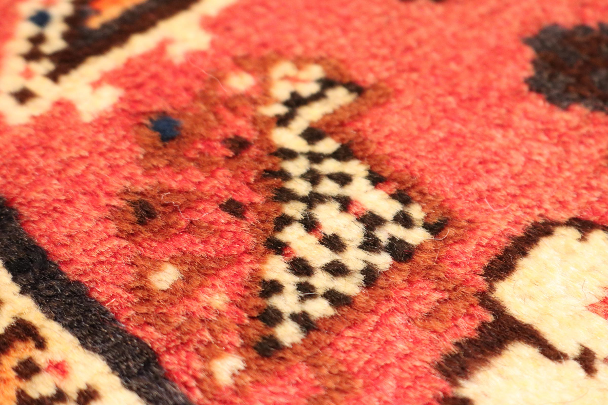 Este tapete pertence a tapetes de aldeia e nómadas do Irão, antiga Pérsia. Este tipo de tapete é atado à mão em cidades mais pequenas e aldeias da velha tradição. Mesmo os nómadas ainda atam tapetes persas ao ar livre. Os tapetes são atados sem padrão e completamente a partir da cabeça. Caracterizam-se por ornamentos clássicos, dispostos em padrões rectos e geométricos. Graças à sua origem cultural-tradicional, estes tapetes têm um carácter único que encarna a antiga Pérsia.