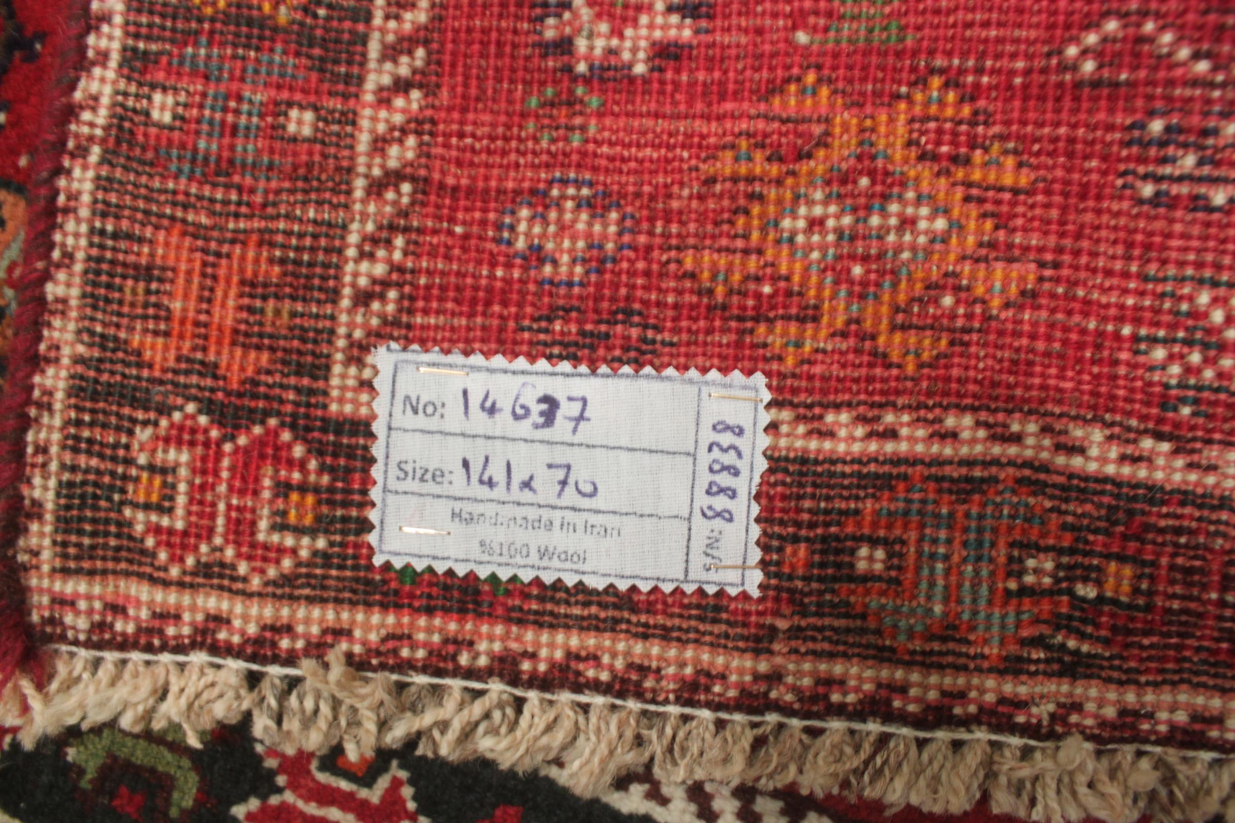 Nº do Tapete: 29529009042779 Tamanho: 142x71 cm Espessura: aproximadamente 12 mm Nós: 128 000 - 160 000 / m² Processamento: Atado à mão Veludo: Lã tecida à mão Urdidura: Algodão Origem: Pérsia / Iran Idade: Novo Peso: aproximadamente 4 kg Também conhecido como Qashqai, Gaschgai, Gashghai, Kashgai Em armazém: Único - Apenas 1 em stock