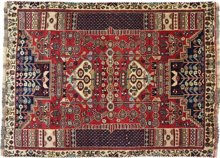 Este tapete pertence a tapetes de aldeia e nómadas do Irão, antiga Pérsia. Este tipo de tapete é atado à mão em cidades mais pequenas e aldeias da velha tradição. Mesmo os nómadas ainda atam tapetes persas ao ar livre. Os tapetes são atados sem padrão e completamente a partir da cabeça. Caracterizam-se por ornamentos clássicos, dispostos em padrões rectos e geométricos. Graças à sua origem cultural-tradicional, estes tapetes têm um carácter único que encarna a antiga Pérsia.