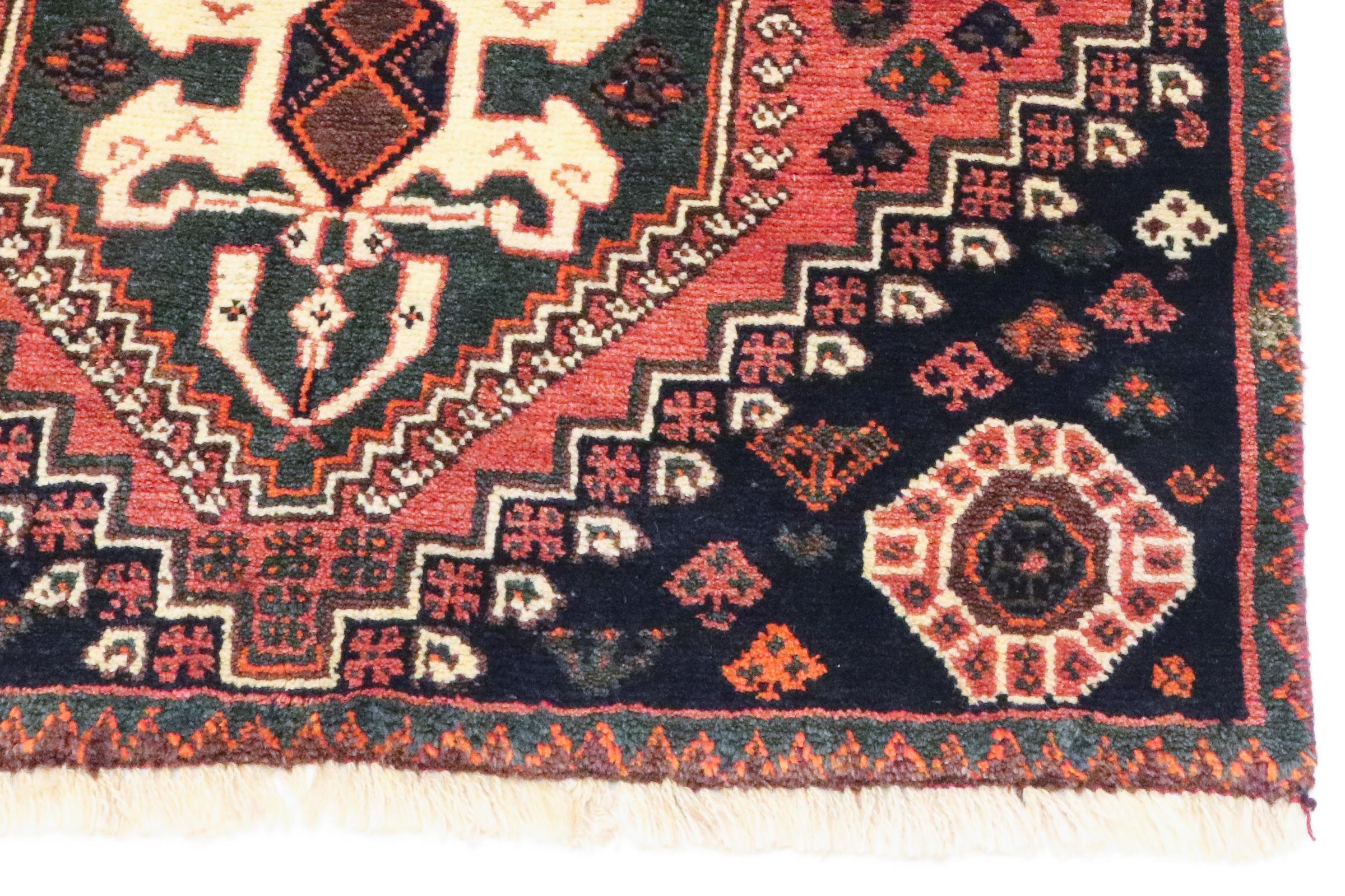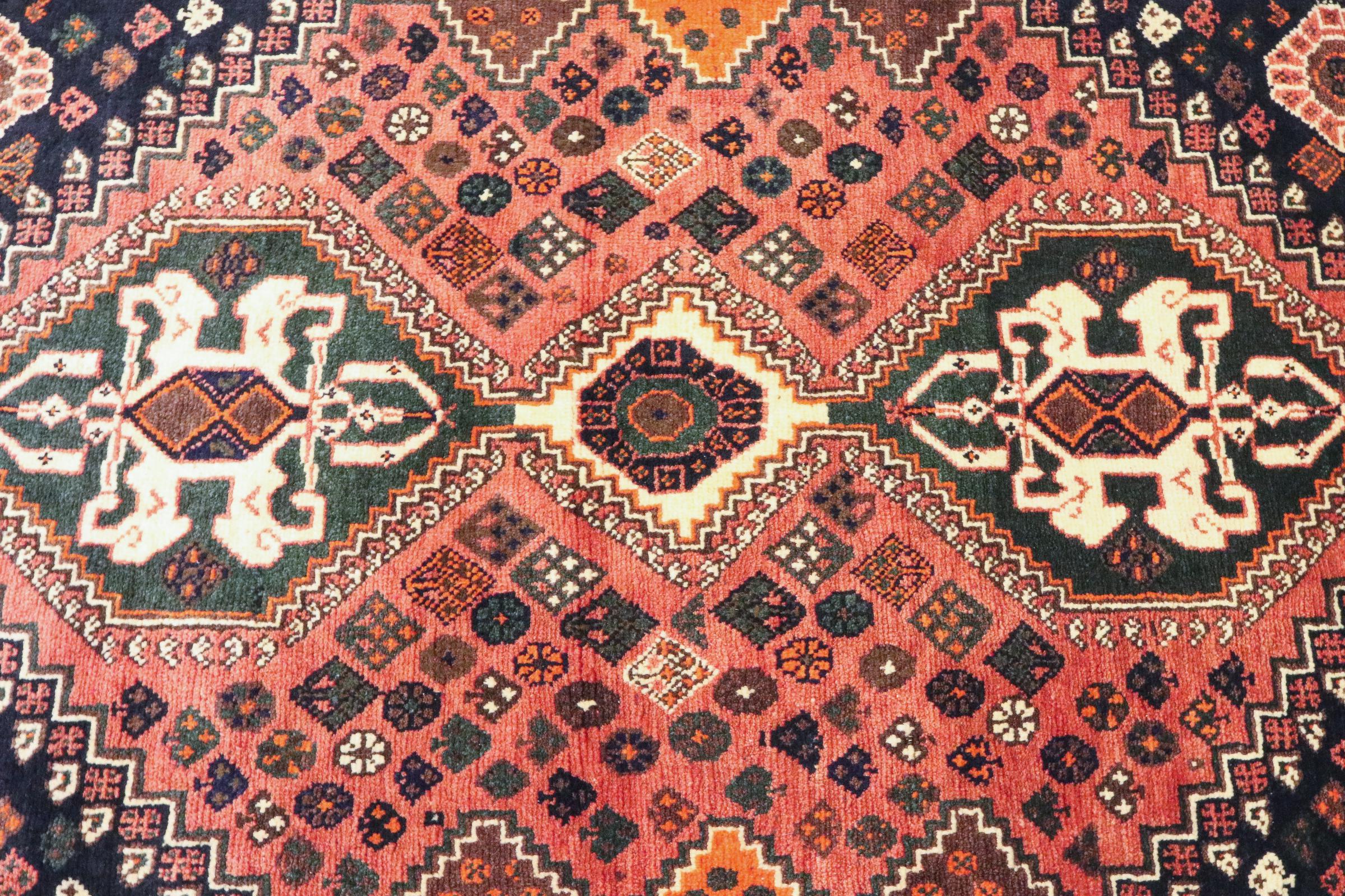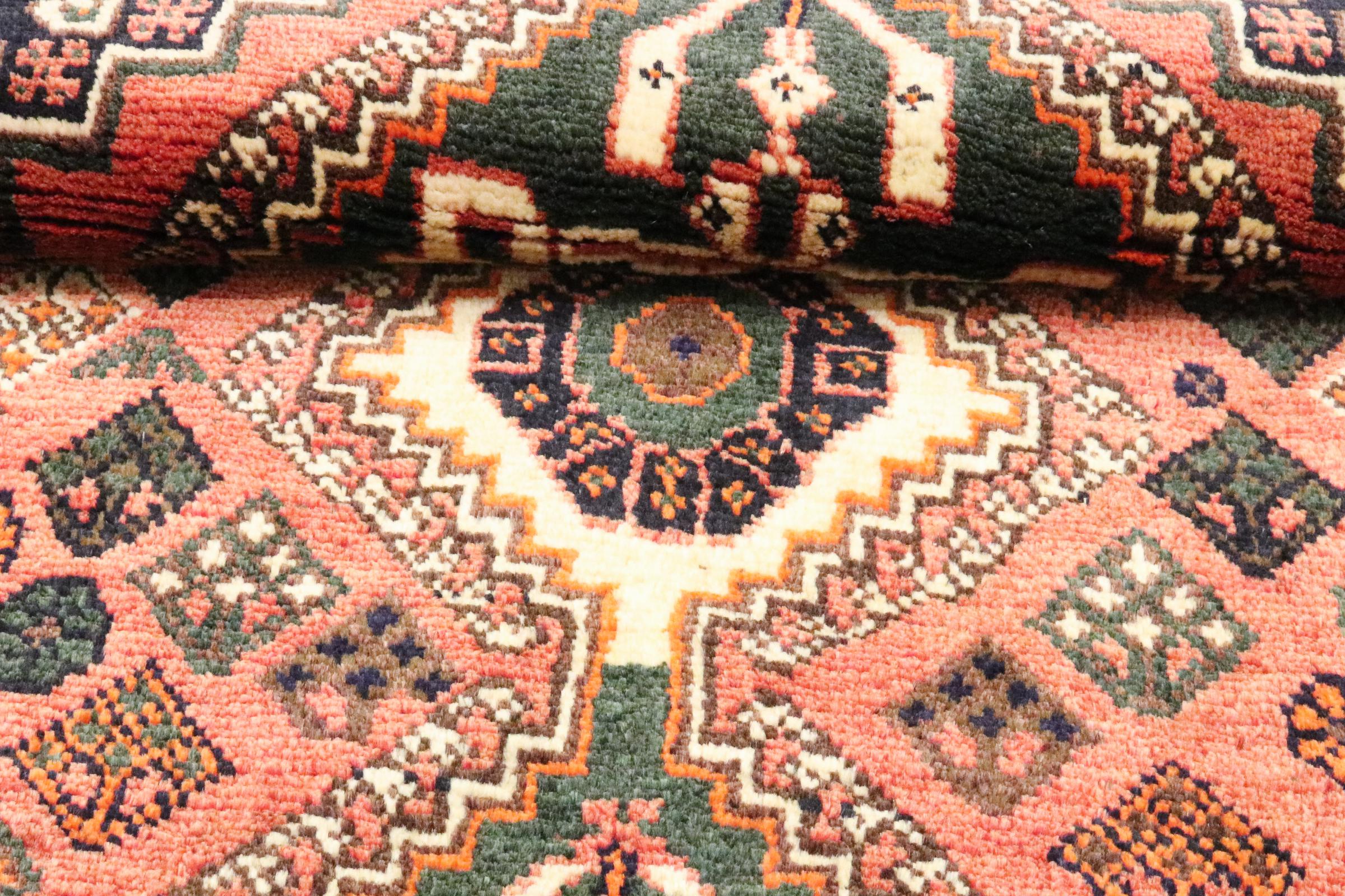 Este ghashghai é um verdadeiro destaque. As suas cores e padrões reflectem a vida dos nómadas ghashghai do Irão. Estas tribos nómadas vivem principalmente nos arredores da cidade de Shiraz. Deixe um pedaço da antiga cultura persa entrar nas suas próprias quatro paredes.