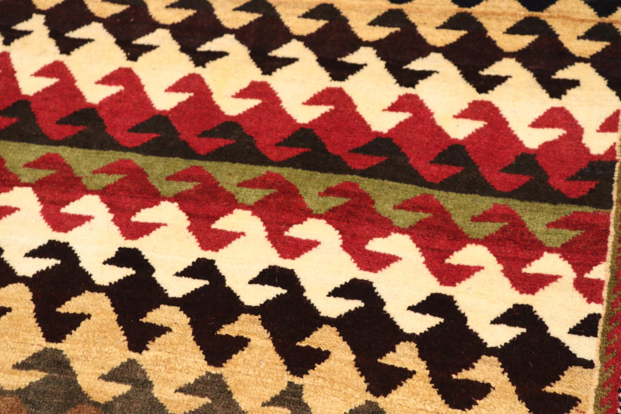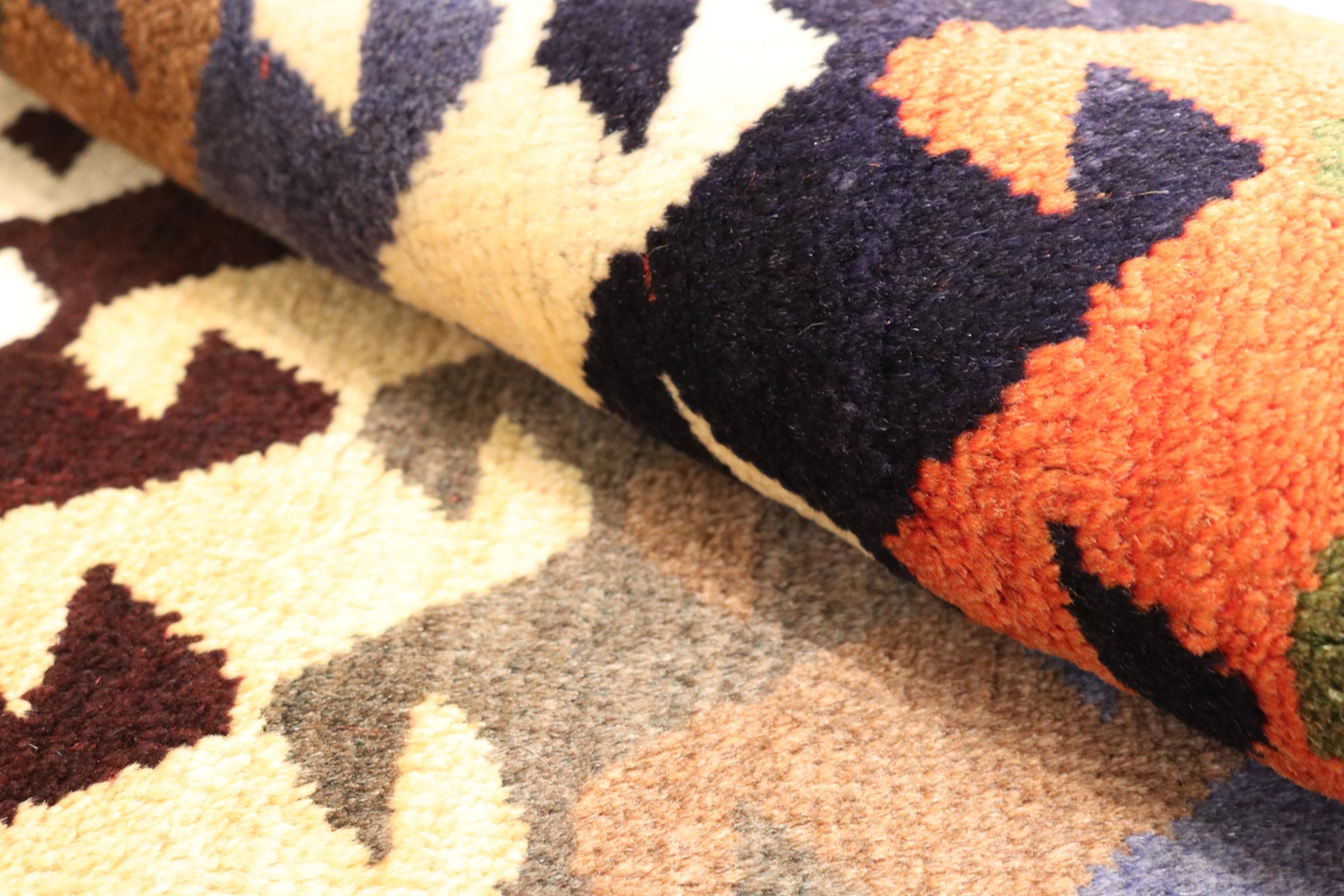 Este ghashghai é um verdadeiro destaque. As suas cores e padrões reflectem a vida dos nómadas ghashghai do Irão. Estas tribos nómadas vivem principalmente nos arredores da cidade de Shiraz. Deixe um pedaço da antiga cultura persa entrar nas suas próprias quatro paredes.