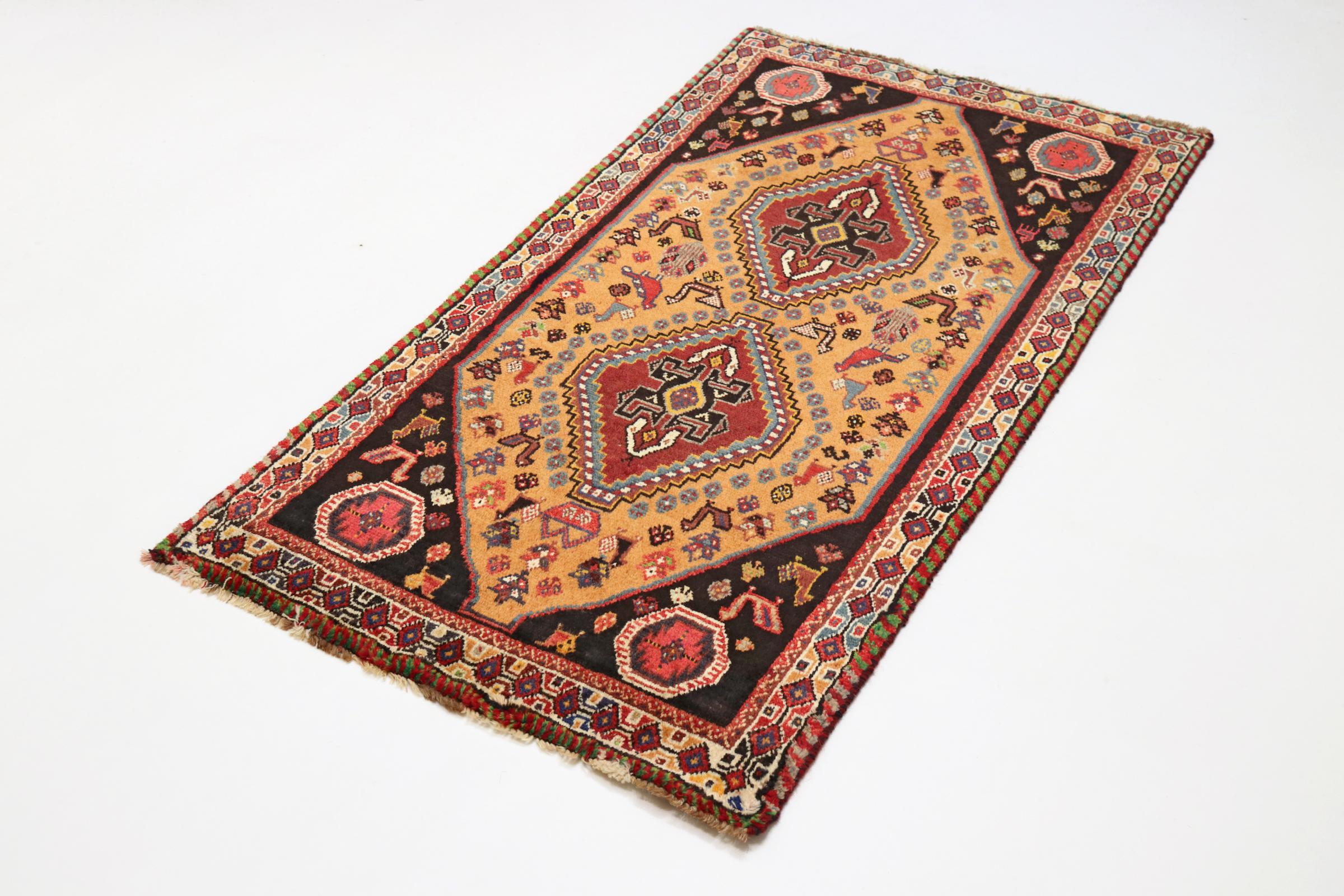 Este ghashghai é um verdadeiro destaque. As suas cores e padrões reflectem a vida dos nómadas ghashghai do Irão. Estas tribos nómadas vivem principalmente nos arredores da cidade de Shiraz. Deixe um pedaço da antiga cultura persa entrar nas suas próprias quatro paredes.
