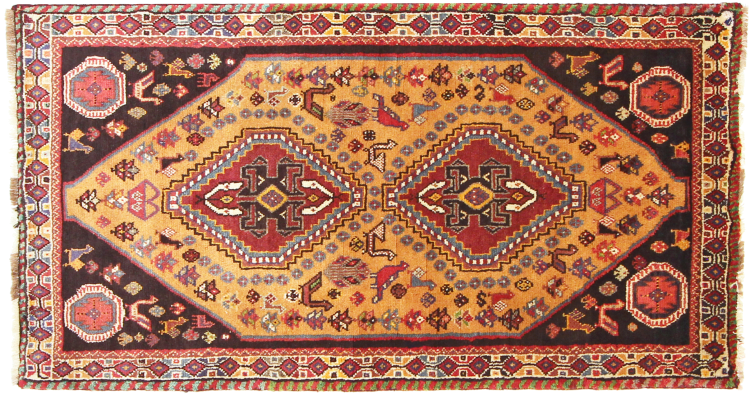 Este tapete pertence a tapetes de aldeia e nómadas do Irão, antiga Pérsia. Este tipo de tapete é atado à mão em cidades mais pequenas e aldeias da velha tradição. Mesmo os nómadas ainda atam tapetes persas ao ar livre. Os tapetes são atados sem padrão e completamente a partir da cabeça. Caracterizam-se por ornamentos clássicos, dispostos em padrões rectos e geométricos. Graças à sua origem cultural-tradicional, estes tapetes têm um carácter único que encarna a antiga Pérsia.