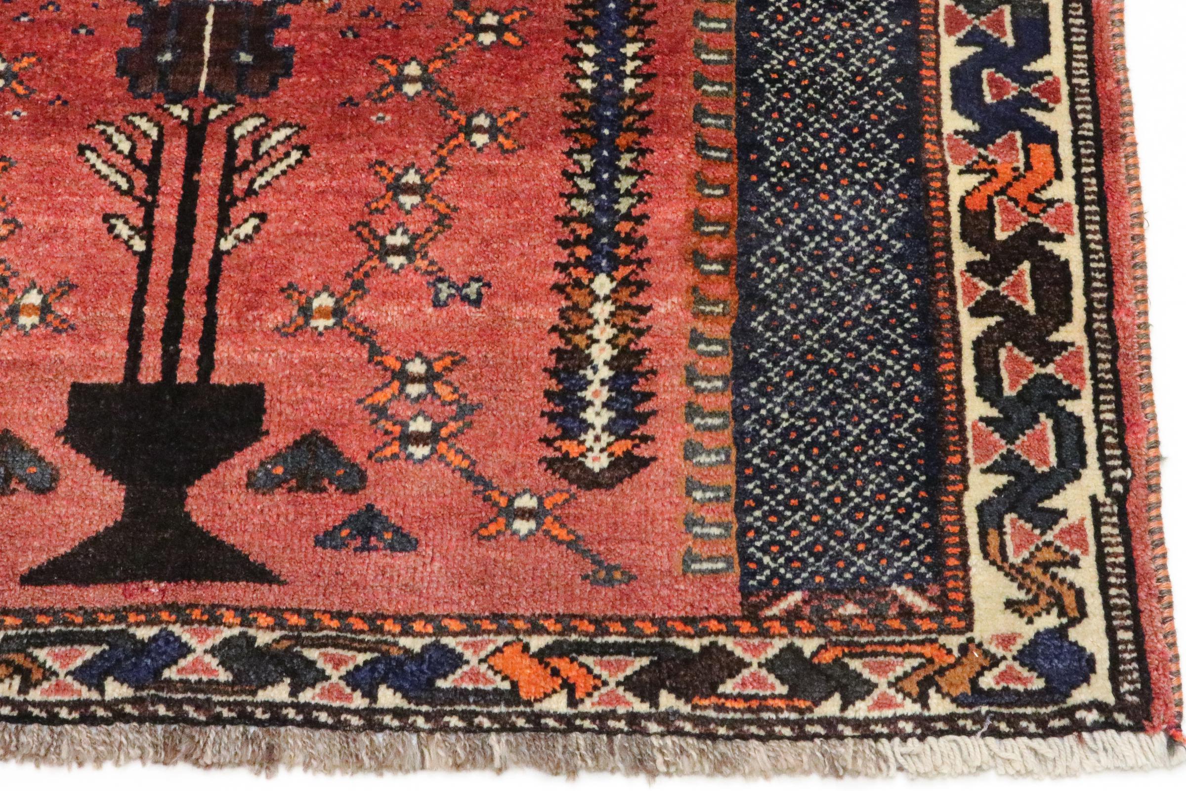 Este tapete pertence a tapetes de aldeia e nómadas do Irão, antiga Pérsia. Este tipo de tapete é atado à mão em cidades mais pequenas e aldeias da velha tradição. Mesmo os nómadas ainda atam tapetes persas ao ar livre. Os tapetes são atados sem padrão e completamente a partir da cabeça. Caracterizam-se por ornamentos clássicos, dispostos em padrões rectos e geométricos. Graças à sua origem cultural-tradicional, estes tapetes têm um carácter único que encarna a antiga Pérsia.