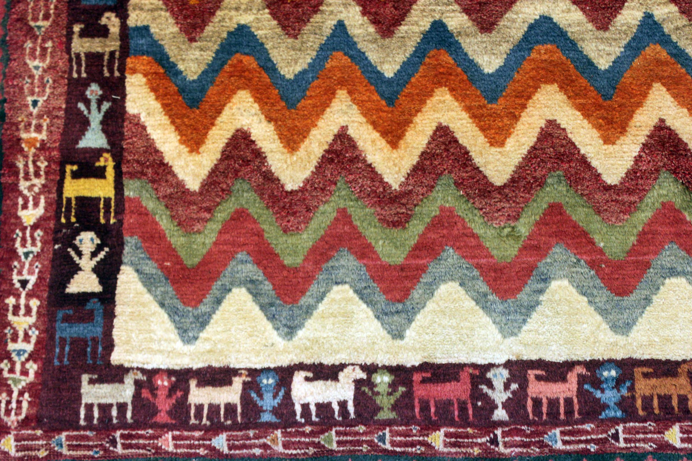 Este tapete pertence a tapetes de aldeia e nómadas do Irão, antiga Pérsia. Este tipo de tapete é atado à mão em cidades mais pequenas e aldeias da velha tradição. Mesmo os nómadas ainda atam tapetes persas ao ar livre. Os tapetes são atados sem padrão e completamente a partir da cabeça. Caracterizam-se por ornamentos clássicos, dispostos em padrões rectos e geométricos. Graças à sua origem cultural-tradicional, estes tapetes têm um carácter único que encarna a antiga Pérsia.