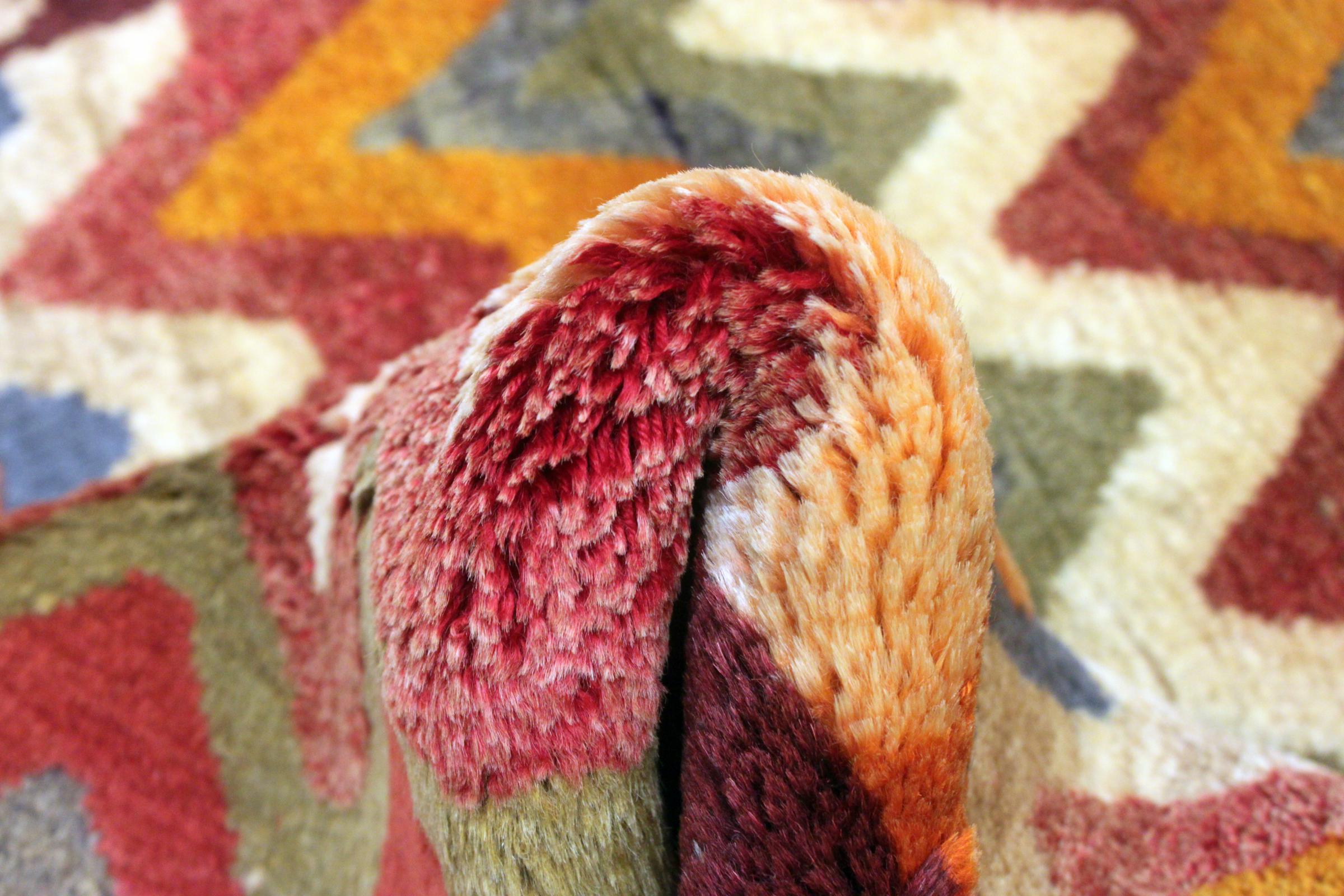 Este ghashghai é um verdadeiro destaque. As suas cores e padrões reflectem a vida dos nómadas ghashghai do Irão. Estas tribos nómadas vivem principalmente nos arredores da cidade de Shiraz. Deixe um pedaço da antiga cultura persa entrar nas suas próprias quatro paredes.