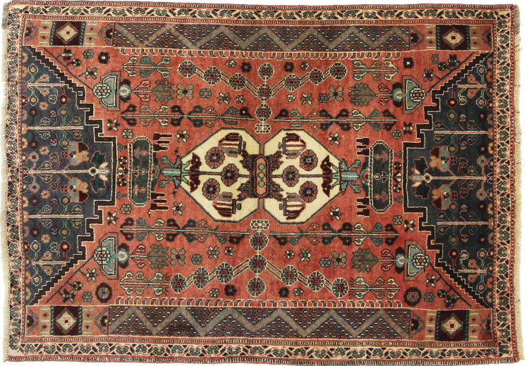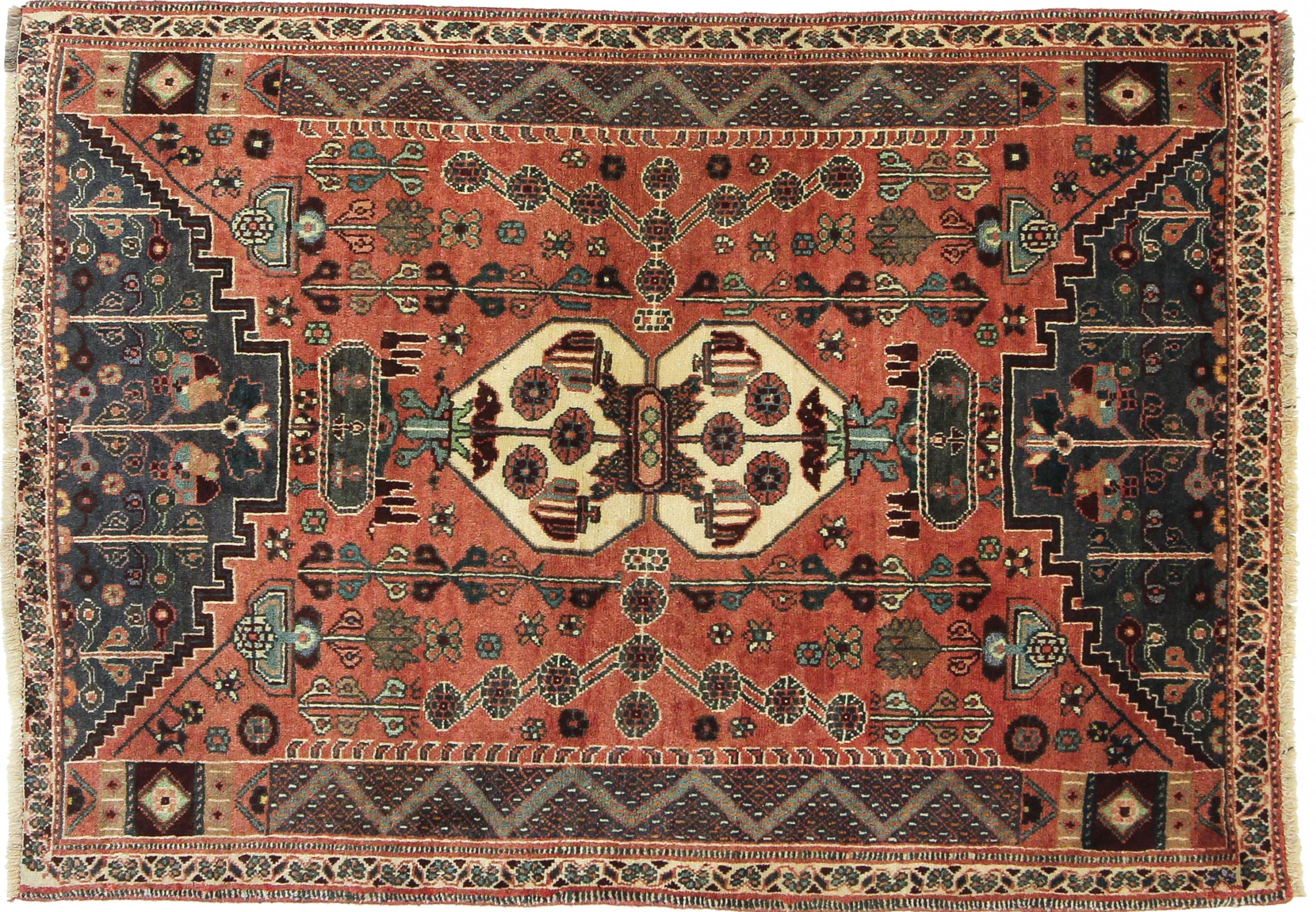 Este tapete pertence a tapetes de aldeia e nómadas do Irão, antiga Pérsia. Este tipo de tapete é atado à mão em cidades mais pequenas e aldeias da velha tradição. Mesmo os nómadas ainda atam tapetes persas ao ar livre. Os tapetes são atados sem padrão e completamente a partir da cabeça. Caracterizam-se por ornamentos clássicos, dispostos em padrões rectos e geométricos. Graças à sua origem cultural-tradicional, estes tapetes têm um carácter único que encarna a antiga Pérsia.
