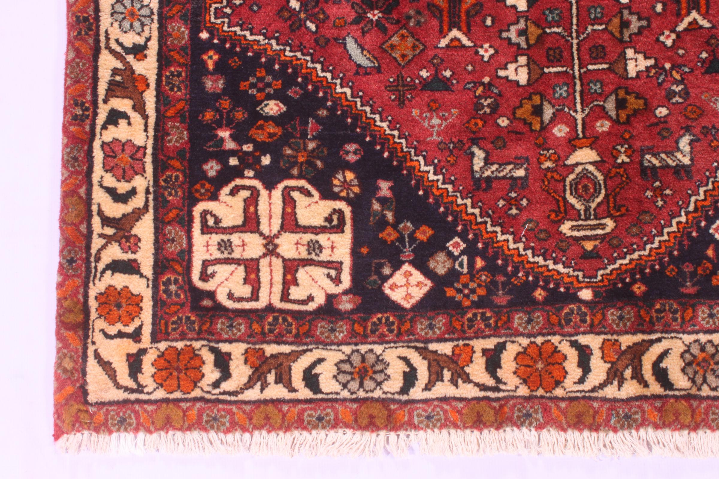 Este tapete pertence a tapetes de aldeia e nómadas do Irão, antiga Pérsia. Este tipo de tapete é atado à mão em cidades mais pequenas e aldeias da velha tradição. Mesmo os nómadas ainda atam tapetes persas ao ar livre. Os tapetes são atados sem padrão e completamente a partir da cabeça. Caracterizam-se por ornamentos clássicos, dispostos em padrões rectos e geométricos. Graças à sua origem cultural-tradicional, estes tapetes têm um carácter único que encarna a antiga Pérsia.