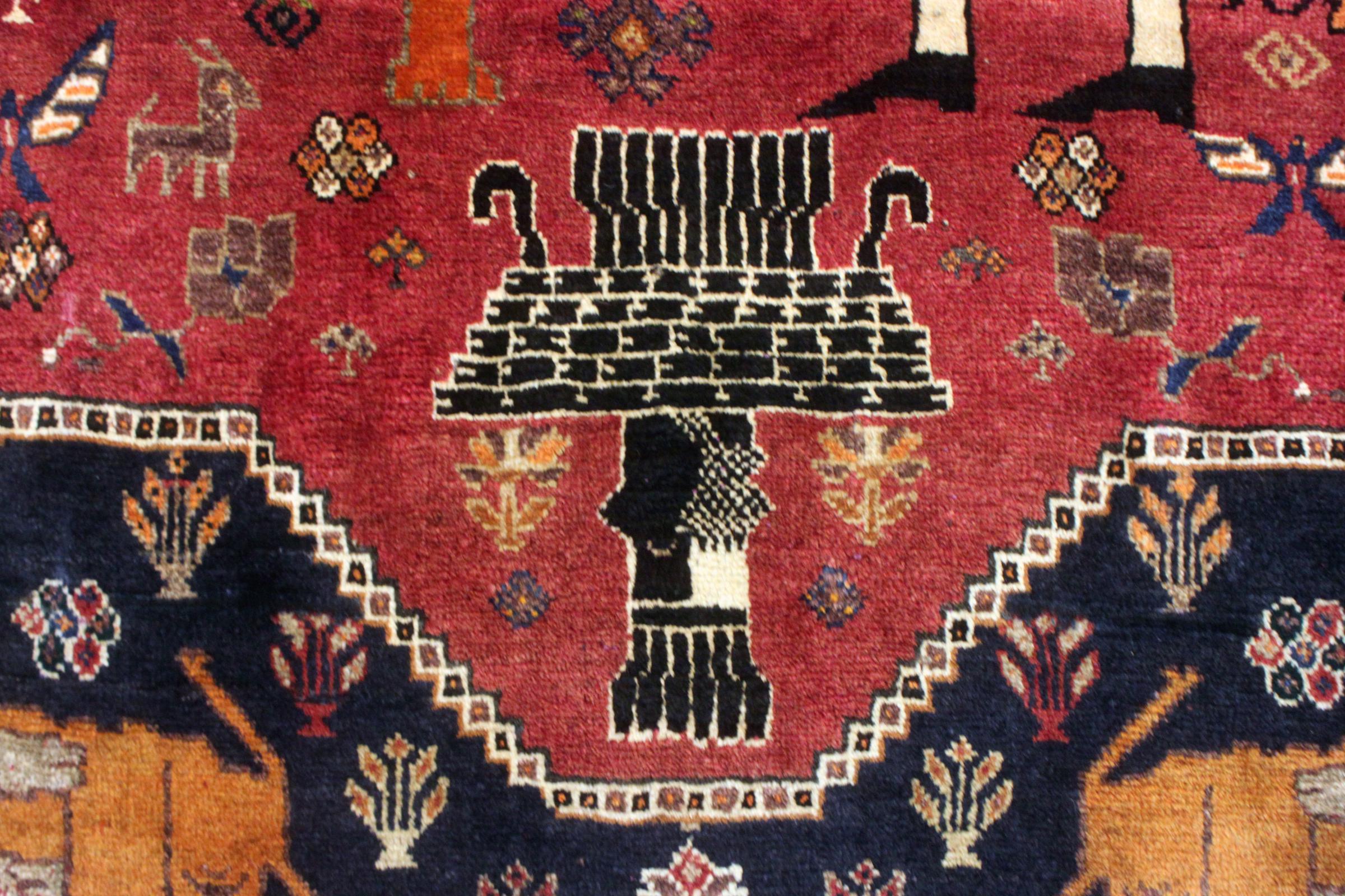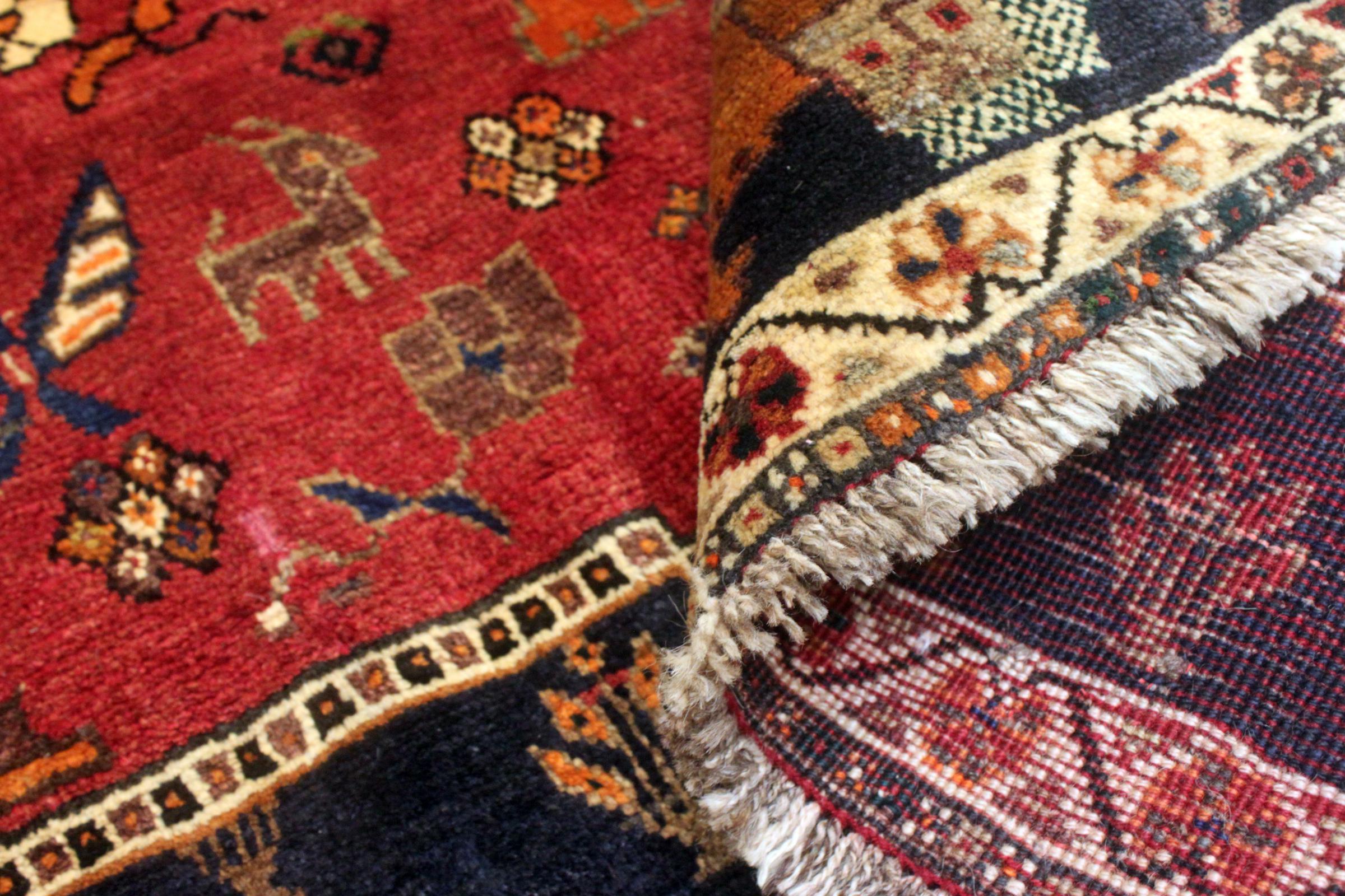 Nº do Tapete: 110987006369233 Tamanho: 158x107 cm Espessura: aproximadamente 12 mm Nós: 160 000 - 200 000 / m² Processamento: Atado à mão Veludo: Lã tecida à mão Urdidura: Lã Natural Origem: Pérsia / Iran Idade: Novo Peso: aproximadamente 6 kg Também conhecido como Qashqai, Gaschgai, Gashghai, Kashgai Em armazém: Único - Apenas 1 em stock