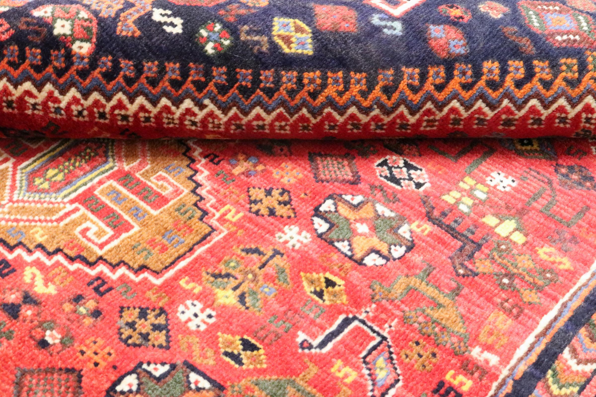 Este ghashghai é um verdadeiro destaque. As suas cores e padrões reflectem a vida dos nómadas ghashghai do Irão. Estas tribos nómadas vivem principalmente nos arredores da cidade de Shiraz. Deixe um pedaço da antiga cultura persa entrar nas suas próprias quatro paredes.