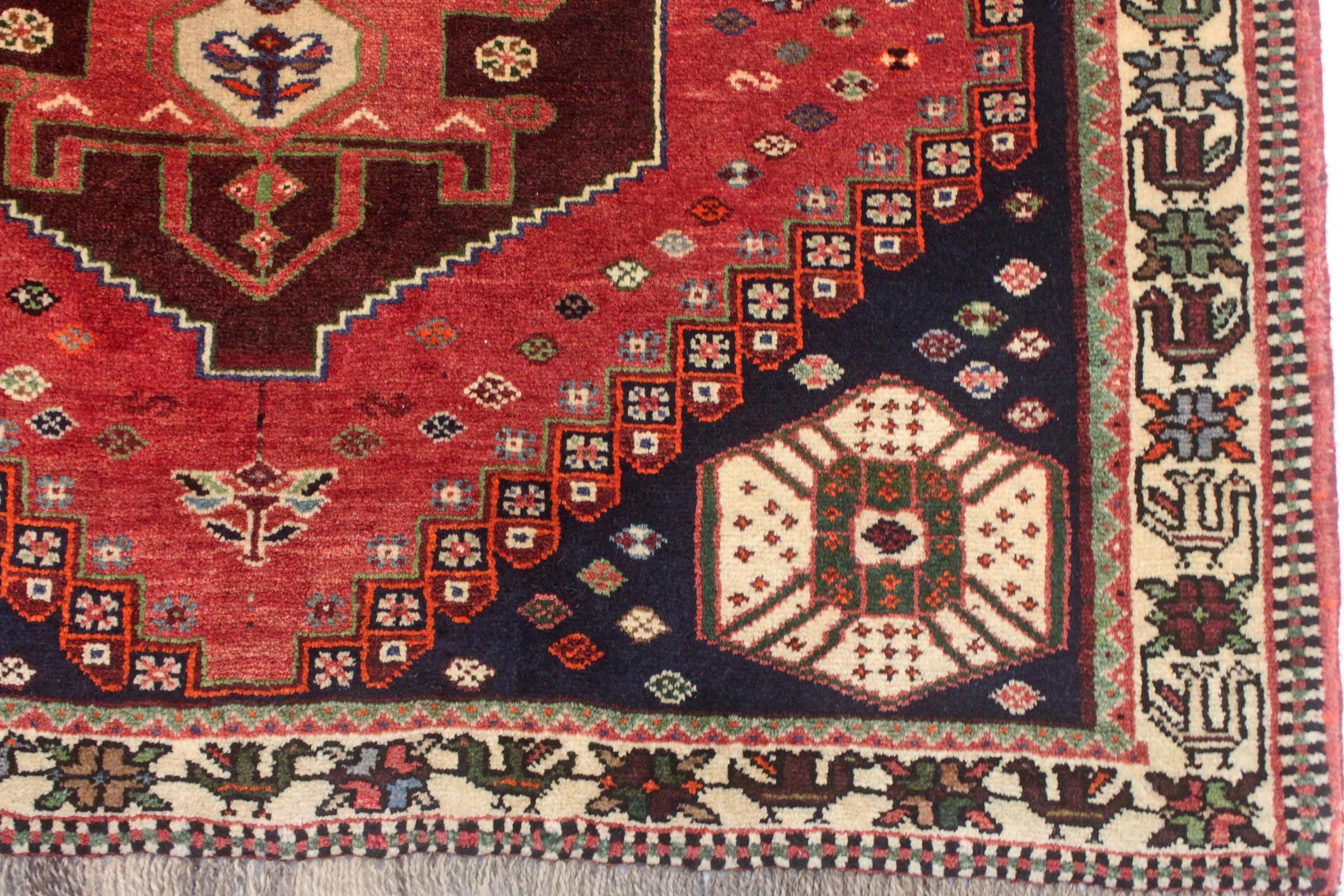 Este ghashghai é um verdadeiro destaque. As suas cores e padrões reflectem a vida dos nómadas ghashghai do Irão. Estas tribos nómadas vivem principalmente nos arredores da cidade de Shiraz. Deixe um pedaço da antiga cultura persa entrar nas suas próprias quatro paredes.