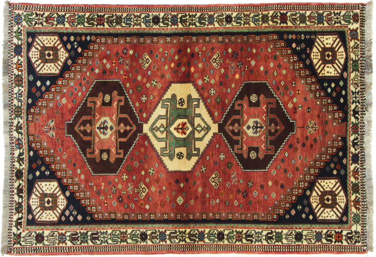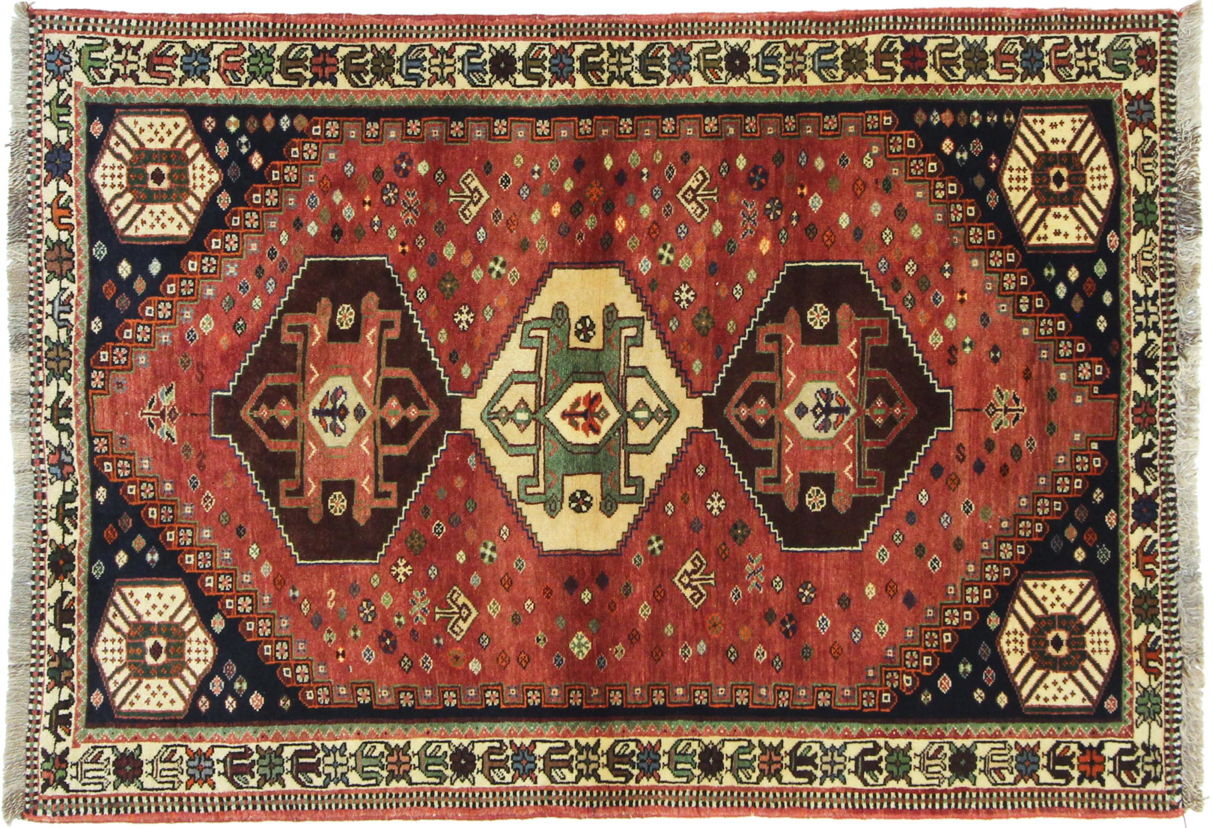 Este tapete pertence a tapetes de aldeia e nómadas do Irão, antiga Pérsia. Este tipo de tapete é atado à mão em cidades mais pequenas e aldeias da velha tradição. Mesmo os nómadas ainda atam tapetes persas ao ar livre. Os tapetes são atados sem padrão e completamente a partir da cabeça. Caracterizam-se por ornamentos clássicos, dispostos em padrões rectos e geométricos. Graças à sua origem cultural-tradicional, estes tapetes têm um carácter único que encarna a antiga Pérsia.