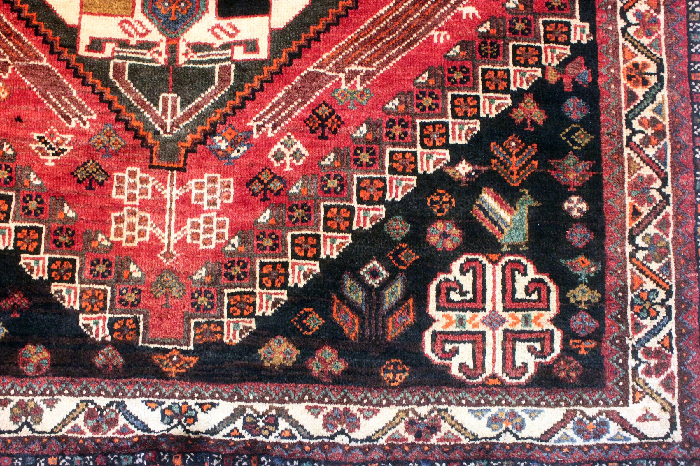 Este ghashghai é um verdadeiro destaque. As suas cores e padrões reflectem a vida dos nómadas ghashghai do Irão. Estas tribos nómadas vivem principalmente nos arredores da cidade de Shiraz. Deixe um pedaço da antiga cultura persa entrar nas suas próprias quatro paredes.