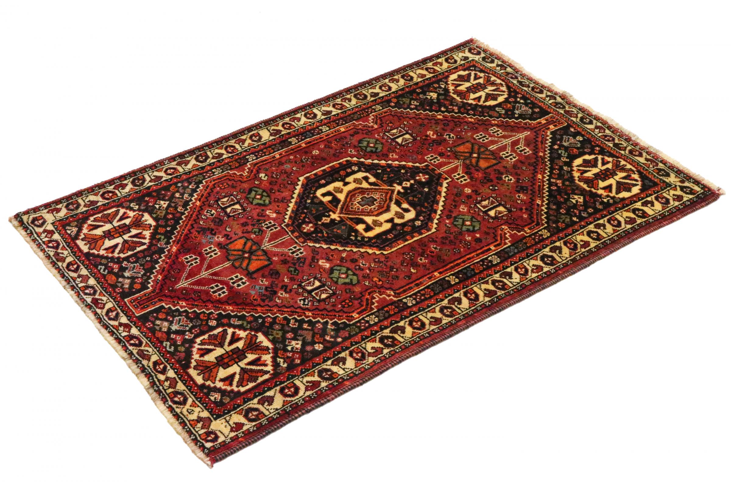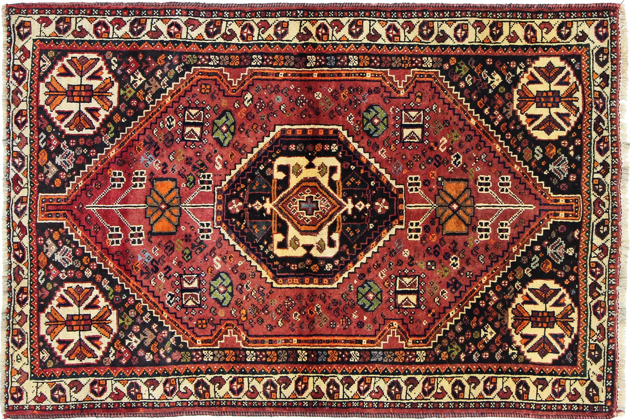 Nº do Tapete: 111884008827231 Tamanho: 161x104 cm Espessura: aproximadamente 12 mm Nós: 160 000 - 200 000 / m² Processamento: Atado à mão Veludo: Lã tecida à mão Urdidura: Lã Natural Origem: Pérsia / Iran Idade: Novo Peso: aproximadamente 6 kg Também conhecido como Qashqai, Gaschgai, Gashghai, Kashgai Em armazém: Único - Apenas 1 em stock