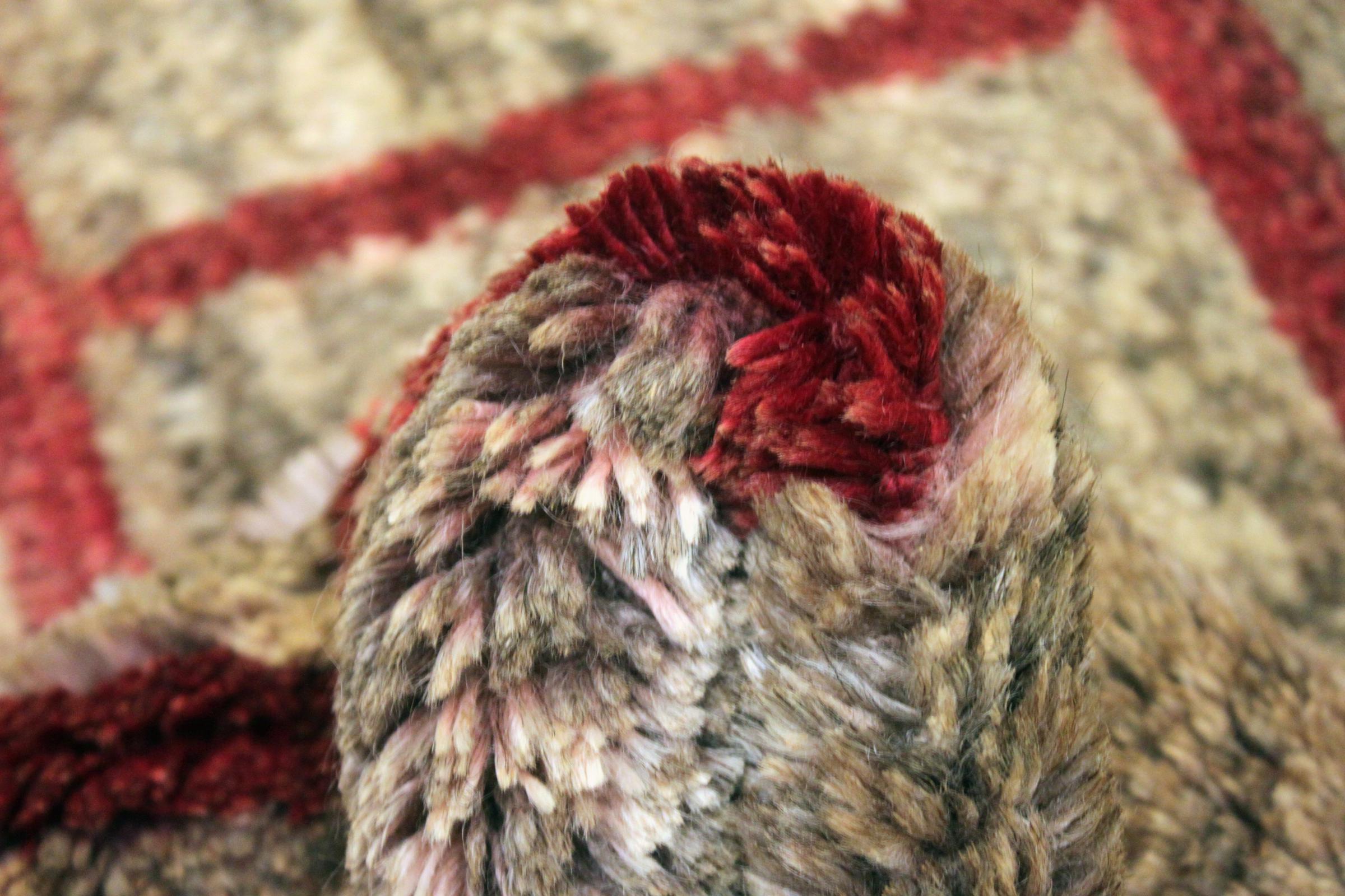 Este tapete é feito de lã de ovelha fiada à mão, da mais alta qualidade. Especialmente no Irão (antiga Pérsia), Afeganistão e Paquistão, a lã ainda é fiada à mão antes do início do nó do tapete. A lã tem provado ser um material natural e extremamente resistente ao longo dos séculos. Entre outras coisas, tem propriedades repelentes de impurezas e isolantes térmicos. Ao mesmo tempo, a lã é incomparavelmente macia e tem um brilho natural.
