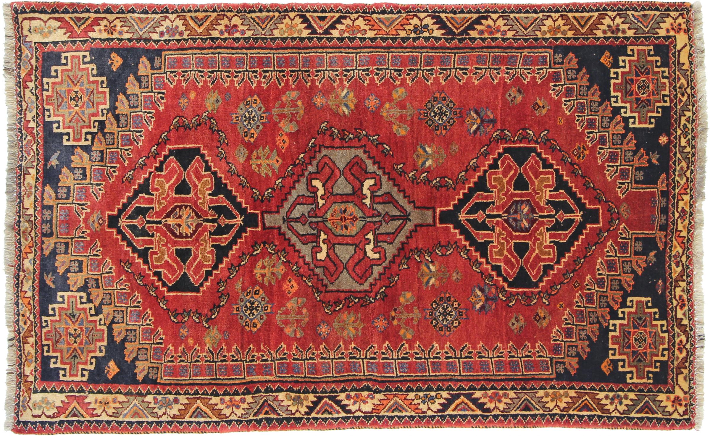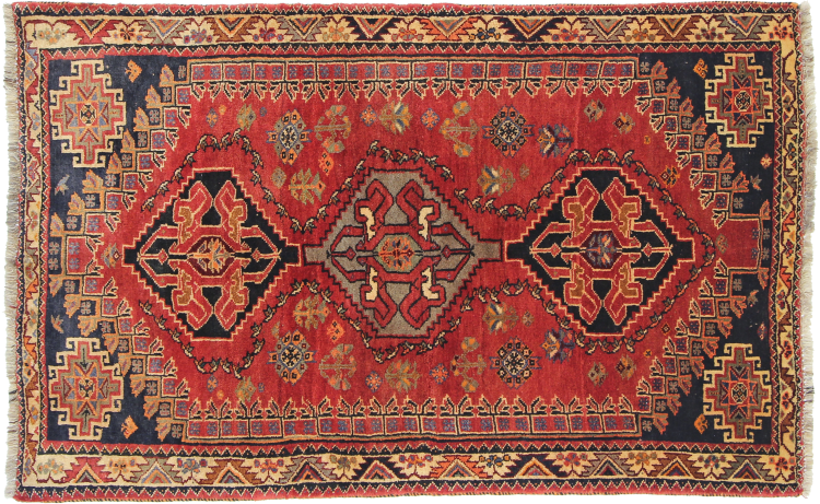 Este tapete pertence a tapetes de aldeia e nómadas do Irão, antiga Pérsia. Este tipo de tapete é atado à mão em cidades mais pequenas e aldeias da velha tradição. Mesmo os nómadas ainda atam tapetes persas ao ar livre. Os tapetes são atados sem padrão e completamente a partir da cabeça. Caracterizam-se por ornamentos clássicos, dispostos em padrões rectos e geométricos. Graças à sua origem cultural-tradicional, estes tapetes têm um carácter único que encarna a antiga Pérsia.