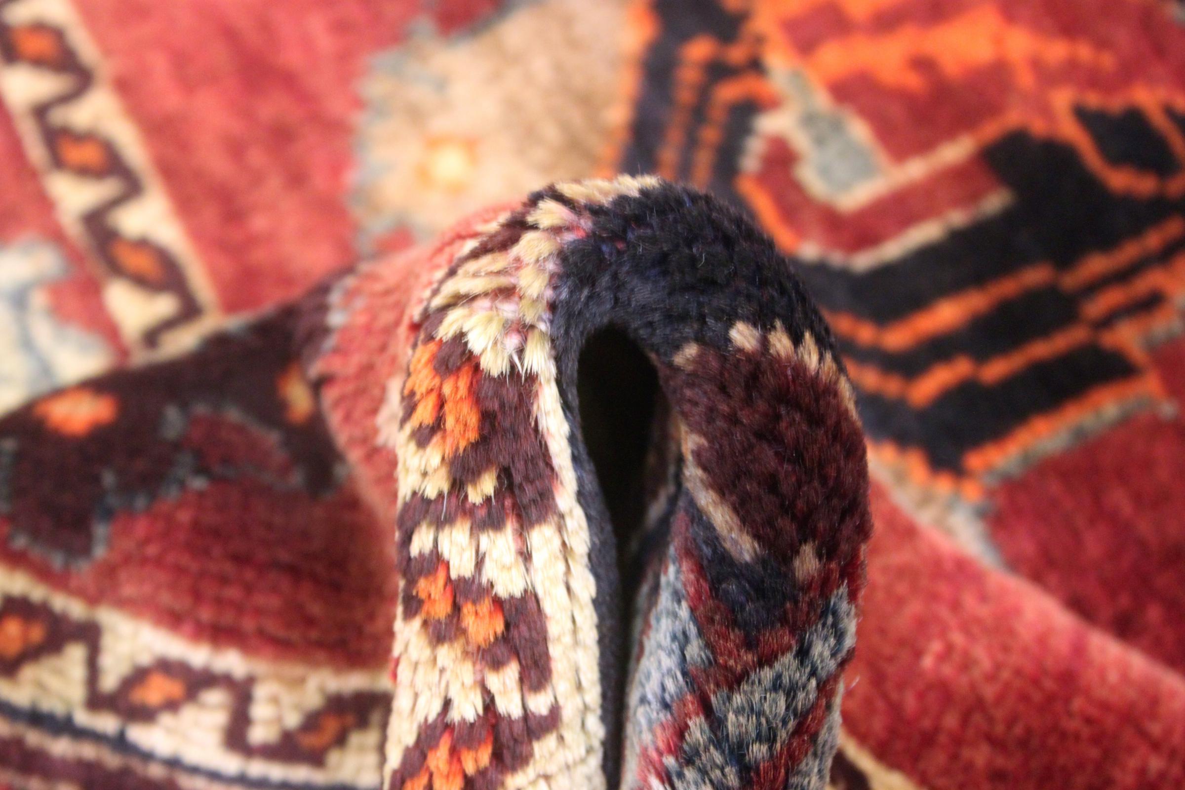 Este tapete pertence a tapetes de aldeia e nómadas do Irão, antiga Pérsia. Este tipo de tapete é atado à mão em cidades mais pequenas e aldeias da velha tradição. Mesmo os nómadas ainda atam tapetes persas ao ar livre. Os tapetes são atados sem padrão e completamente a partir da cabeça. Caracterizam-se por ornamentos clássicos, dispostos em padrões rectos e geométricos. Graças à sua origem cultural-tradicional, estes tapetes têm um carácter único que encarna a antiga Pérsia.