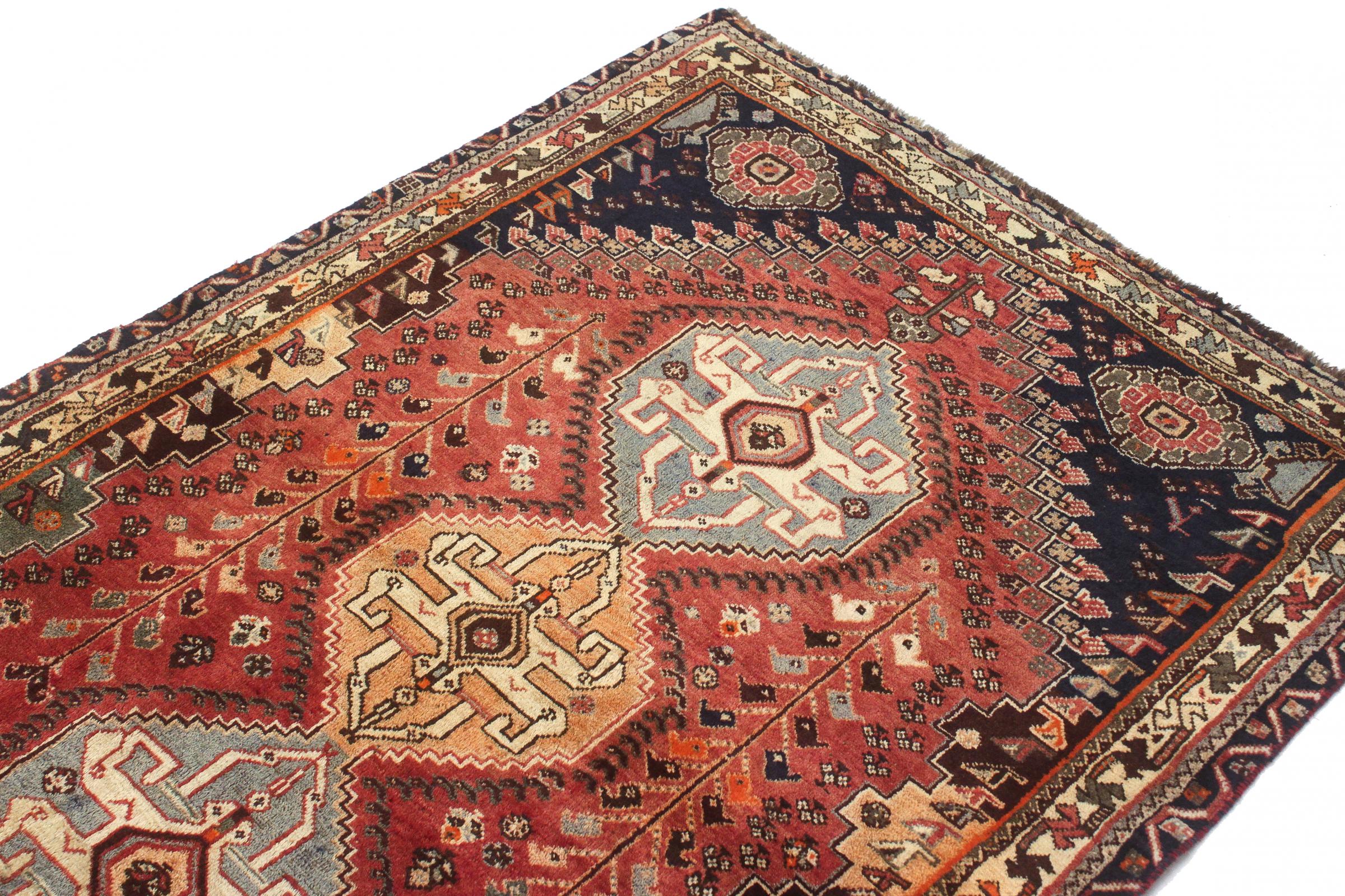 Este ghashghai é um verdadeiro destaque. As suas cores e padrões reflectem a vida dos nómadas ghashghai do Irão. Estas tribos nómadas vivem principalmente nos arredores da cidade de Shiraz. Deixe um pedaço da antiga cultura persa entrar nas suas próprias quatro paredes.