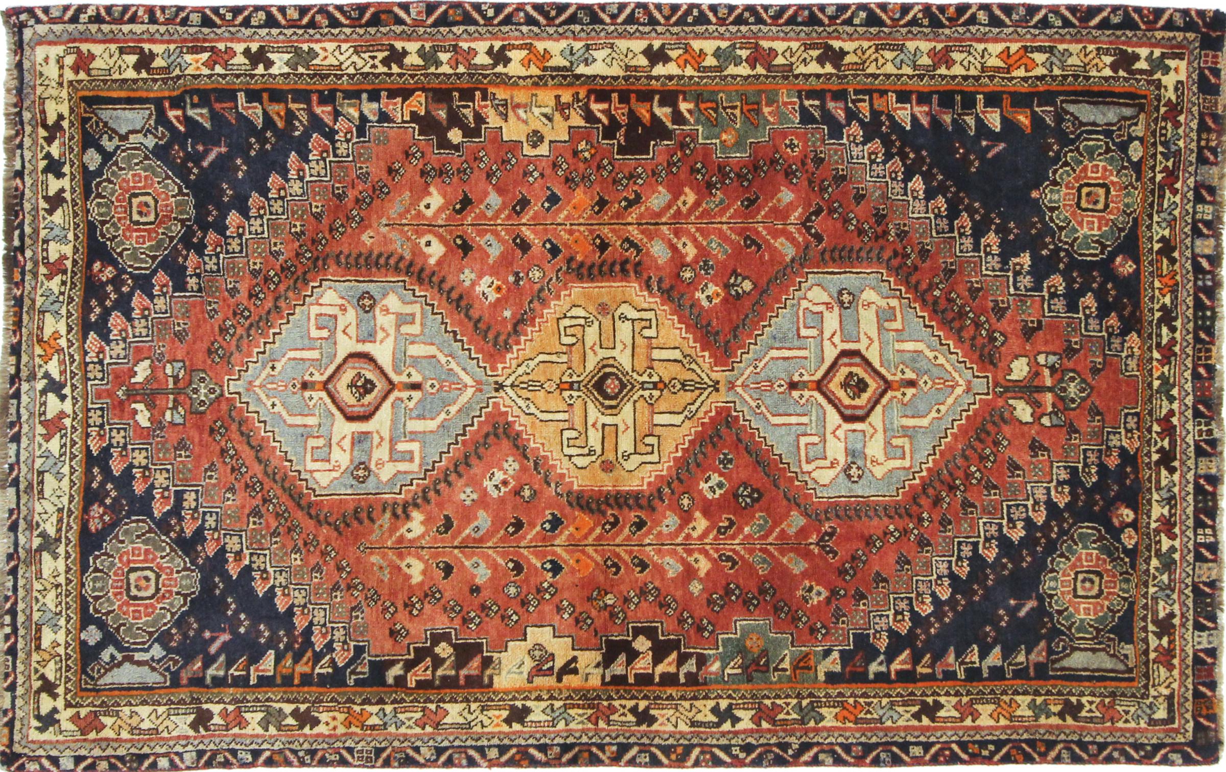 Este tapete pertence a tapetes de aldeia e nómadas do Irão, antiga Pérsia. Este tipo de tapete é atado à mão em cidades mais pequenas e aldeias da velha tradição. Mesmo os nómadas ainda atam tapetes persas ao ar livre. Os tapetes são atados sem padrão e completamente a partir da cabeça. Caracterizam-se por ornamentos clássicos, dispostos em padrões rectos e geométricos. Graças à sua origem cultural-tradicional, estes tapetes têm um carácter único que encarna a antiga Pérsia.