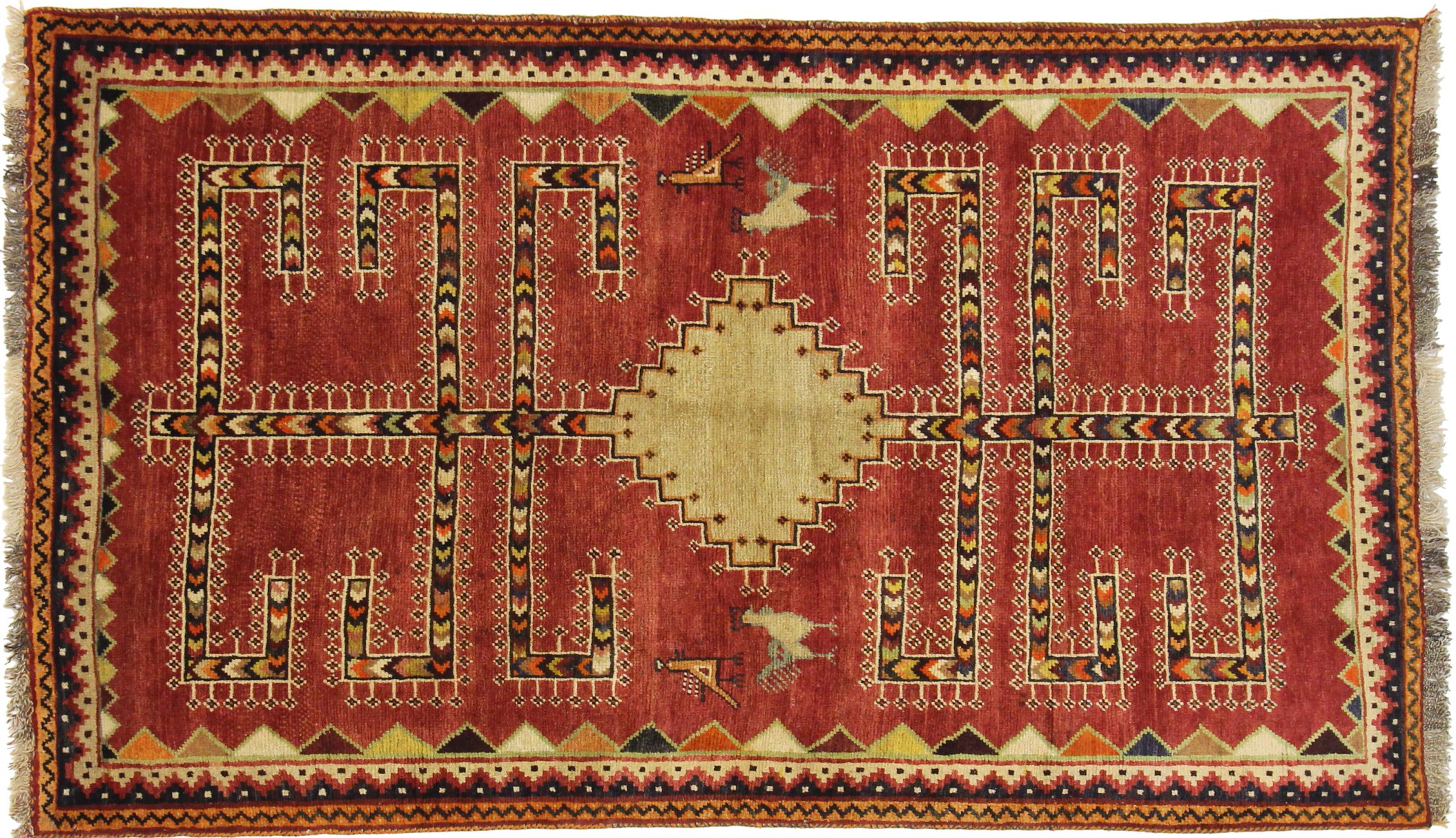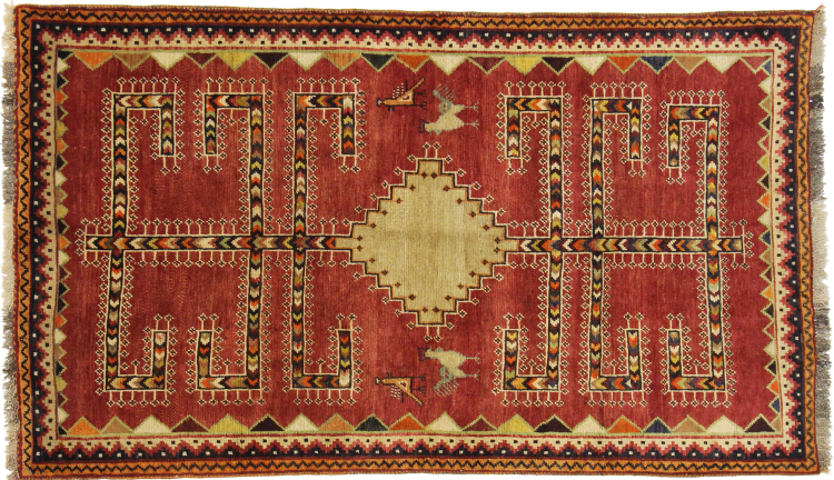 Este tapete pertence a tapetes de aldeia e nómadas do Irão, antiga Pérsia. Este tipo de tapete é atado à mão em cidades mais pequenas e aldeias da velha tradição. Mesmo os nómadas ainda atam tapetes persas ao ar livre. Os tapetes são atados sem padrão e completamente a partir da cabeça. Caracterizam-se por ornamentos clássicos, dispostos em padrões rectos e geométricos. Graças à sua origem cultural-tradicional, estes tapetes têm um carácter único que encarna a antiga Pérsia.