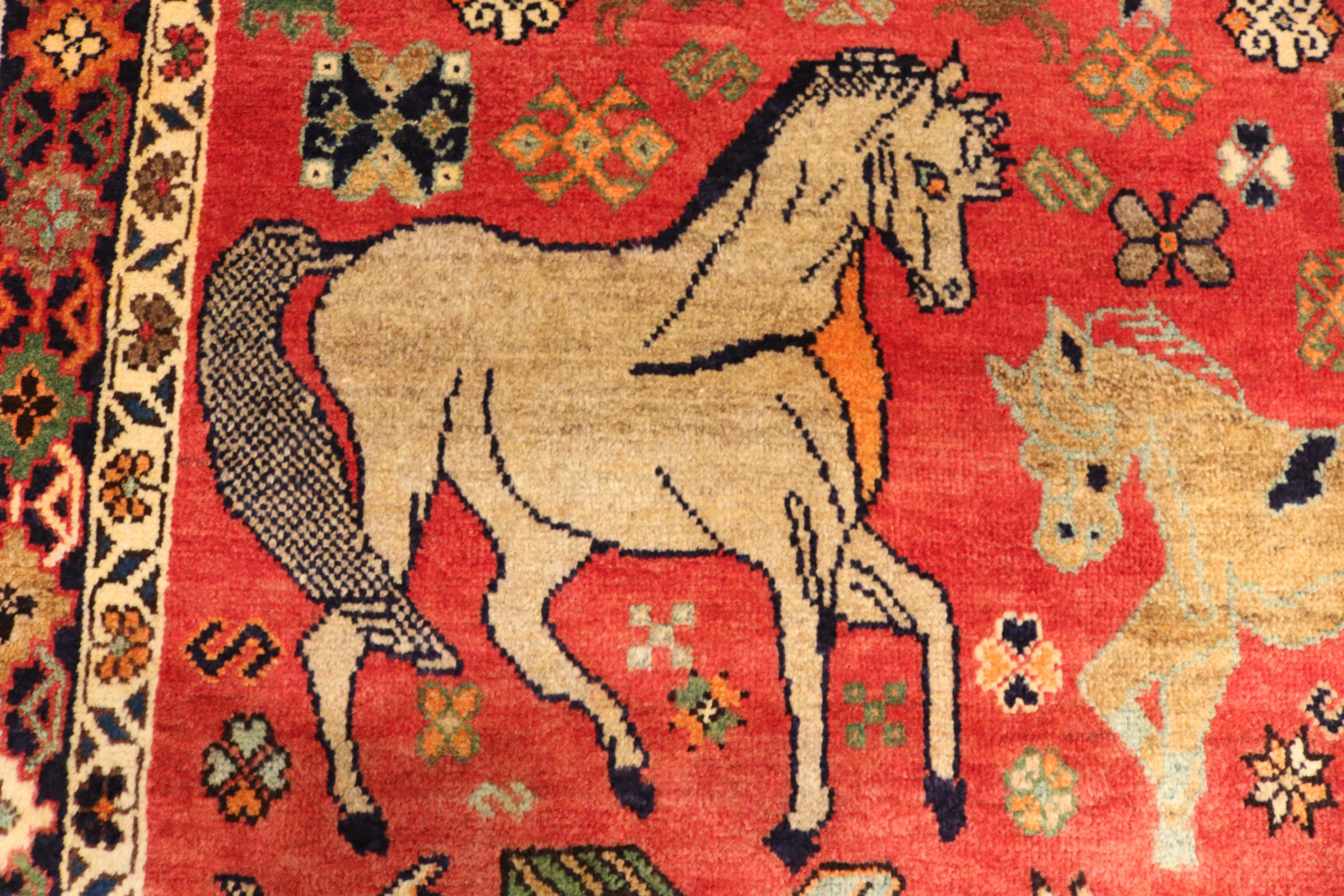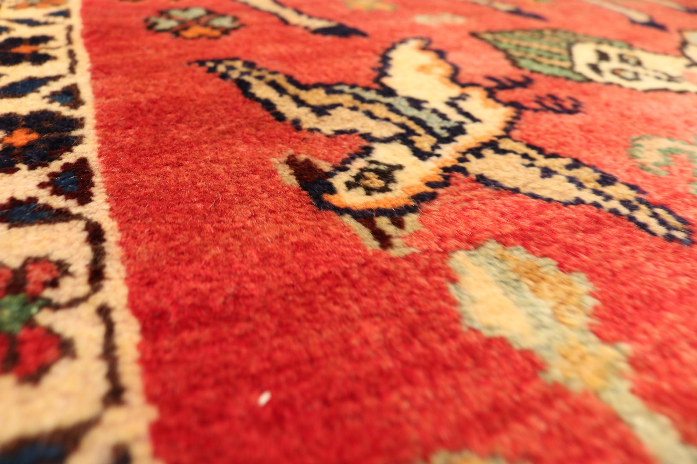 Este ghashghai é um verdadeiro destaque. As suas cores e padrões reflectem a vida dos nómadas ghashghai do Irão. Estas tribos nómadas vivem principalmente nos arredores da cidade de Shiraz. Deixe um pedaço da antiga cultura persa entrar nas suas próprias quatro paredes.