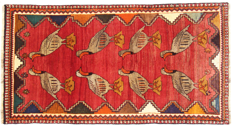 Este tapete pertence a tapetes de aldeia e nómadas do Irão, antiga Pérsia. Este tipo de tapete é atado à mão em cidades mais pequenas e aldeias da velha tradição. Mesmo os nómadas ainda atam tapetes persas ao ar livre. Os tapetes são atados sem padrão e completamente a partir da cabeça. Caracterizam-se por ornamentos clássicos, dispostos em padrões rectos e geométricos. Graças à sua origem cultural-tradicional, estes tapetes têm um carácter único que encarna a antiga Pérsia.