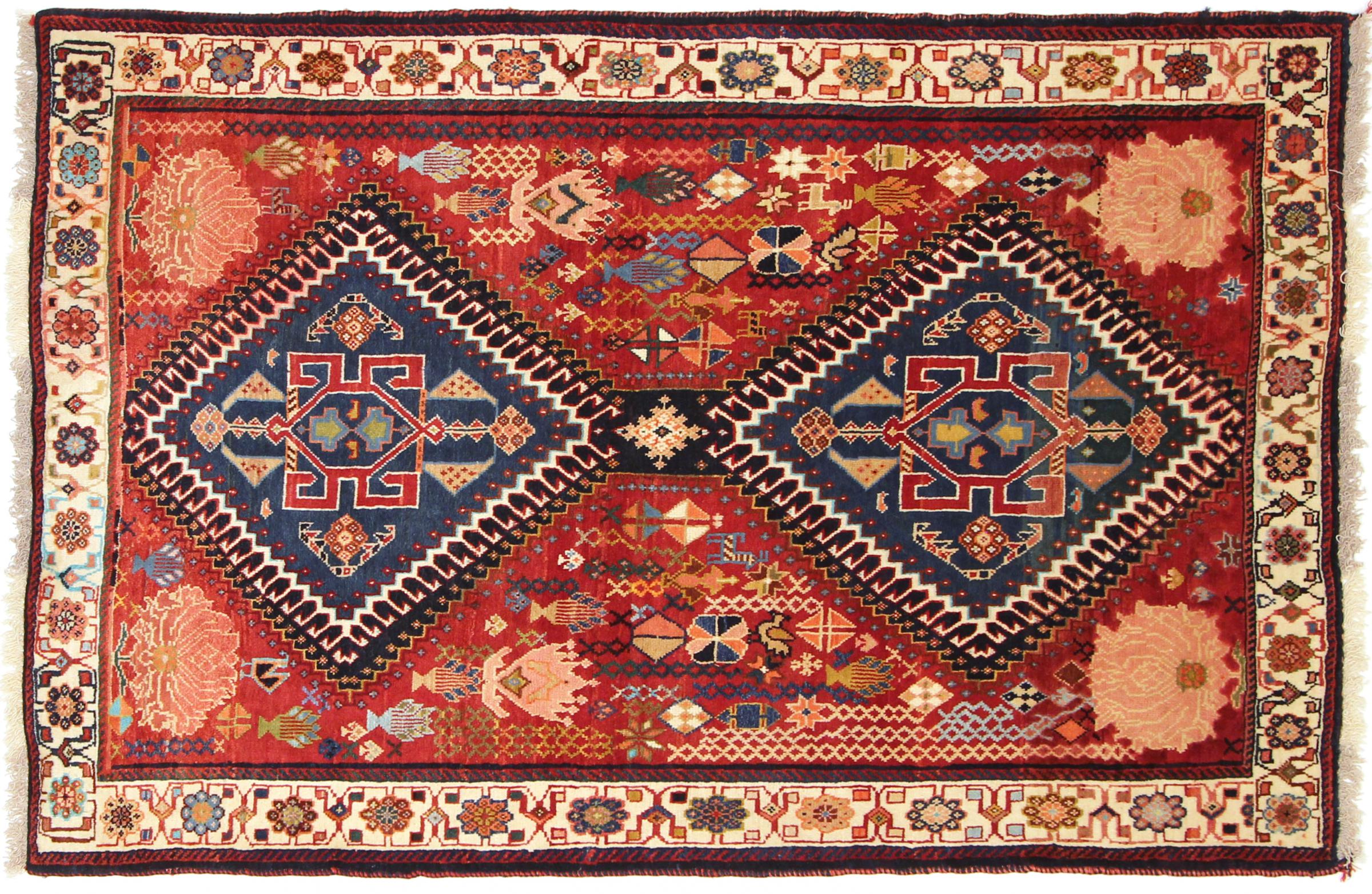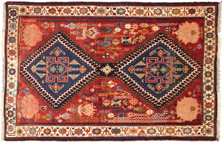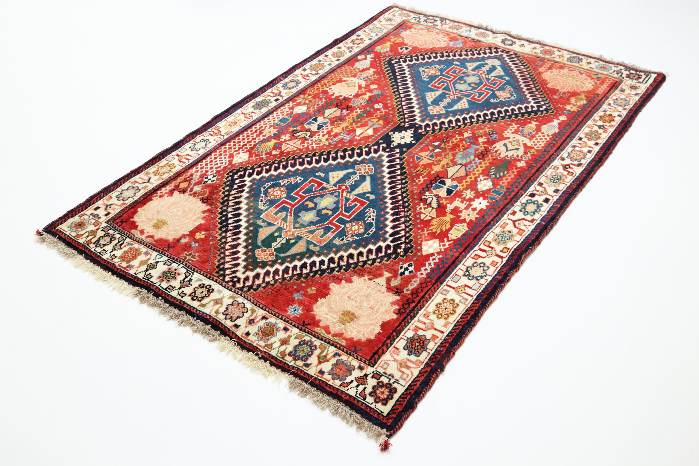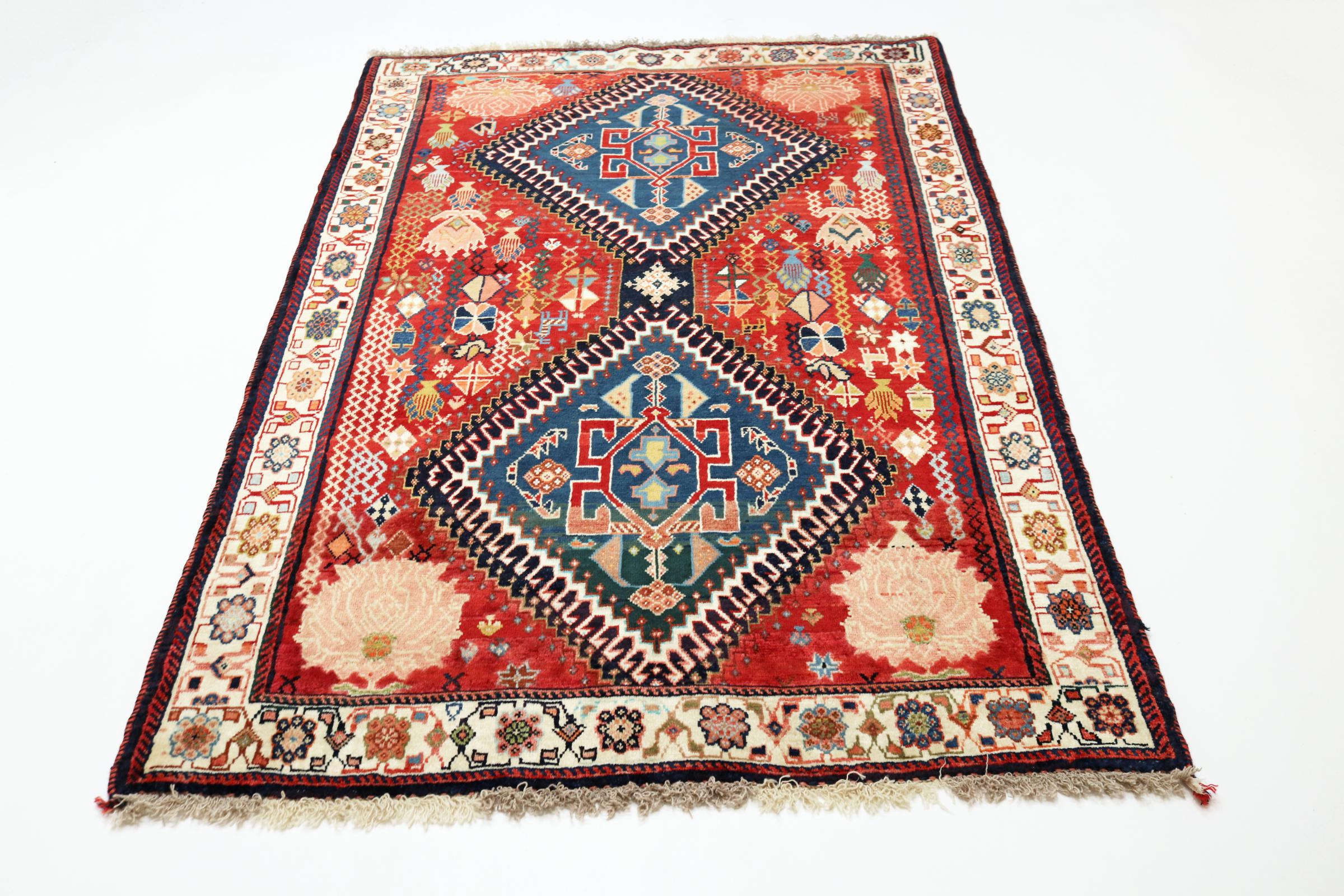 Este tapete pertence a tapetes de aldeia e nómadas do Irão, antiga Pérsia. Este tipo de tapete é atado à mão em cidades mais pequenas e aldeias da velha tradição. Mesmo os nómadas ainda atam tapetes persas ao ar livre. Os tapetes são atados sem padrão e completamente a partir da cabeça. Caracterizam-se por ornamentos clássicos, dispostos em padrões rectos e geométricos. Graças à sua origem cultural-tradicional, estes tapetes têm um carácter único que encarna a antiga Pérsia.