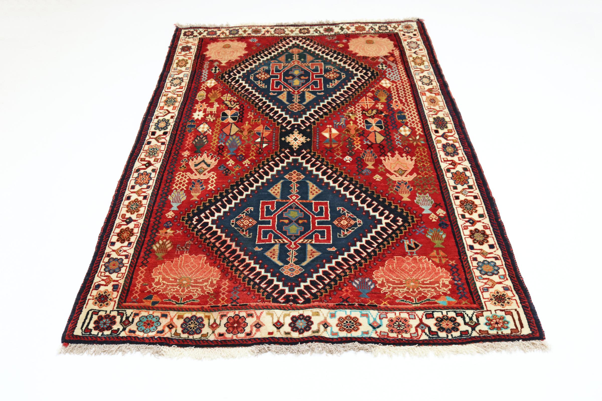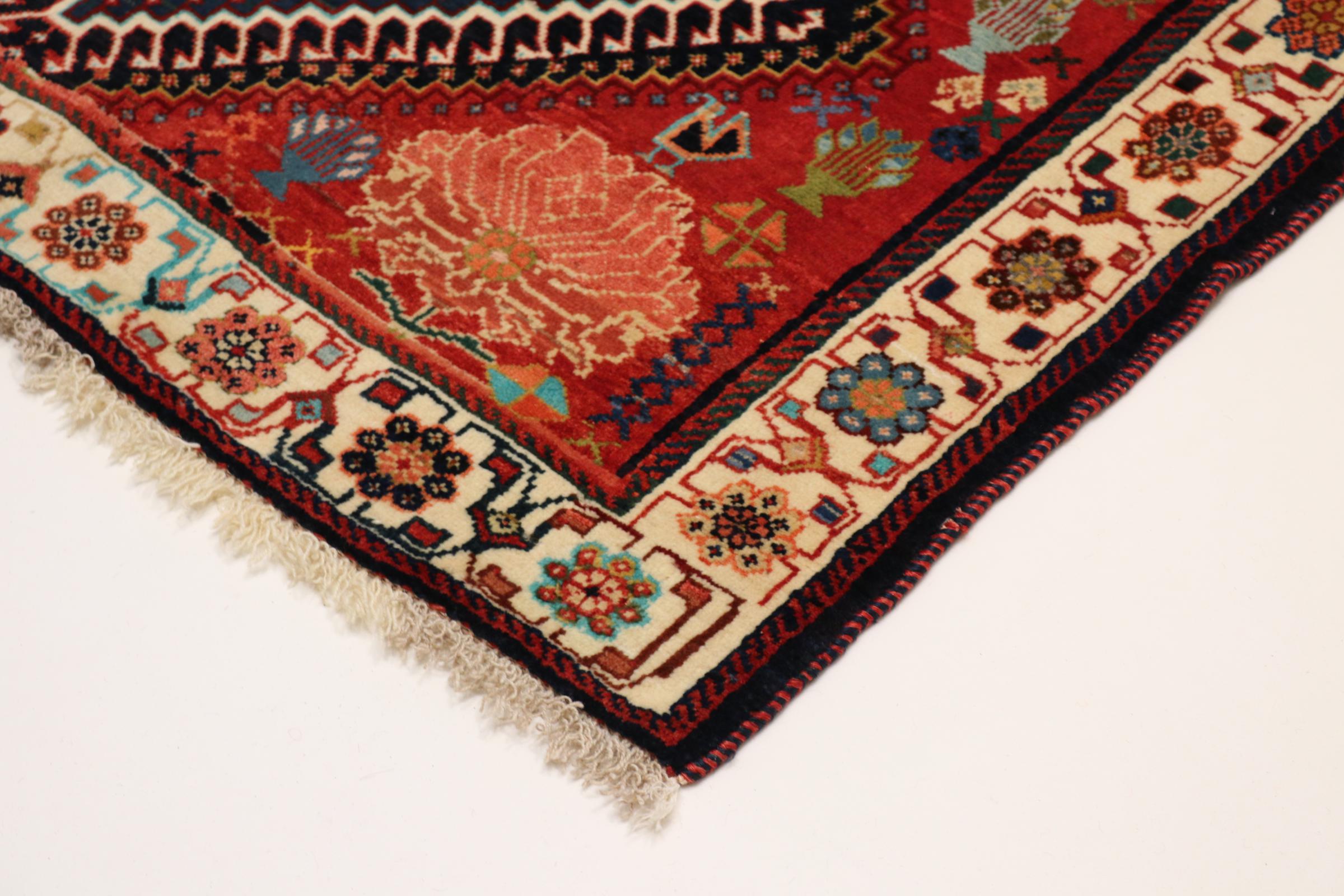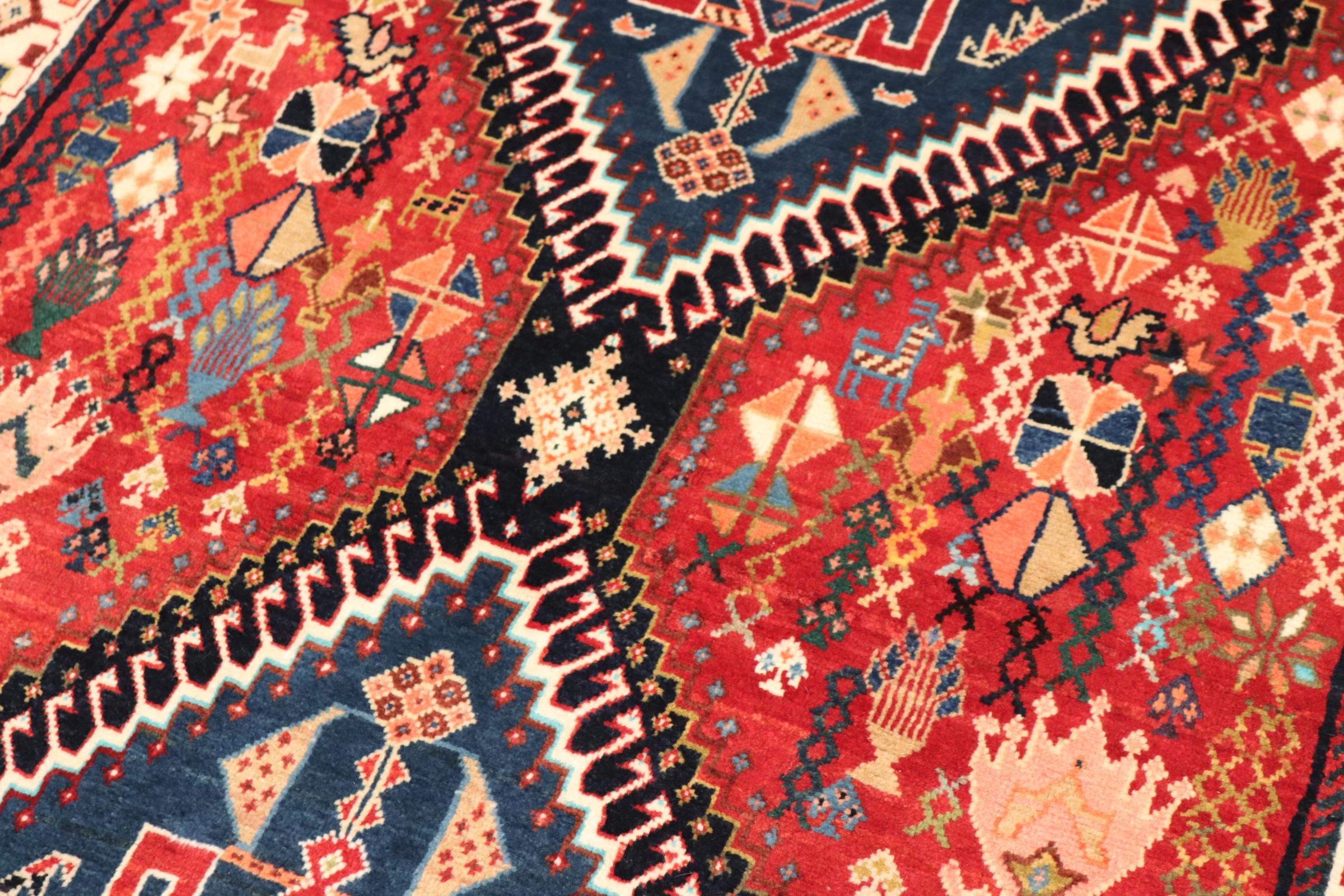 Este tapete pertence a tapetes de aldeia e nómadas do Irão, antiga Pérsia. Este tipo de tapete é atado à mão em cidades mais pequenas e aldeias da velha tradição. Mesmo os nómadas ainda atam tapetes persas ao ar livre. Os tapetes são atados sem padrão e completamente a partir da cabeça. Caracterizam-se por ornamentos clássicos, dispostos em padrões rectos e geométricos. Graças à sua origem cultural-tradicional, estes tapetes têm um carácter único que encarna a antiga Pérsia.