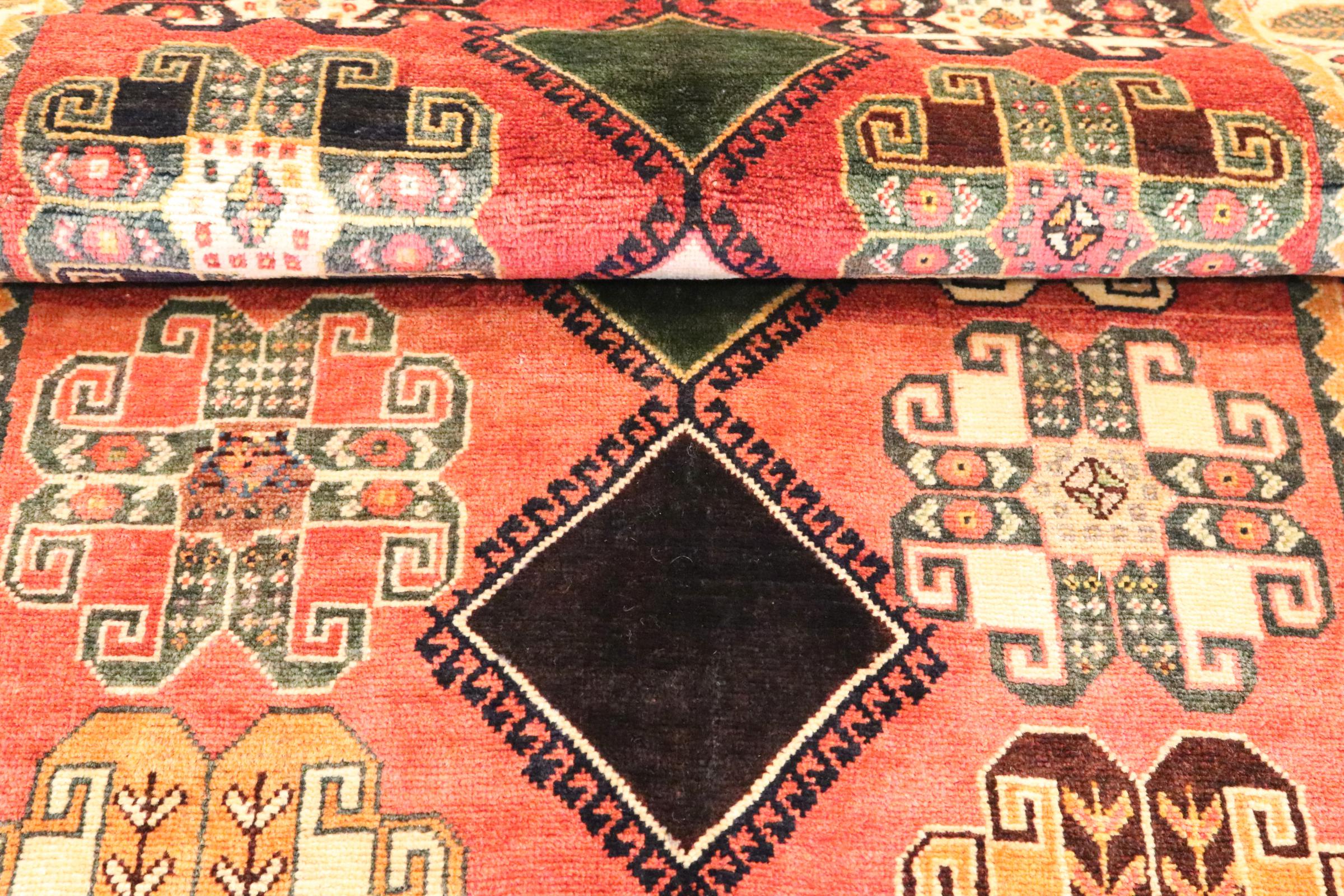 Este ghashghai é um verdadeiro destaque. As suas cores e padrões reflectem a vida dos nómadas ghashghai do Irão. Estas tribos nómadas vivem principalmente nos arredores da cidade de Shiraz. Deixe um pedaço da antiga cultura persa entrar nas suas próprias quatro paredes.