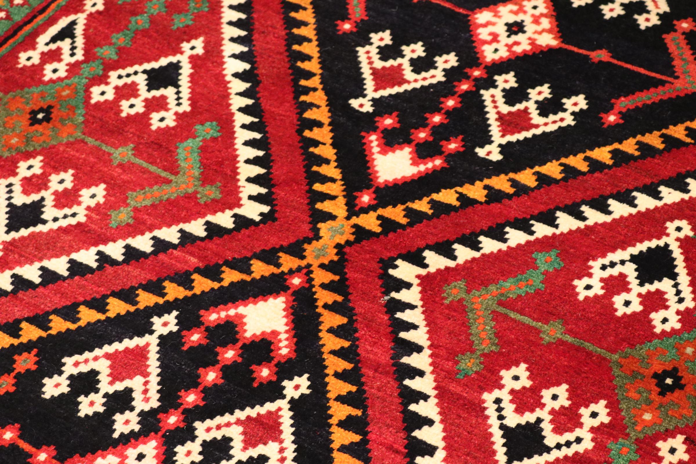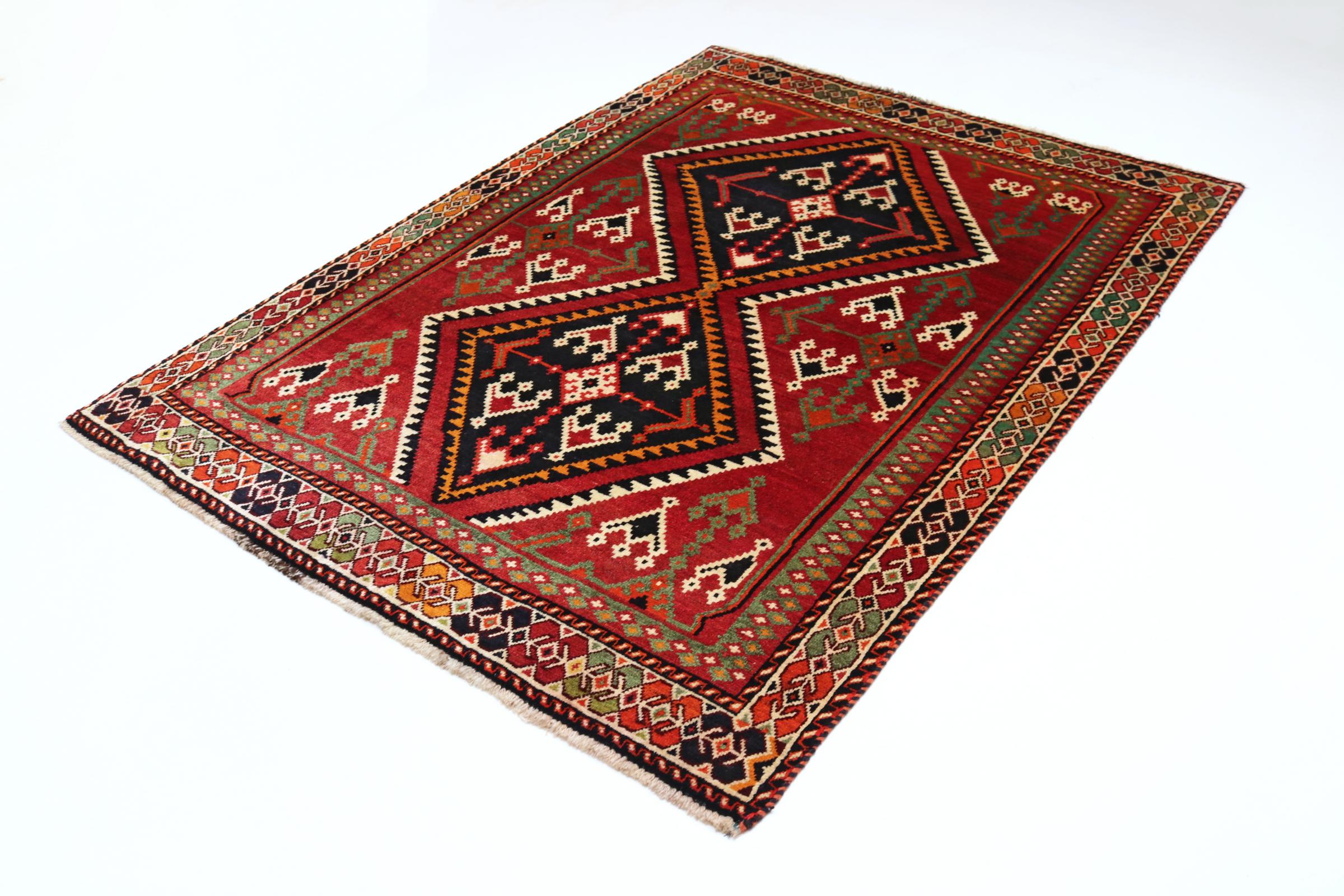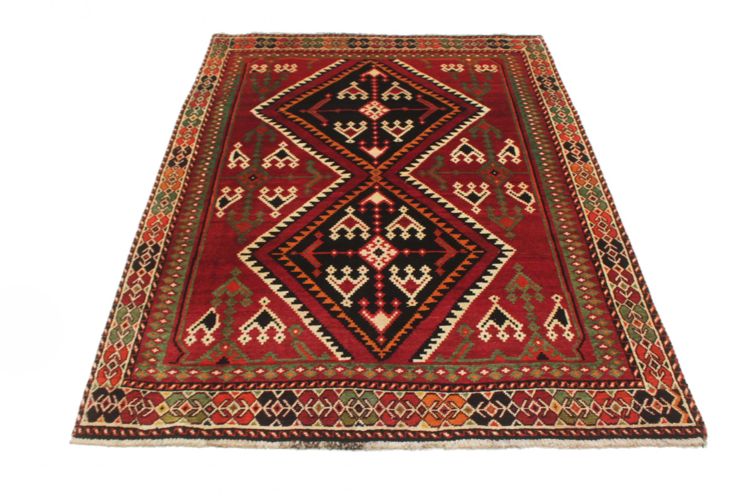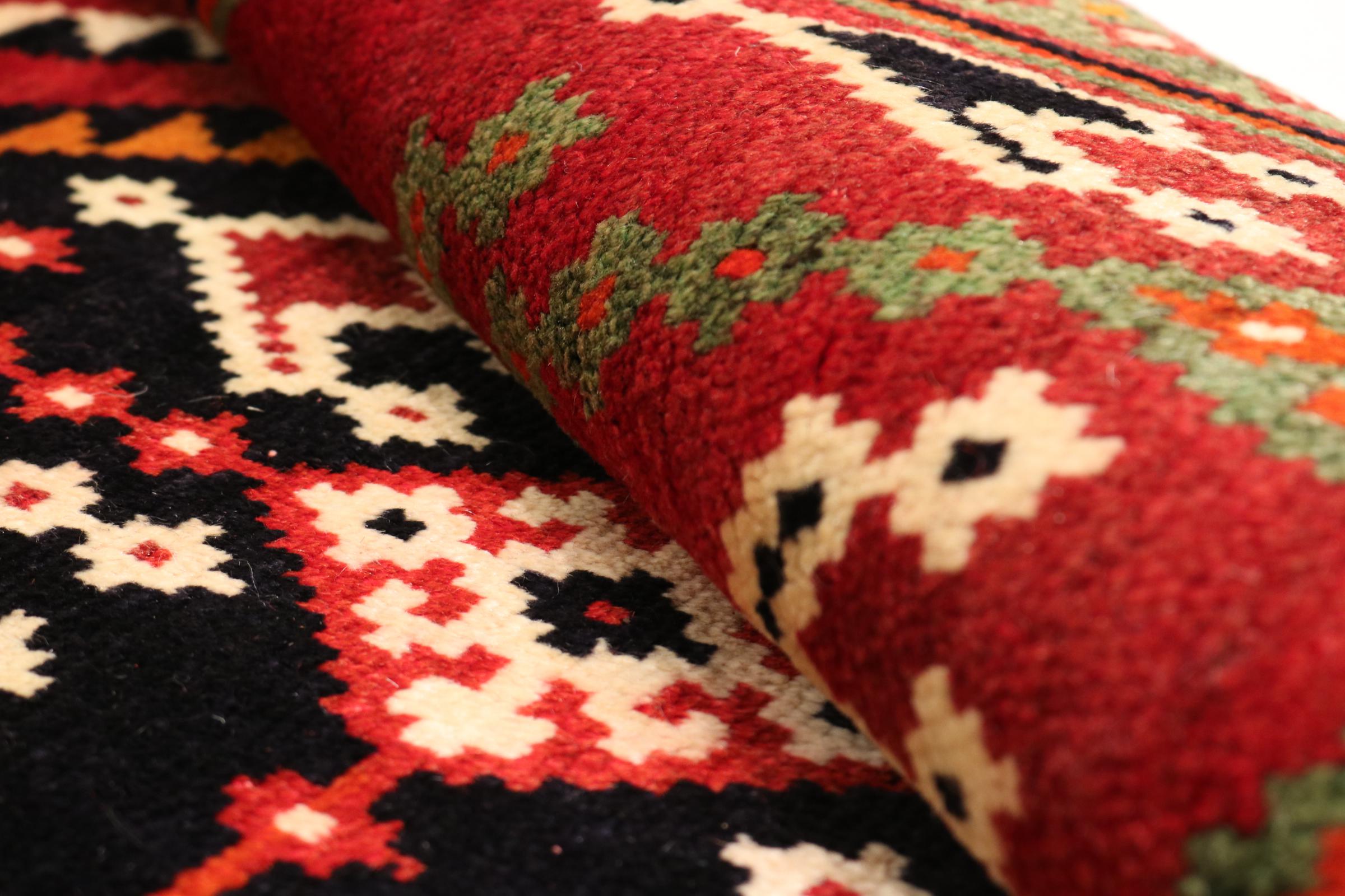 Este ghashghai é um verdadeiro destaque. As suas cores e padrões reflectem a vida dos nómadas ghashghai do Irão. Estas tribos nómadas vivem principalmente nos arredores da cidade de Shiraz. Deixe um pedaço da antiga cultura persa entrar nas suas próprias quatro paredes.