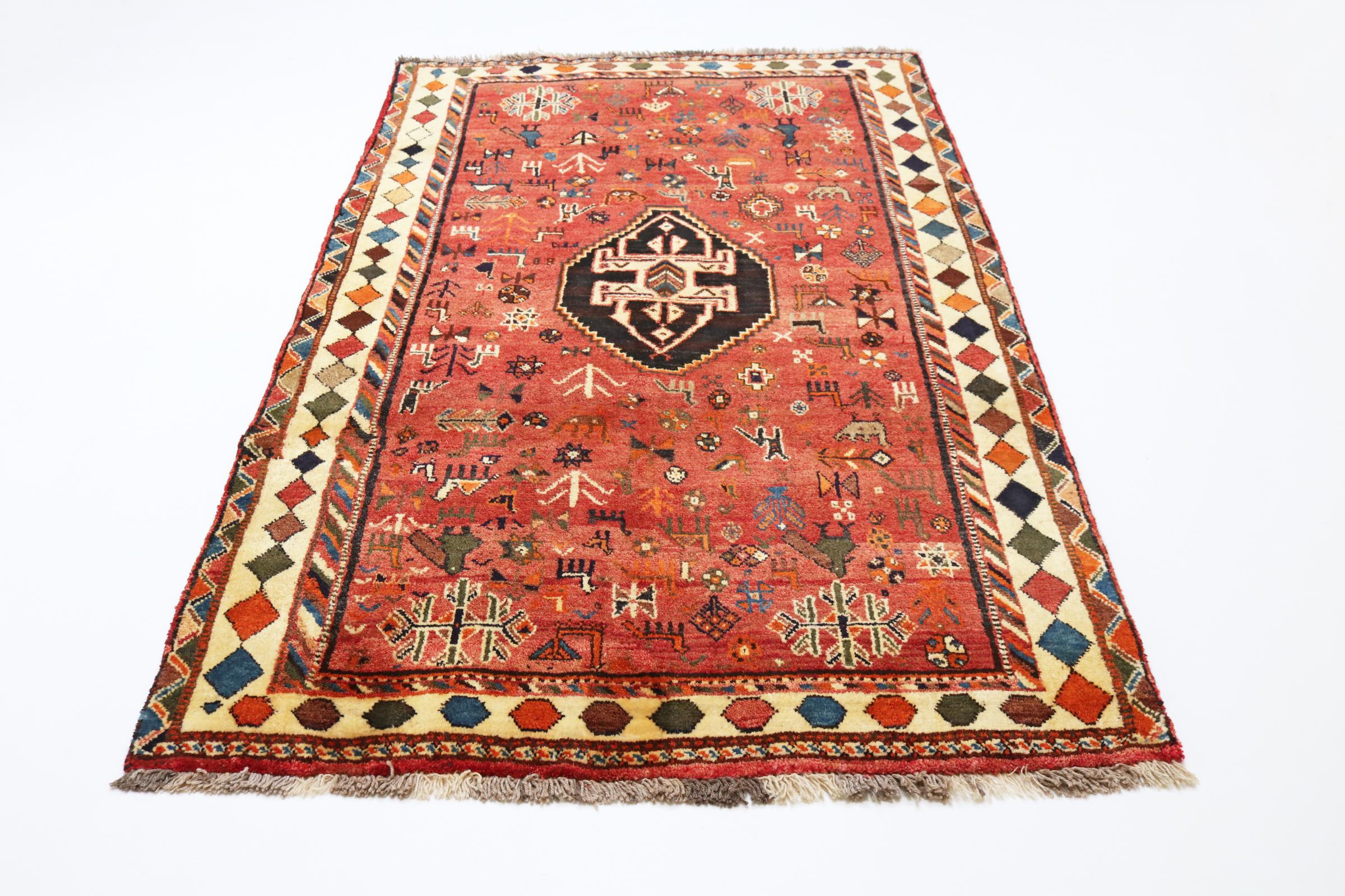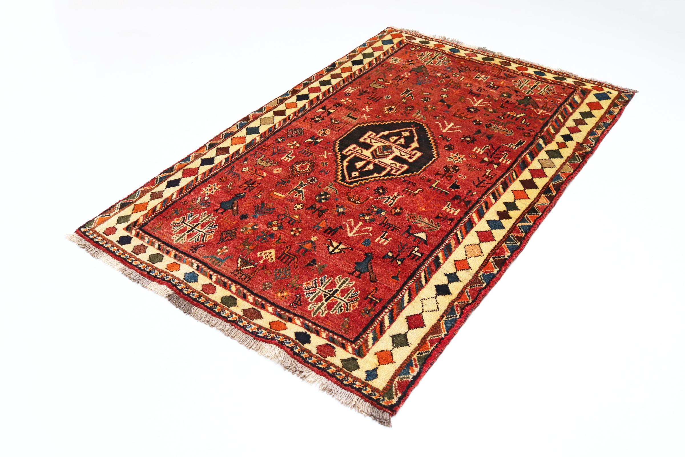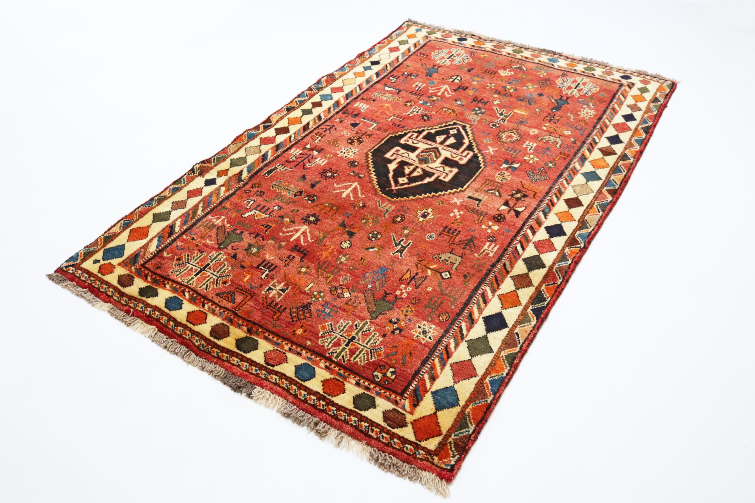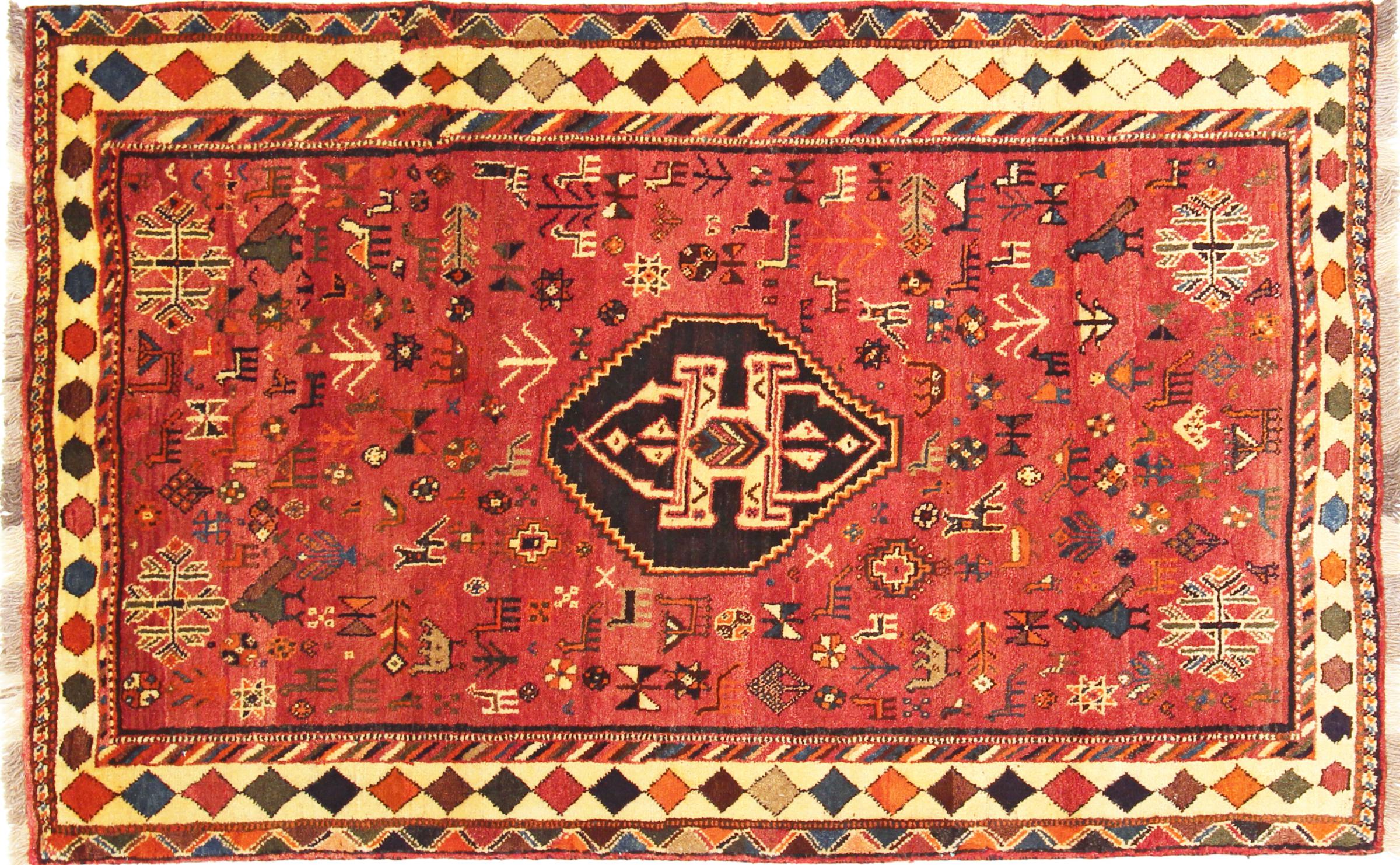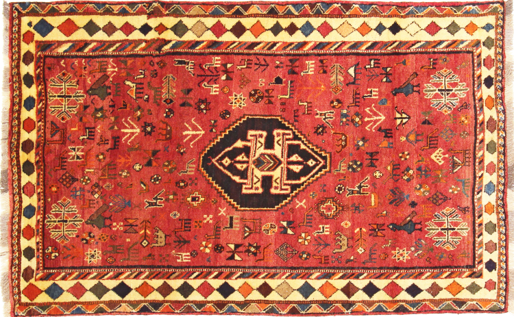 Este tapete pertence a tapetes de aldeia e nómadas do Irão, antiga Pérsia. Este tipo de tapete é atado à mão em cidades mais pequenas e aldeias da velha tradição. Mesmo os nómadas ainda atam tapetes persas ao ar livre. Os tapetes são atados sem padrão e completamente a partir da cabeça. Caracterizam-se por ornamentos clássicos, dispostos em padrões rectos e geométricos. Graças à sua origem cultural-tradicional, estes tapetes têm um carácter único que encarna a antiga Pérsia.
