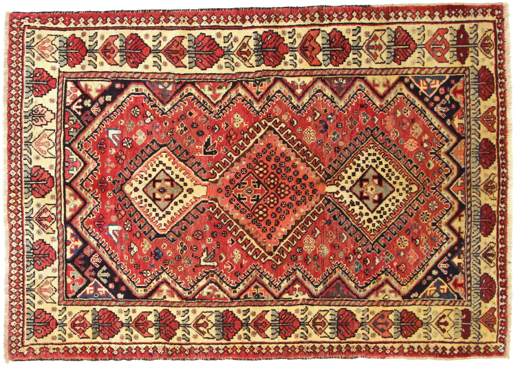 Este tapete pertence a tapetes de aldeia e nómadas do Irão, antiga Pérsia. Este tipo de tapete é atado à mão em cidades mais pequenas e aldeias da velha tradição. Mesmo os nómadas ainda atam tapetes persas ao ar livre. Os tapetes são atados sem padrão e completamente a partir da cabeça. Caracterizam-se por ornamentos clássicos, dispostos em padrões rectos e geométricos. Graças à sua origem cultural-tradicional, estes tapetes têm um carácter único que encarna a antiga Pérsia.