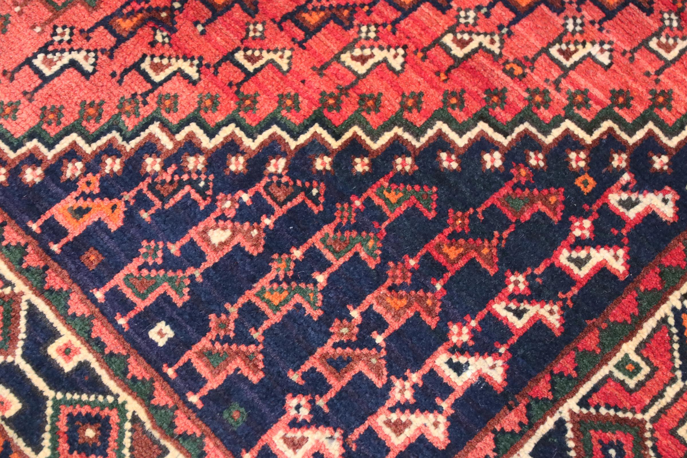 Este ghashghai é um verdadeiro destaque. As suas cores e padrões reflectem a vida dos nómadas ghashghai do Irão. Estas tribos nómadas vivem principalmente nos arredores da cidade de Shiraz. Deixe um pedaço da antiga cultura persa entrar nas suas próprias quatro paredes.